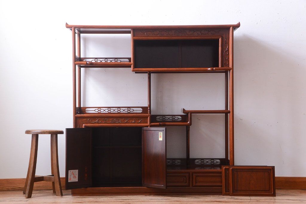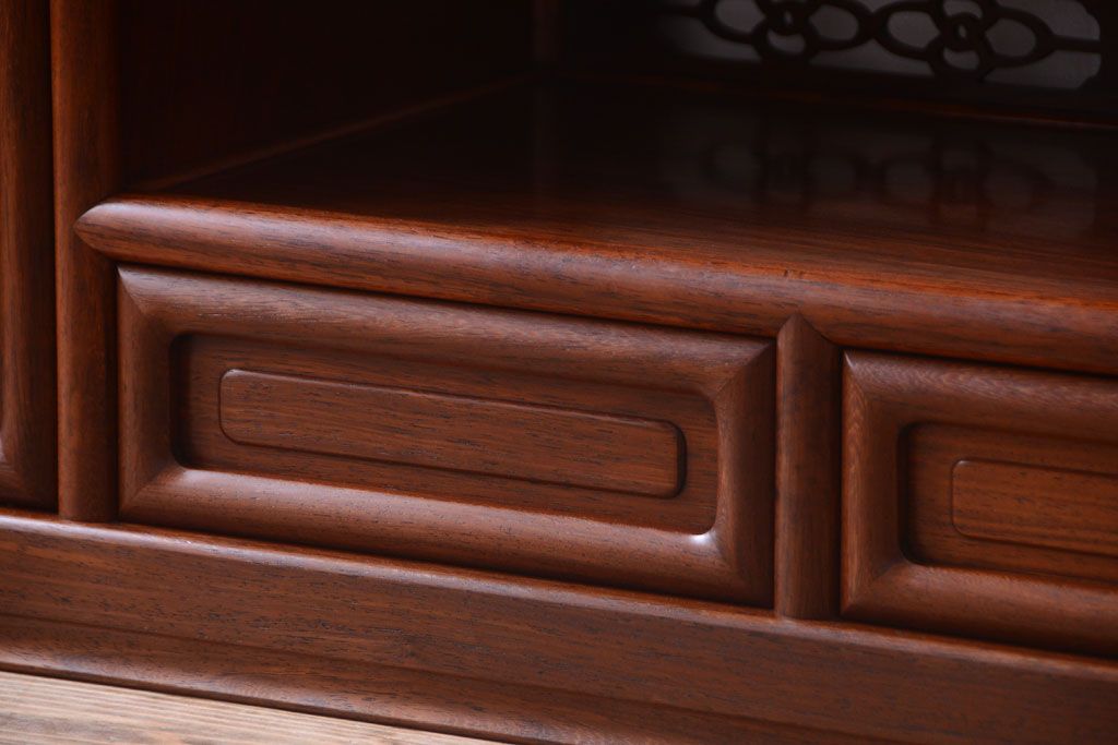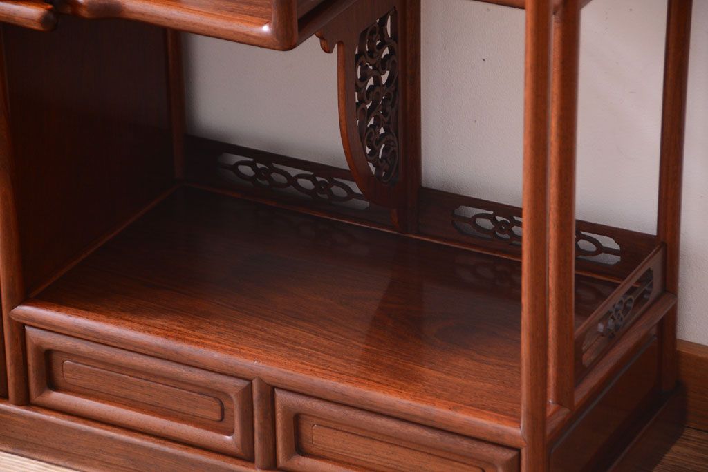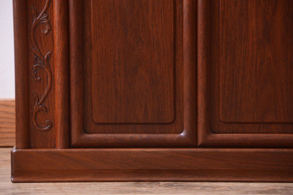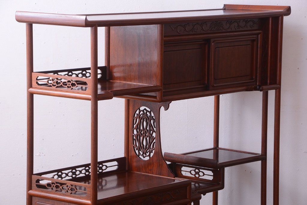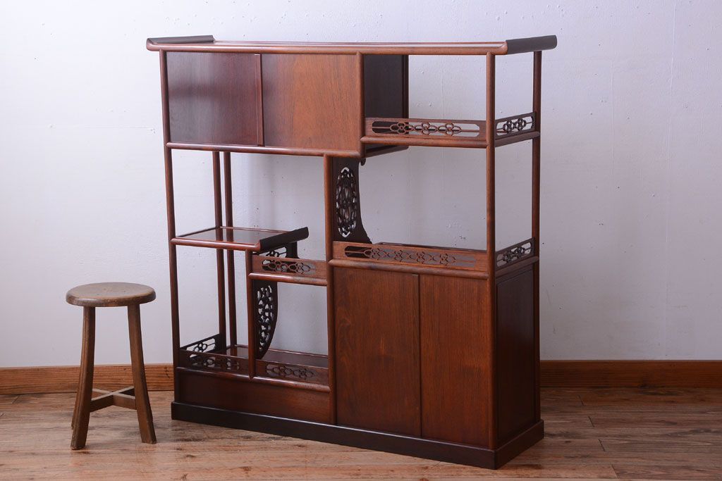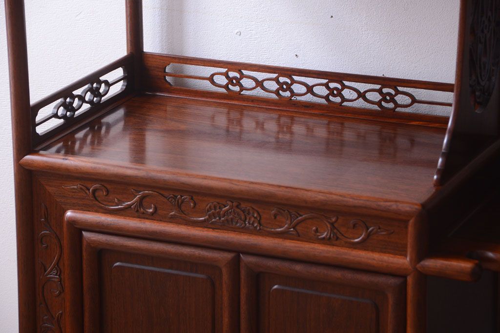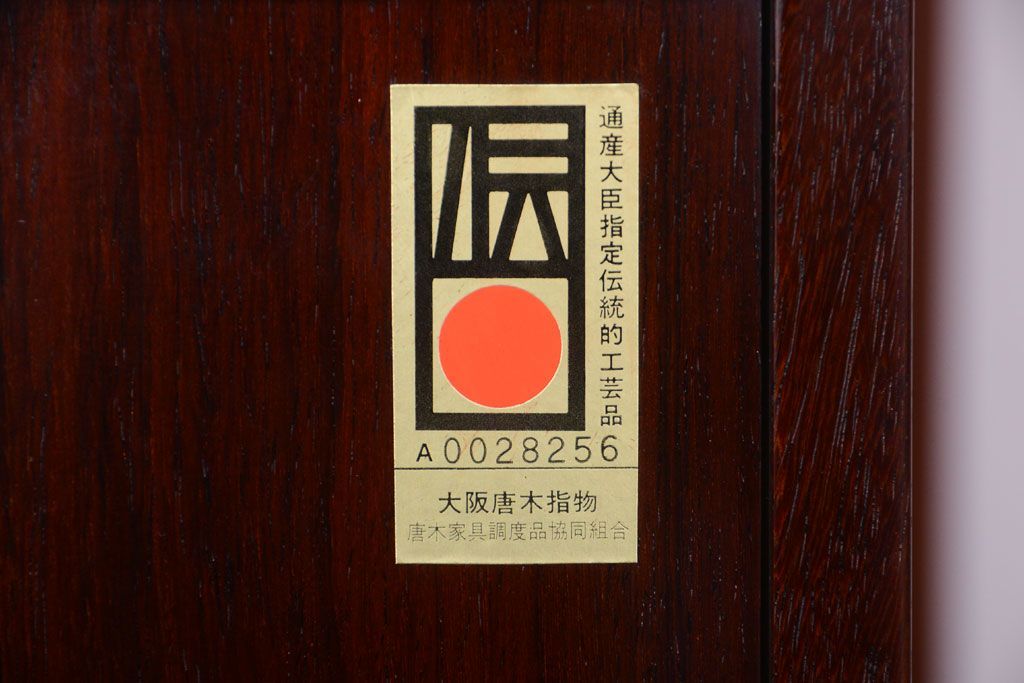 ラフジュ工房> キャビネット・戸棚> 食器棚・カップボード > アンティーク家具 在銘 通産大臣指定伝統的工芸品 大阪唐木指物 山下雄伴作 茶棚