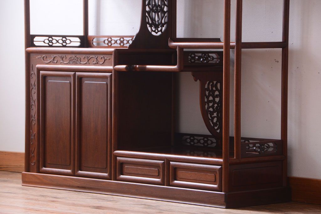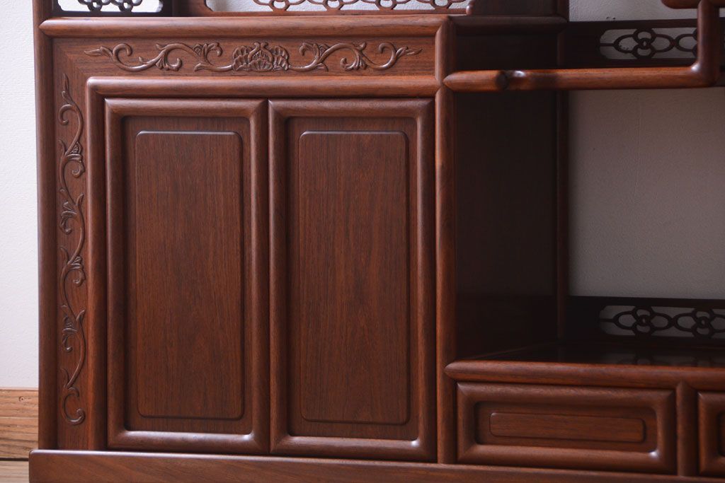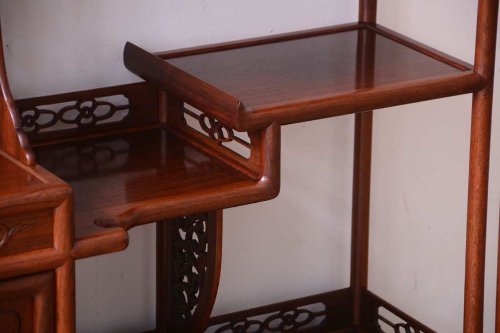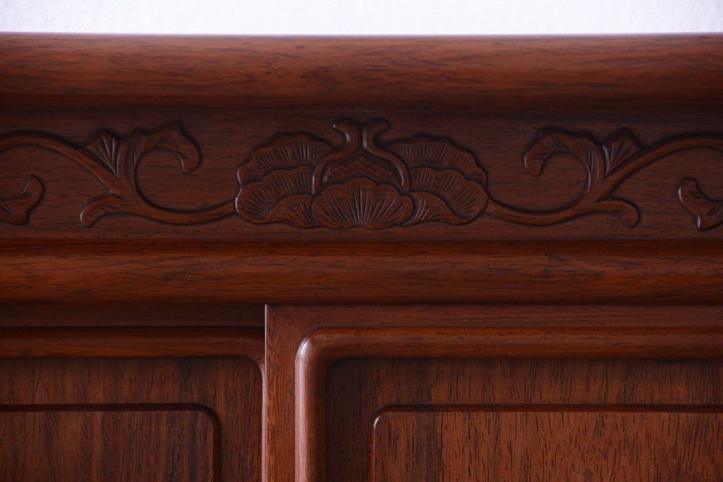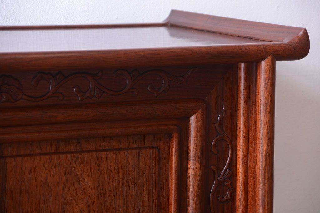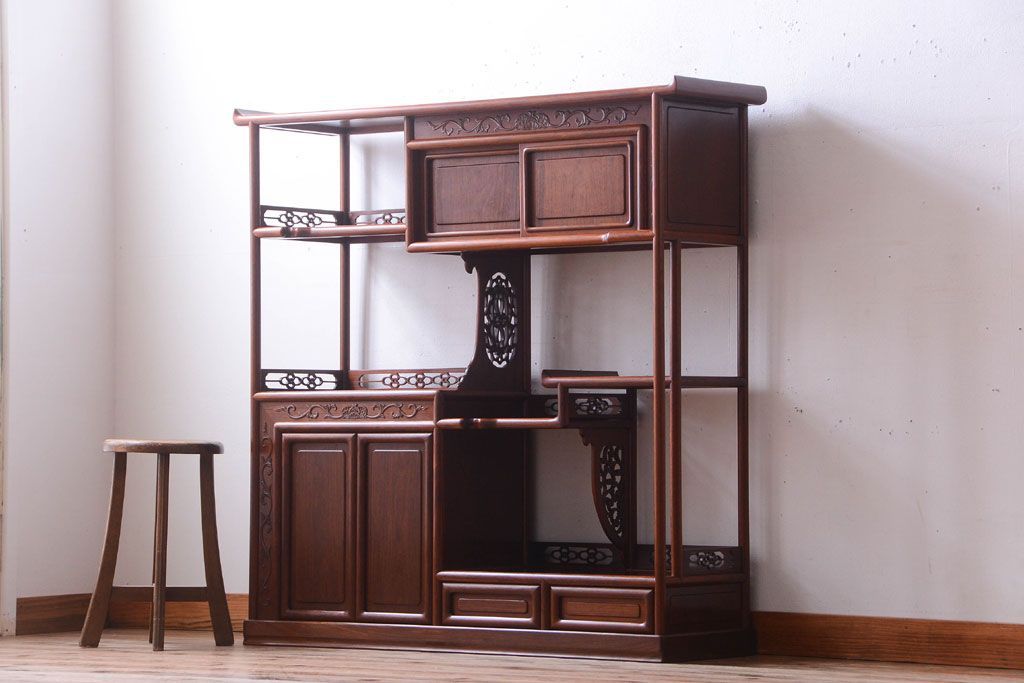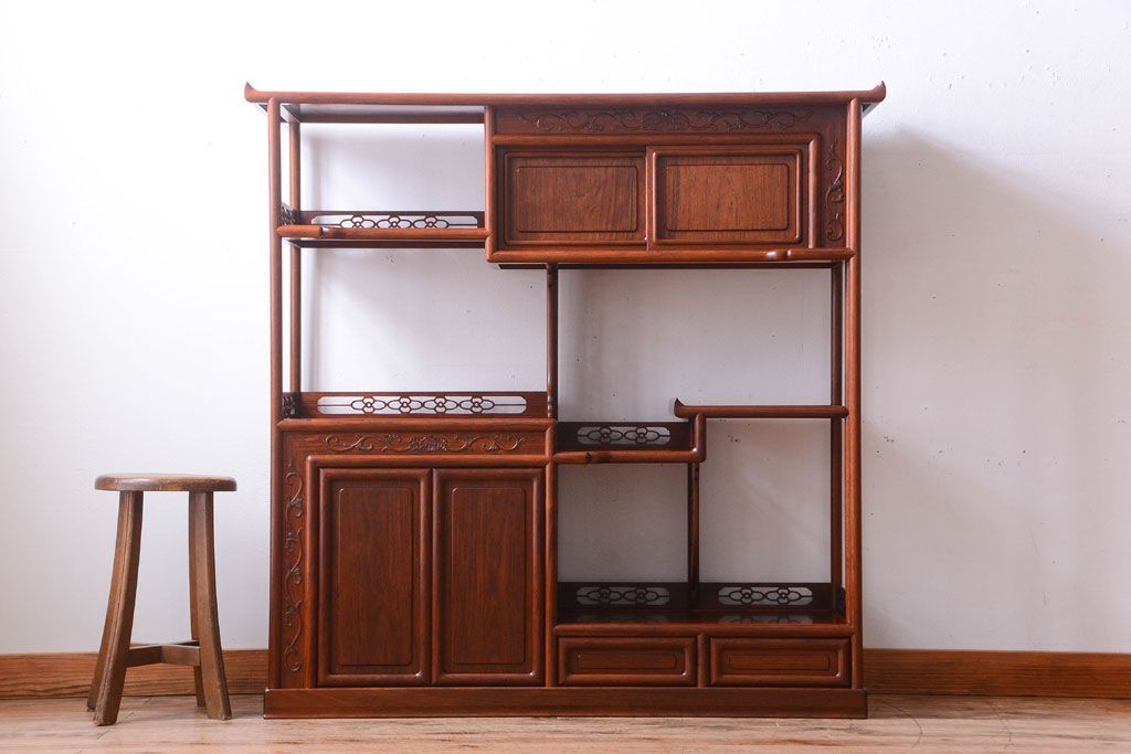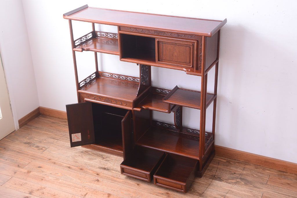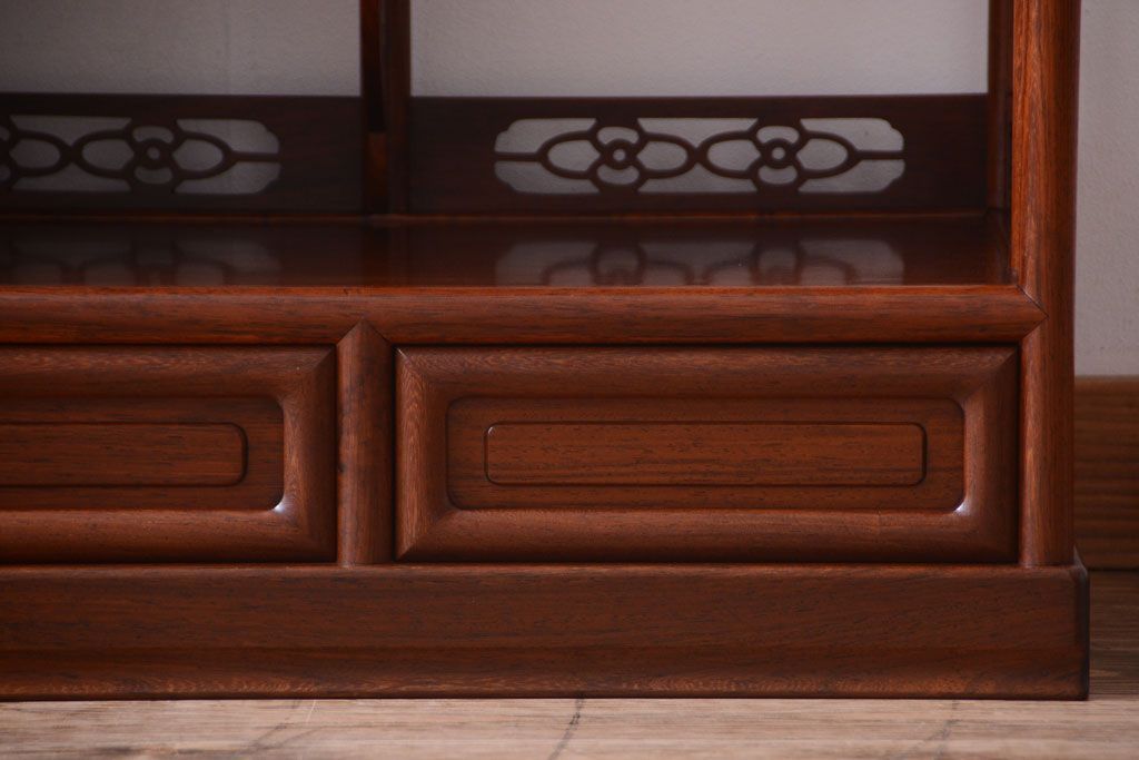 ラフジュ工房> キャビネット・戸棚> 食器棚・カップボード > アンティーク家具 在銘 通産大臣指定伝統的工芸品 大阪唐木指物 山下雄伴作 茶棚