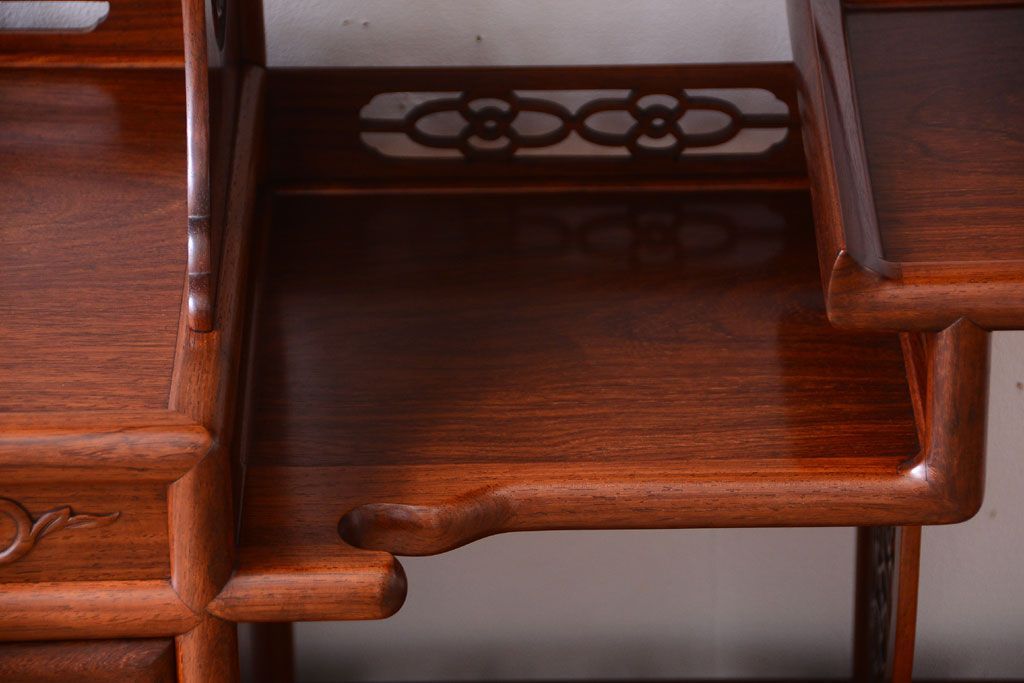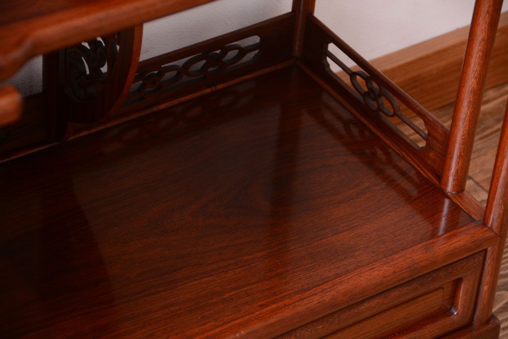 ラフジュ工房> 和箪笥> 茶箪笥・茶棚 > アンティーク家具 在銘 通産大臣指定伝統的工芸品 大阪唐木指物 山下雄伴作 茶棚