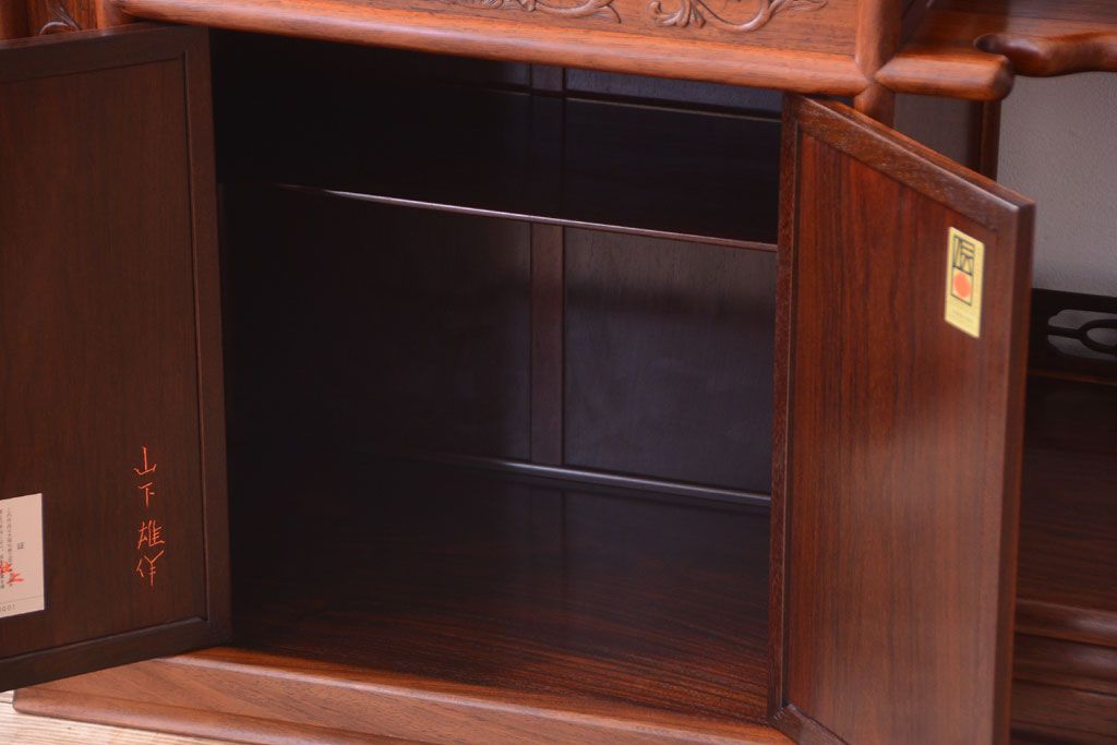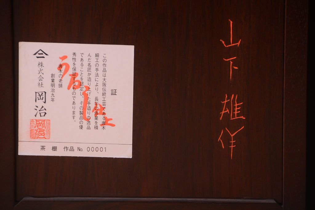 アンティーク家具 在銘 通産大臣指定伝統的工芸品 大阪唐木指物 山下雄伴作 茶棚