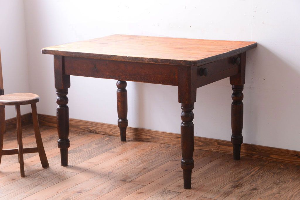 テーブル > アンティーク家具 イギリスアンティーク 引き出し付き!味わい深い古いダイニングテーブル