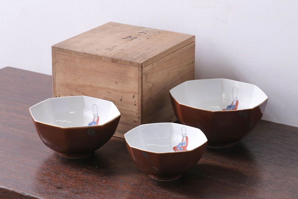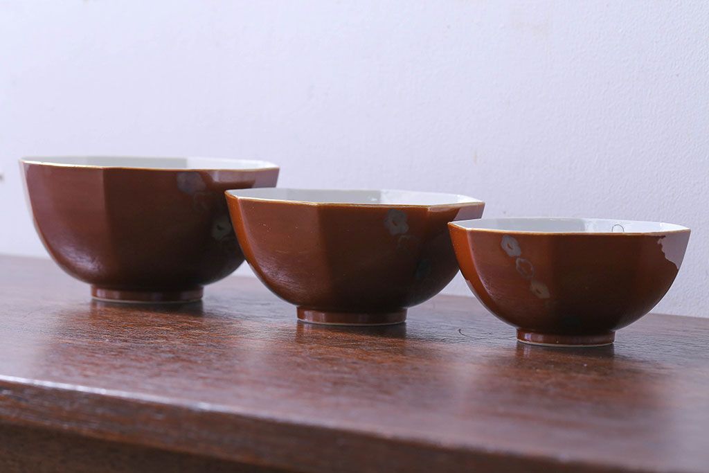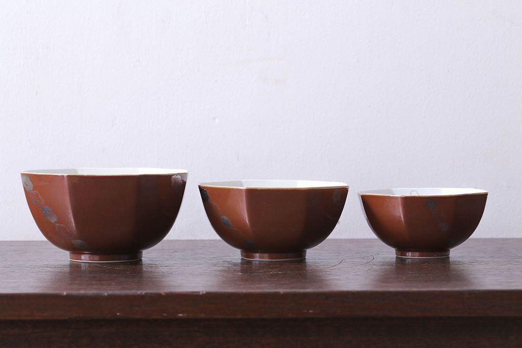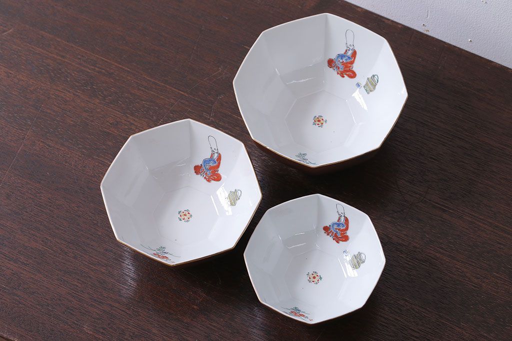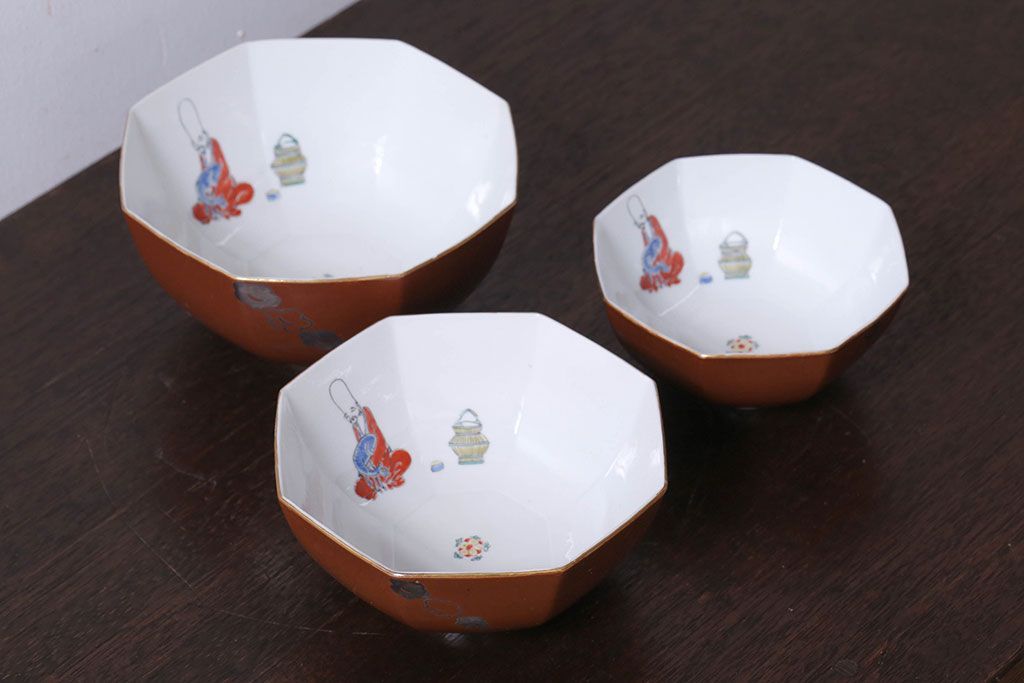 和製アンティーク 九谷焼 色絵三ツ鉢(柿右衛門?)
