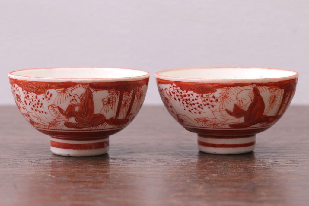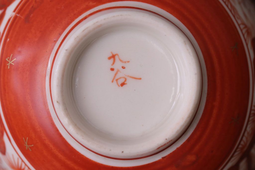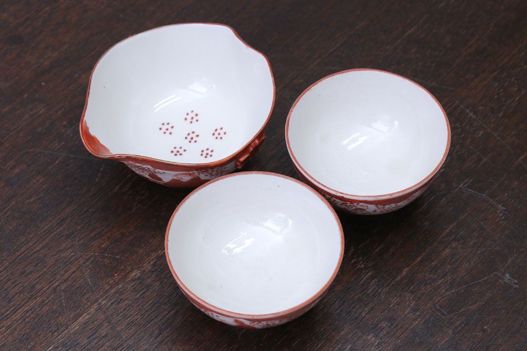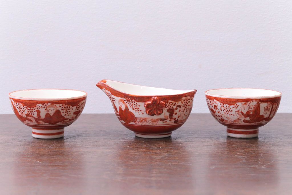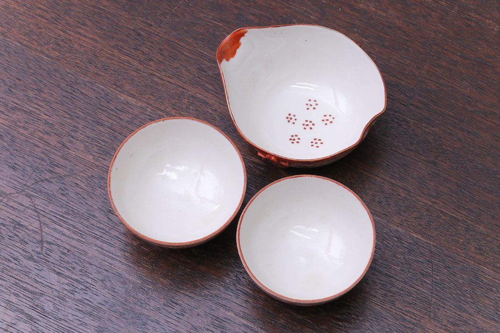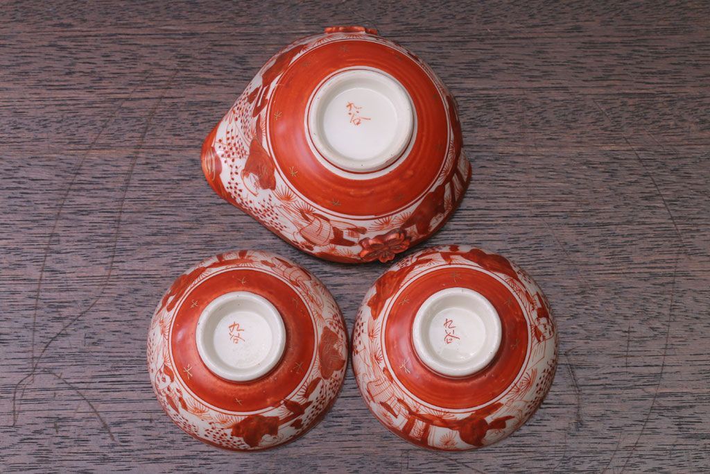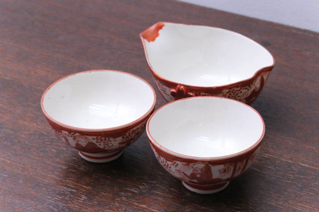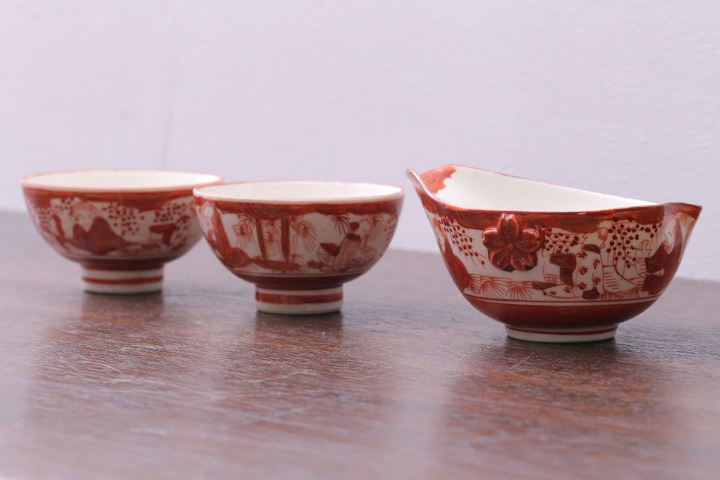 アンティーク雑貨 古民具・骨董 明治〜大正 九谷赤絵茶碗など3点セット