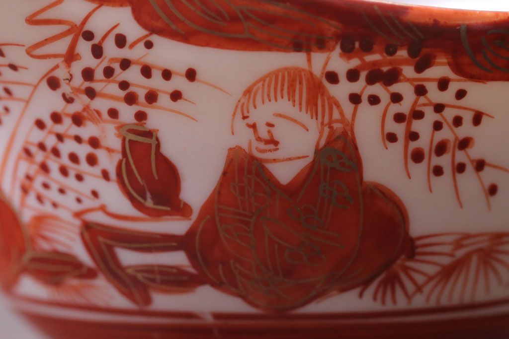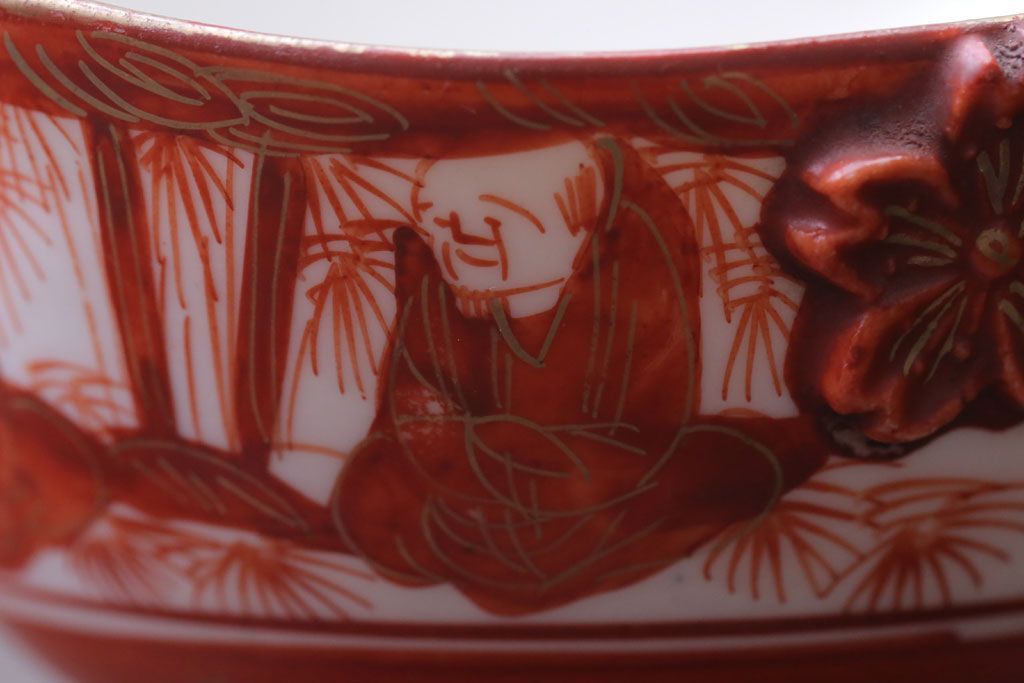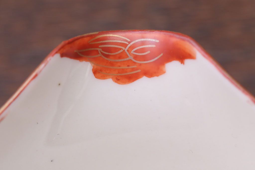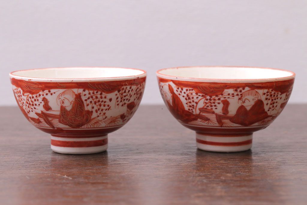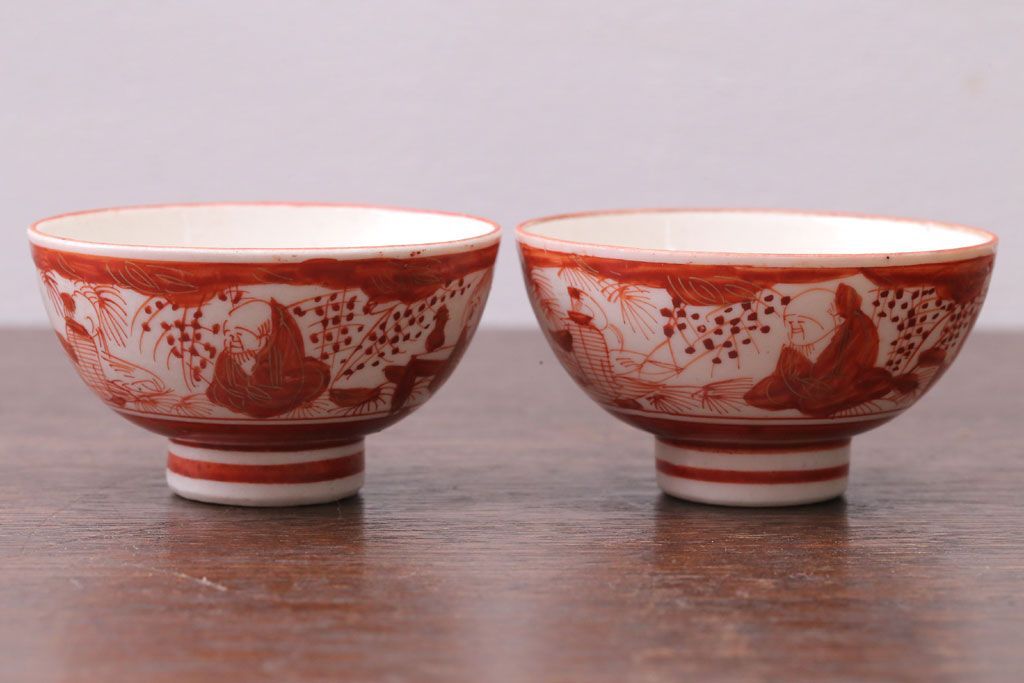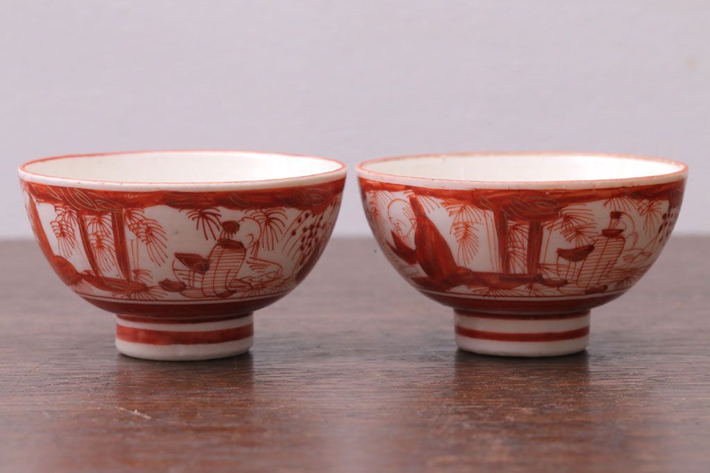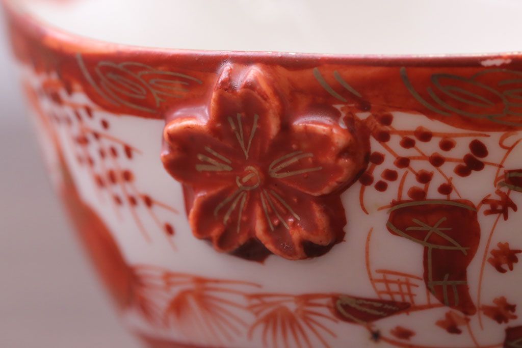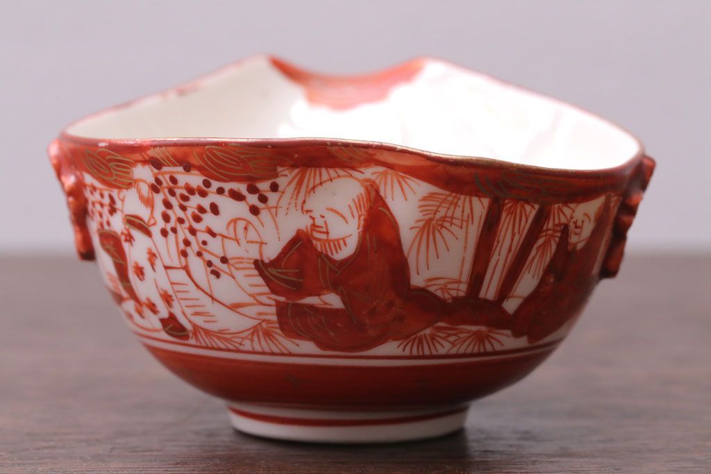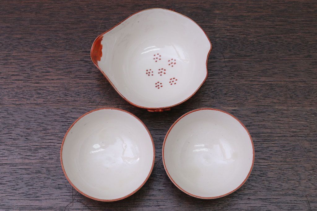 アンティーク雑貨 古民具・骨董 明治〜大正 九谷赤絵茶碗など3点セット