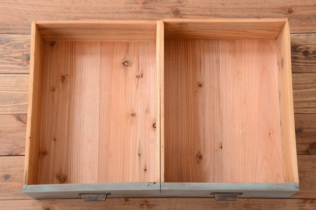 ラフジュ工房> 店舗什器 > アンティーク家具 アンティークペイント モールガラス入り!天板オーク材の収納棚(カウンターテーブル)