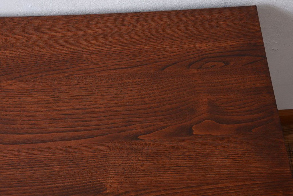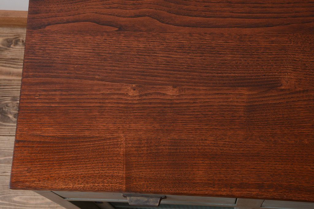 アンティーク家具 アンティークペイント モールガラス入り!天板オーク材の収納棚(カウンターテーブル)