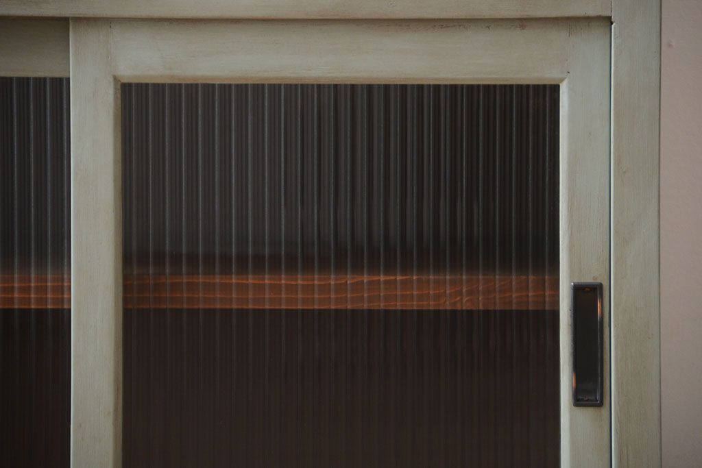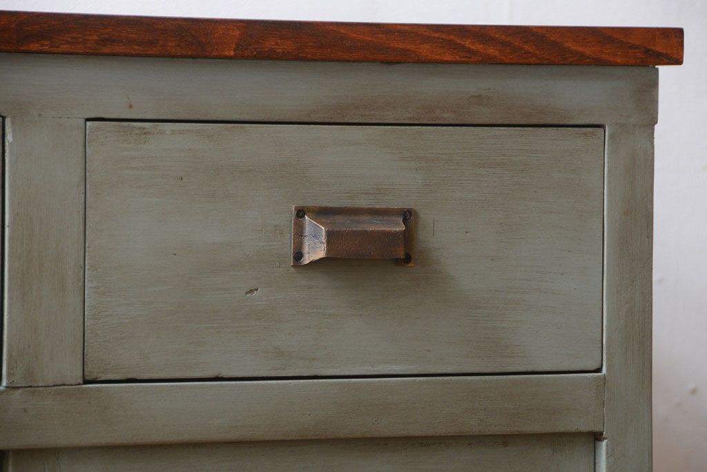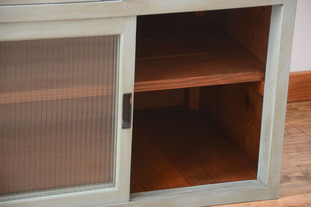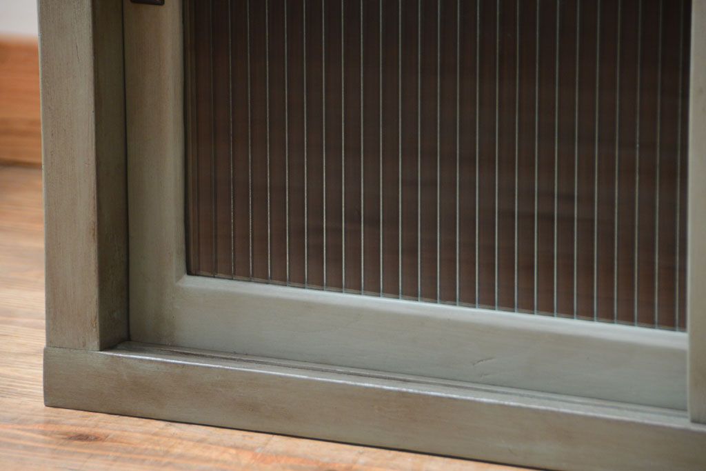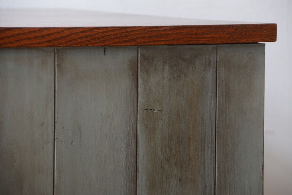 ラフジュ工房> キャビネット・戸棚> サイドボード > アンティーク家具 アンティークペイント モールガラス入り!天板オーク材の収納棚(カウンターテーブル)