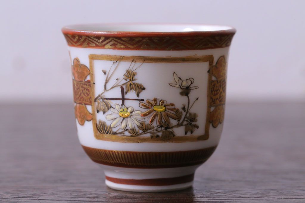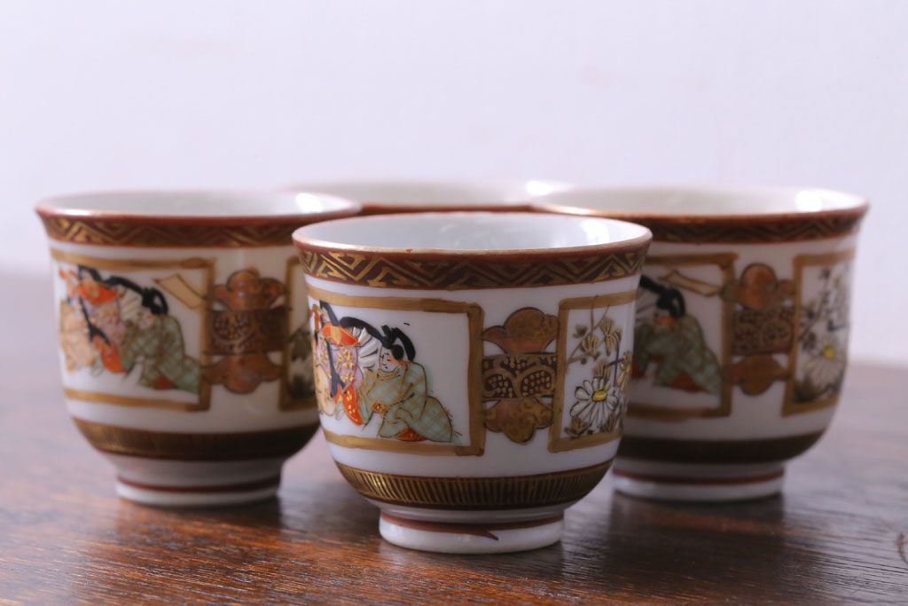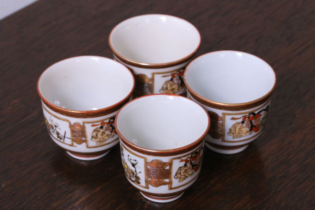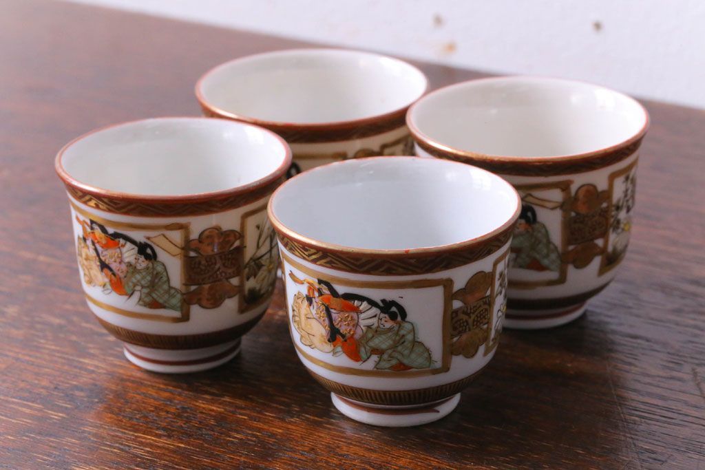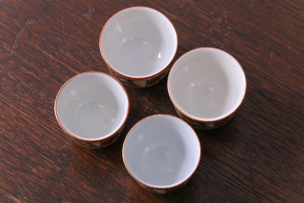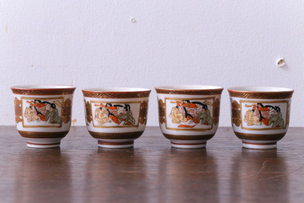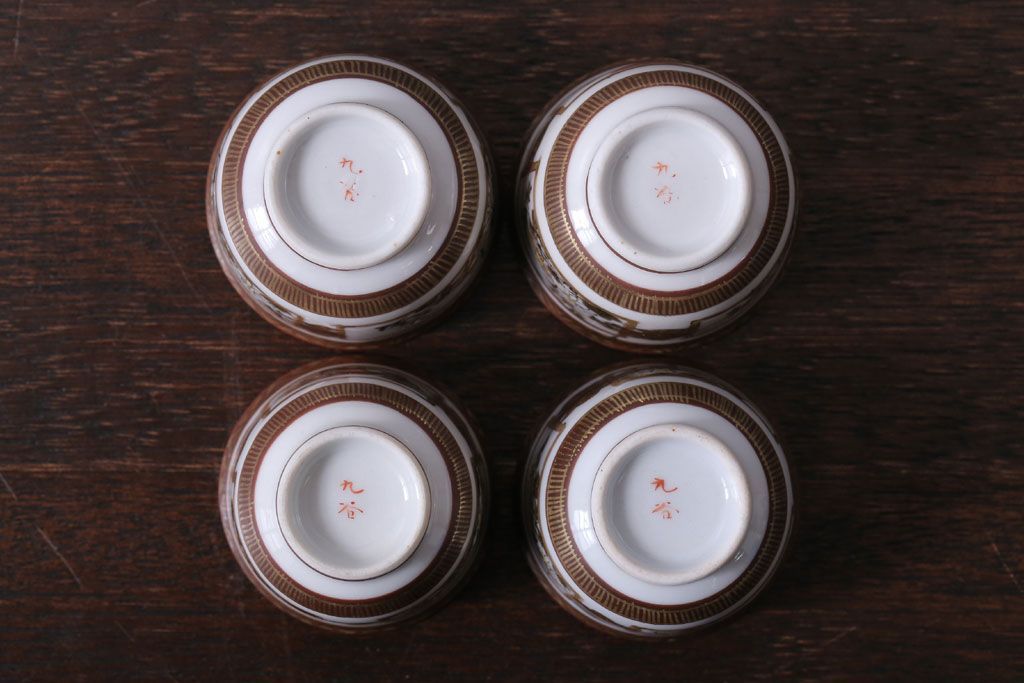 ラフジュ工房> 和食器・茶道具 > 古民具・骨董 明治〜大正 九谷 上品な猪口(酒器)4客セット(1)