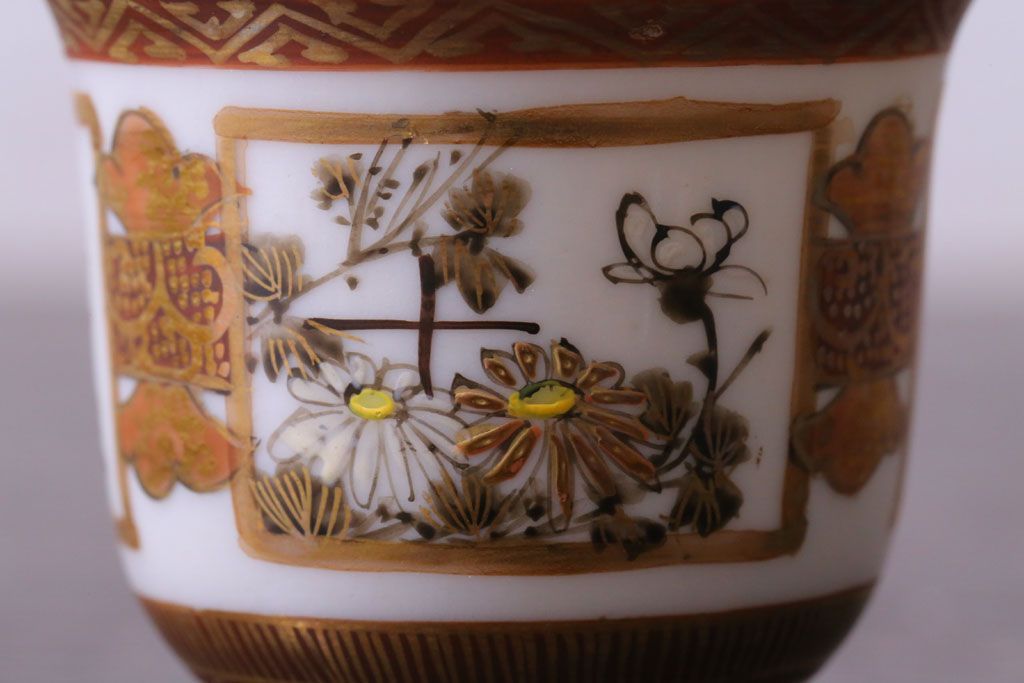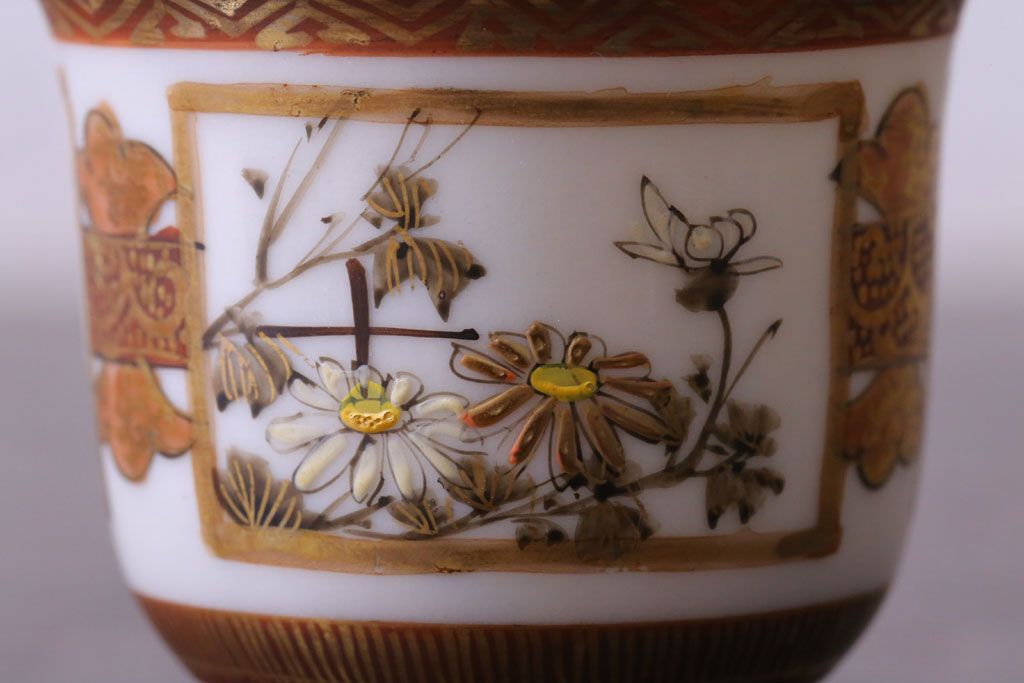 古民具・骨董 明治〜大正 九谷 上品な猪口(酒器)4客セット(1)