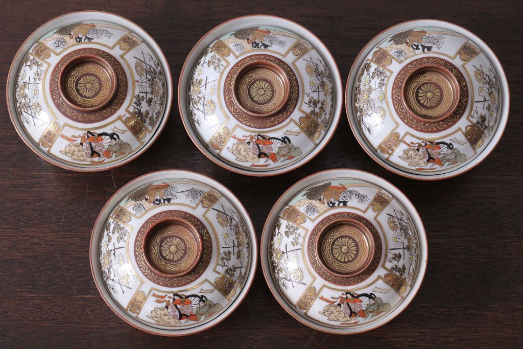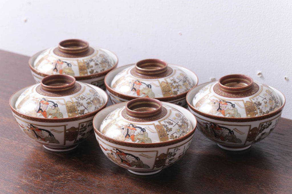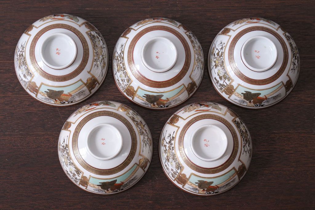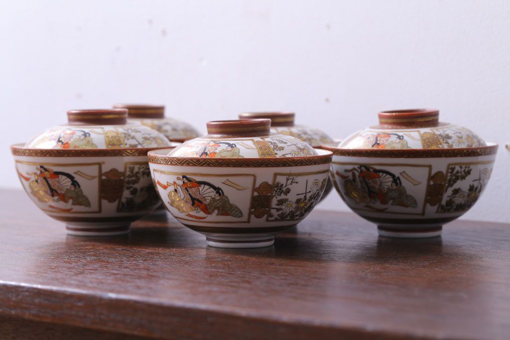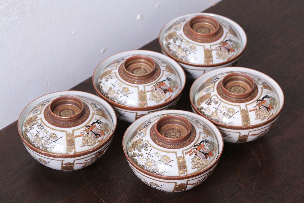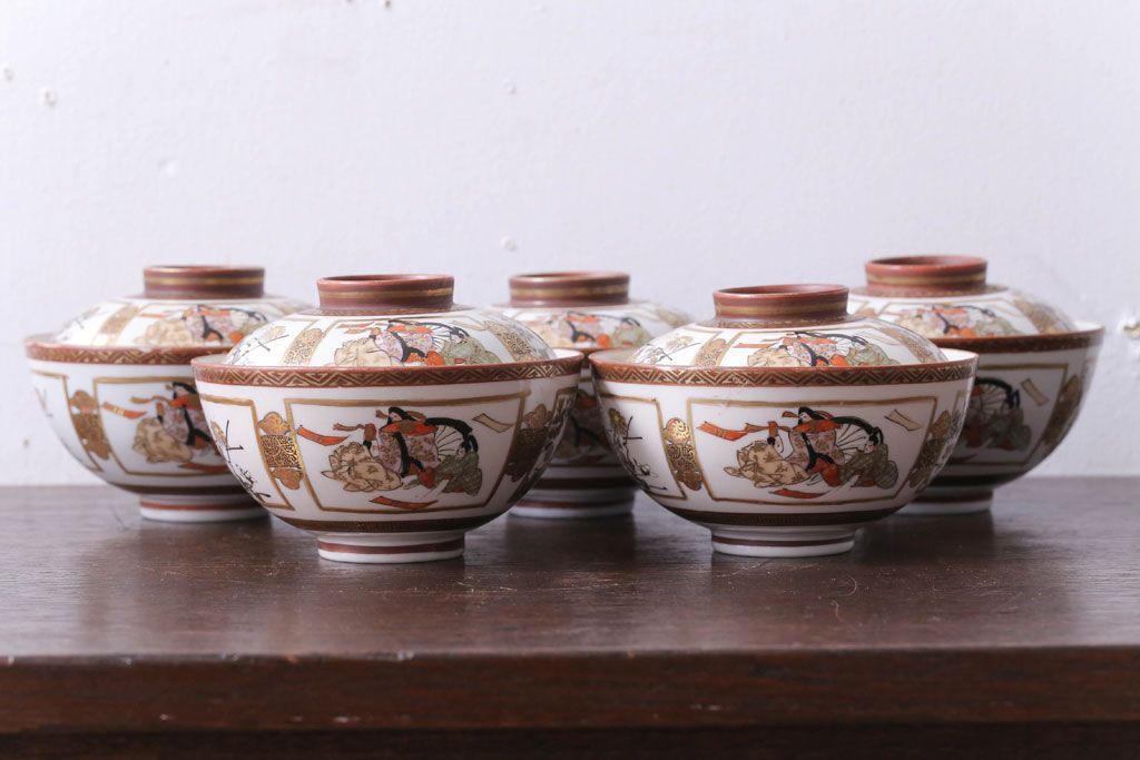 アンティーク雑貨 古民具・骨董 明治〜大正 九谷 色絵蓋茶碗5客セット