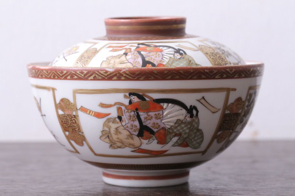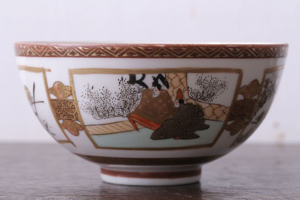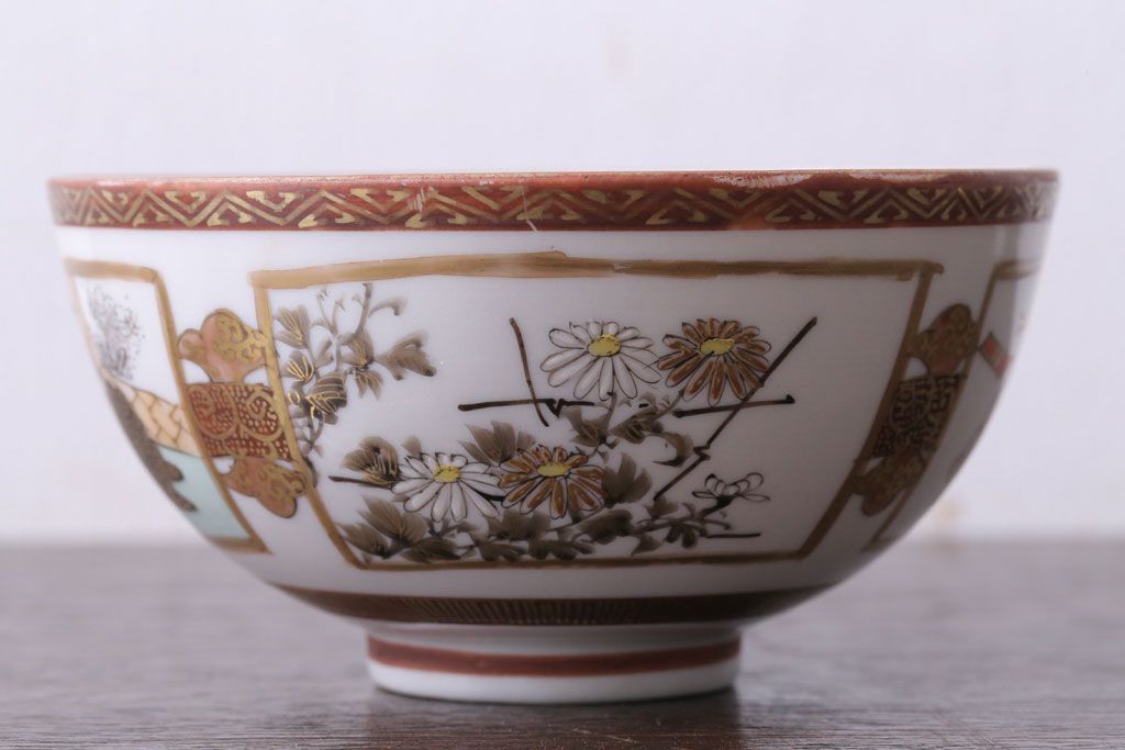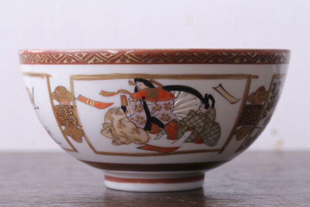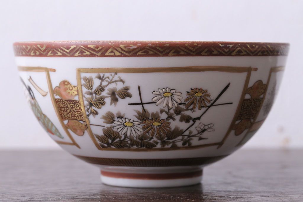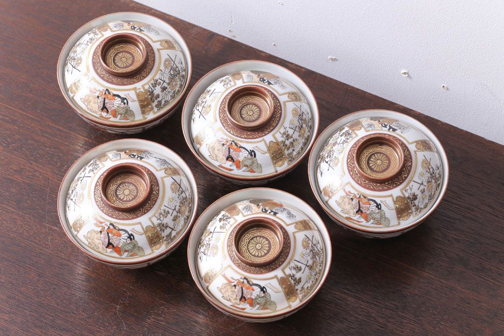 アンティーク雑貨 古民具・骨董 明治〜大正 九谷 色絵蓋茶碗5客セット