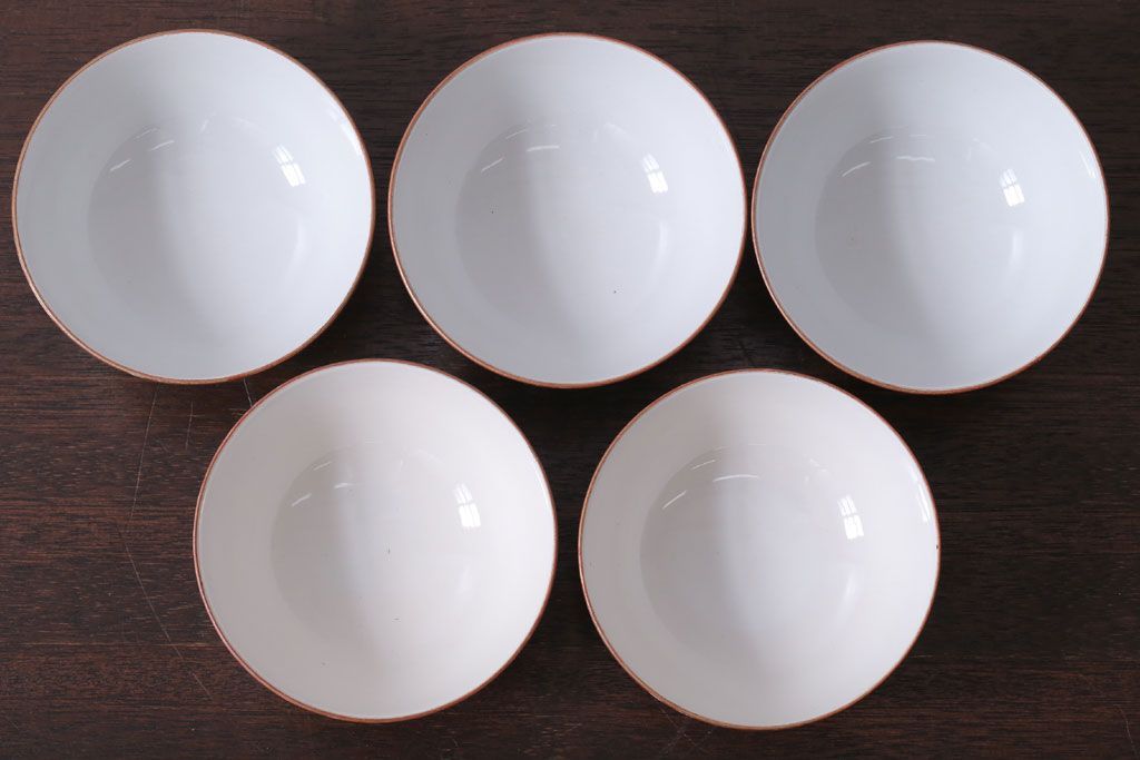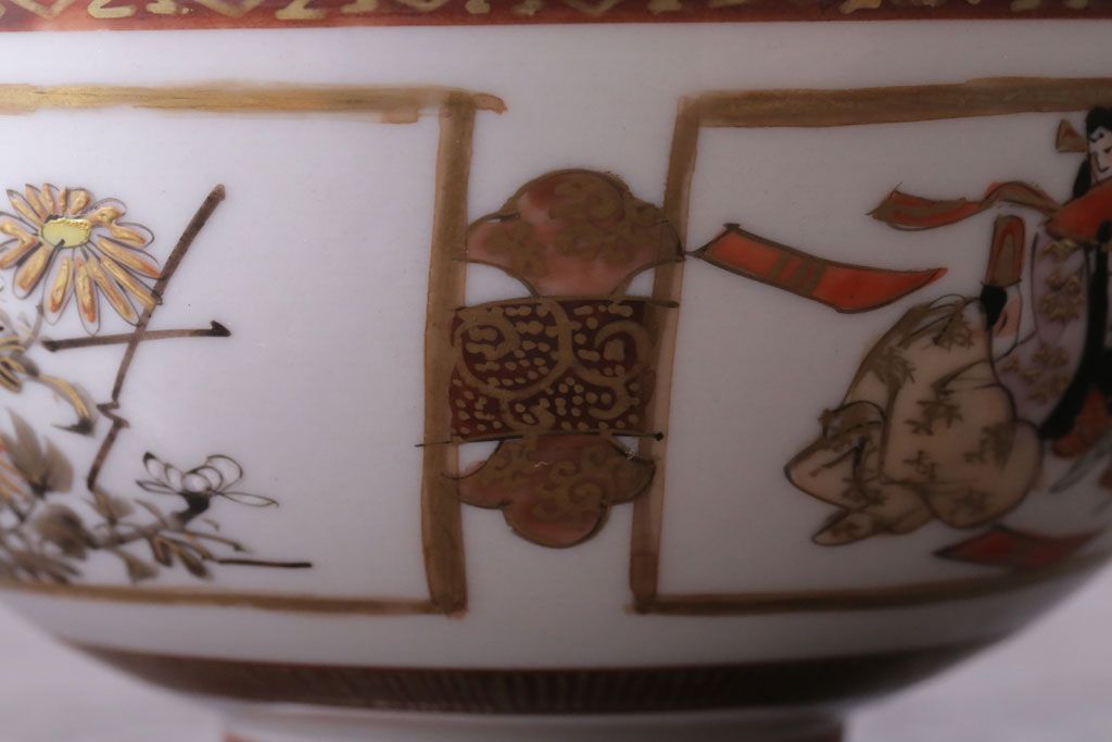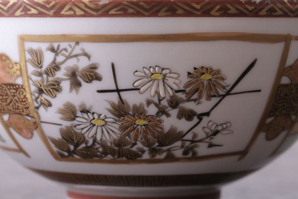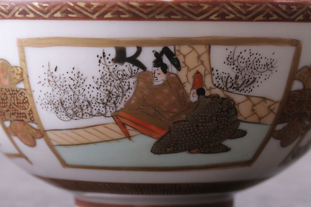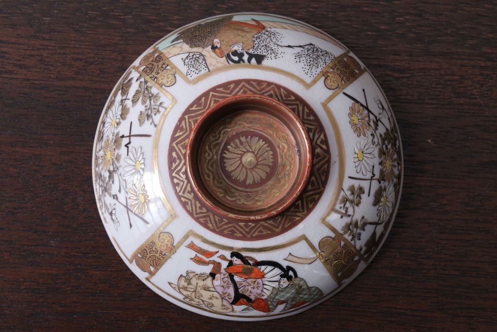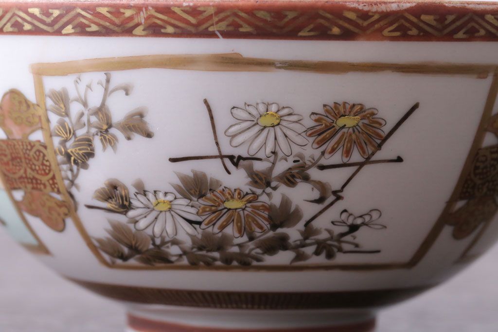 アンティーク雑貨 古民具・骨董 明治〜大正 九谷 色絵蓋茶碗5客セット