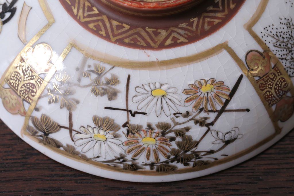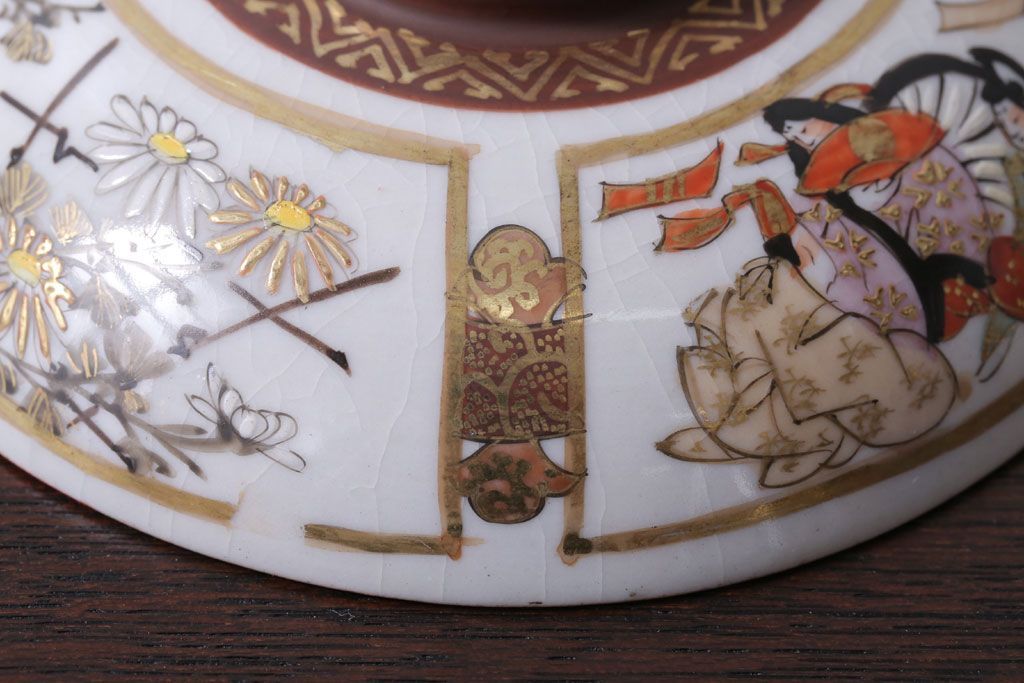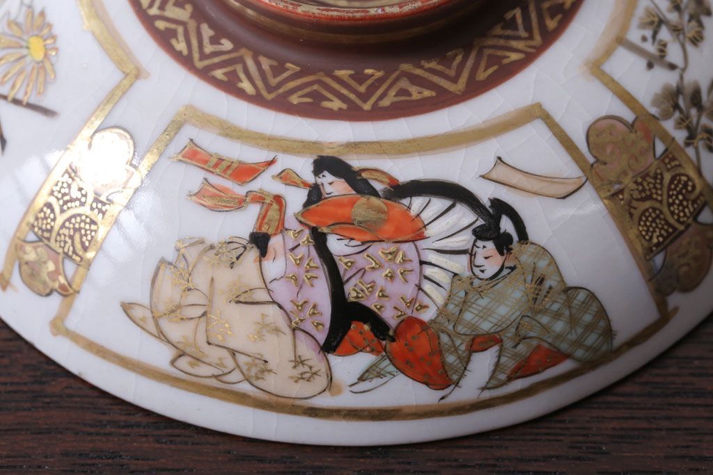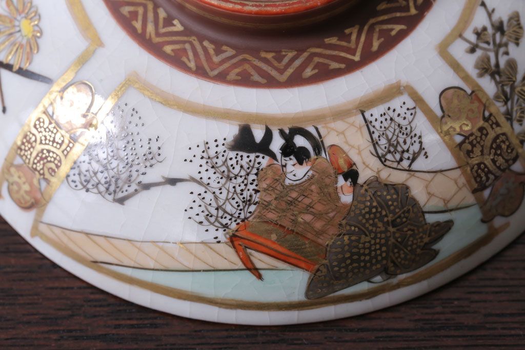 人物や植物などが鮮やかな色彩で描かれている、九谷焼のお品です。