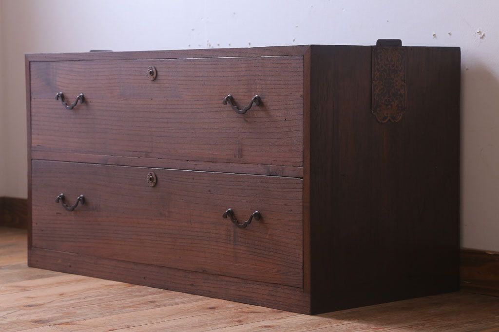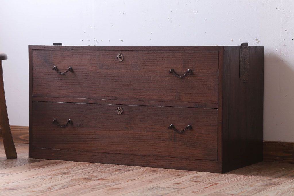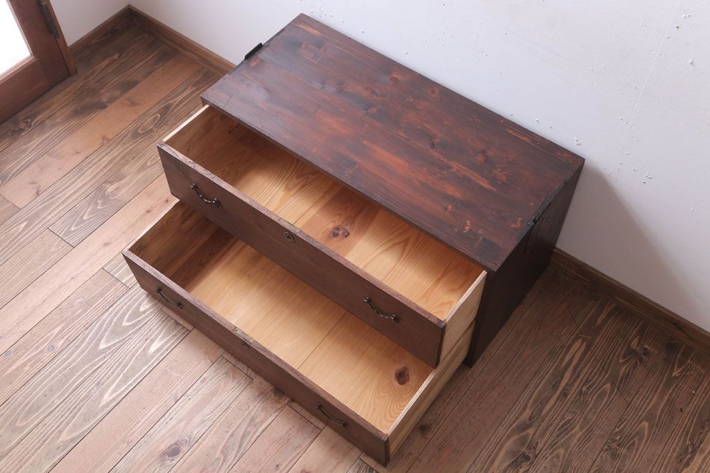 ラフジュ工房> 和箪笥 > アンティーク家具 和製アンティーク シンプルな古い木製の箪笥ローボード(衣装箪笥)
