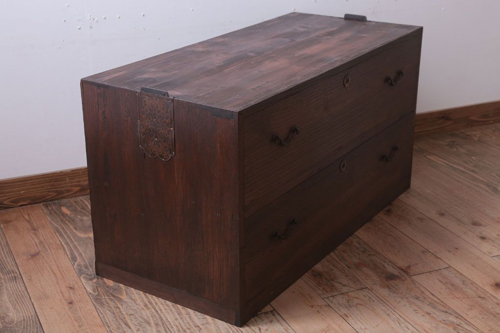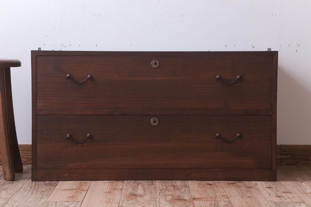 アンティーク家具 和製アンティーク シンプルな古い木製の箪笥ローボード(衣装箪笥)