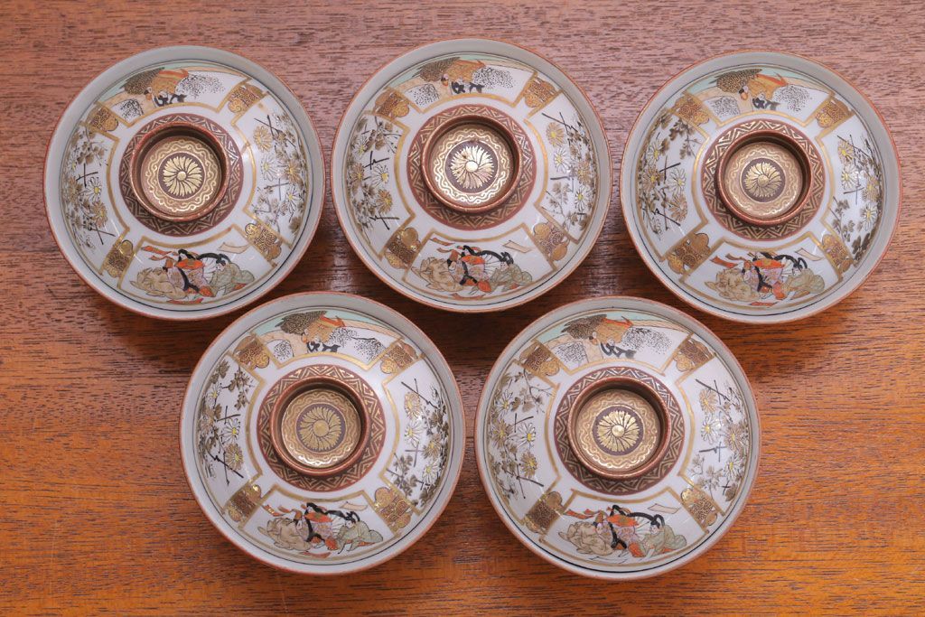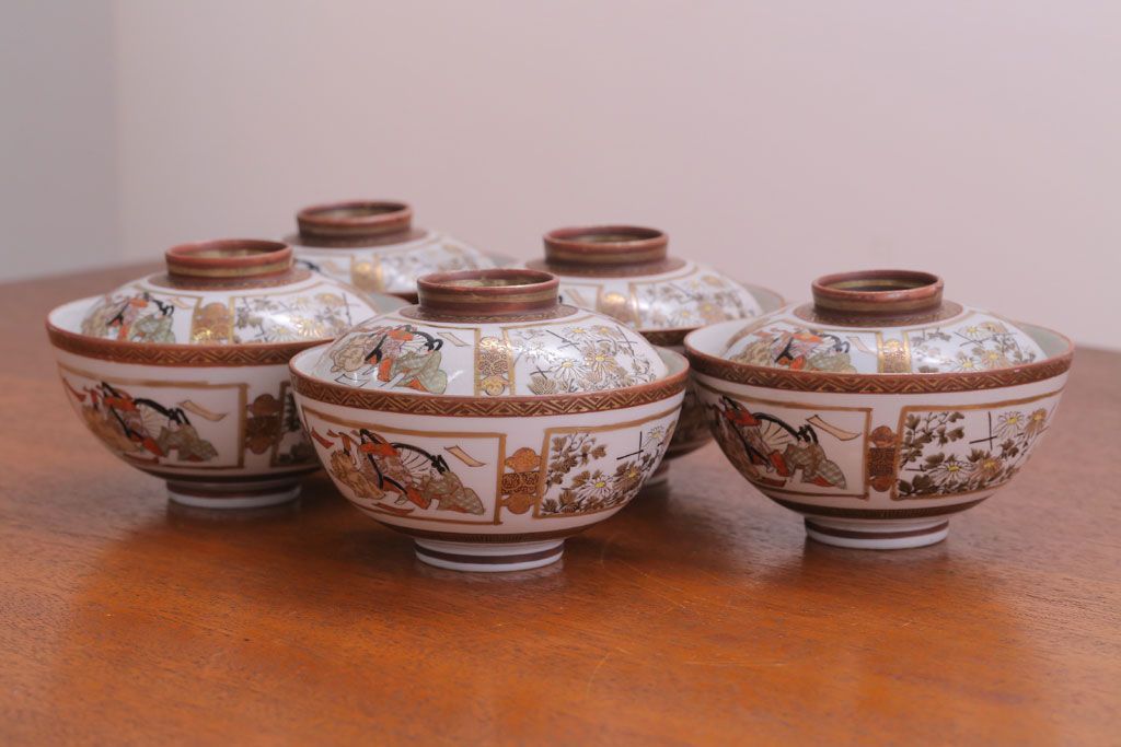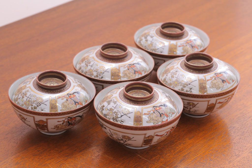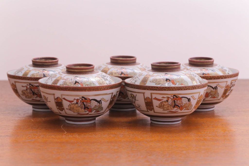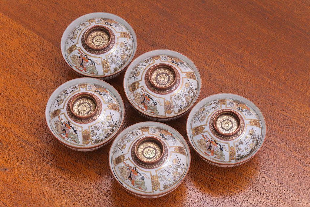 ラフジュ工房> 骨董・美術品 > 古民具・骨董 明治〜大正 九谷 色絵蓋茶碗5客セット(2)