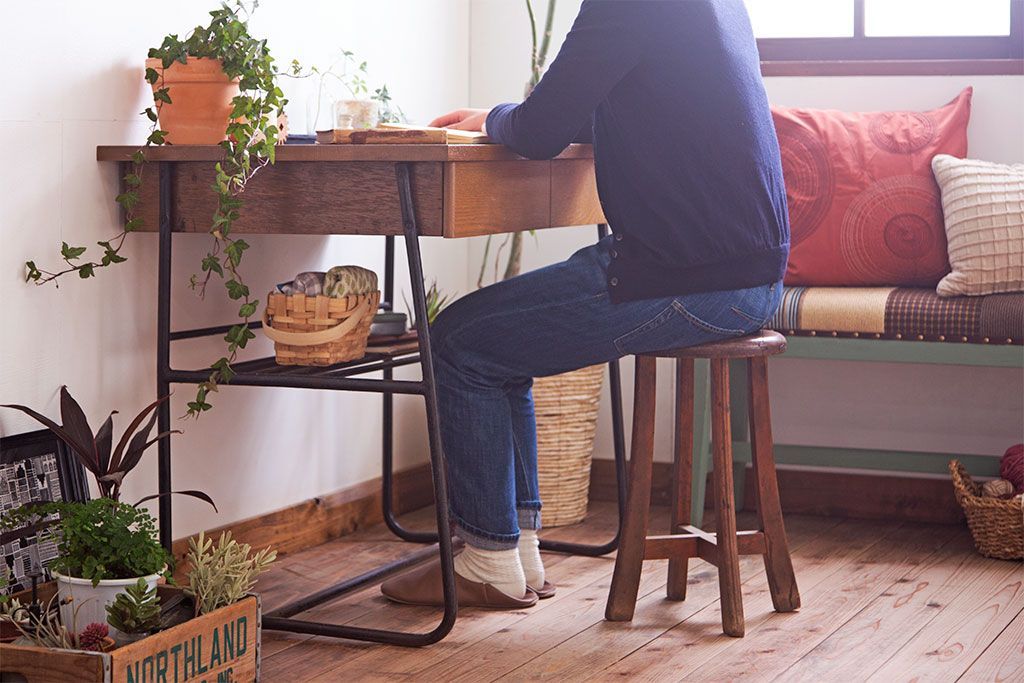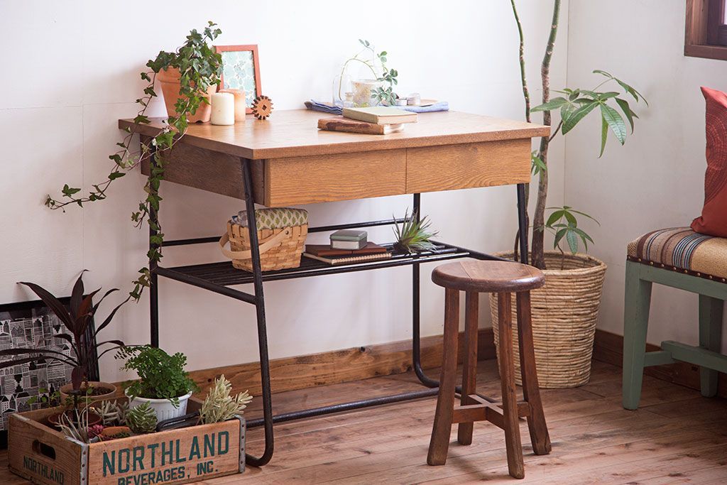 ラフジュ工房> デスク> 平机 > ヴィンテージ家具 ビンテージ 天板・引き出し前板オーク材の古い鉄脚テーブル(平机)