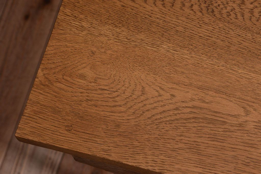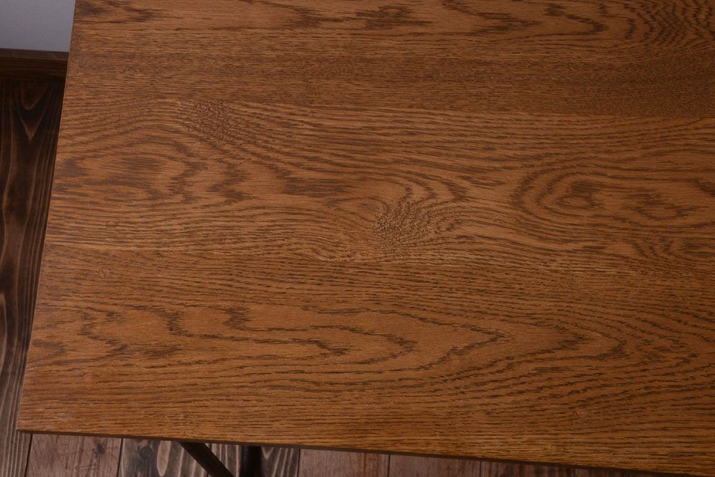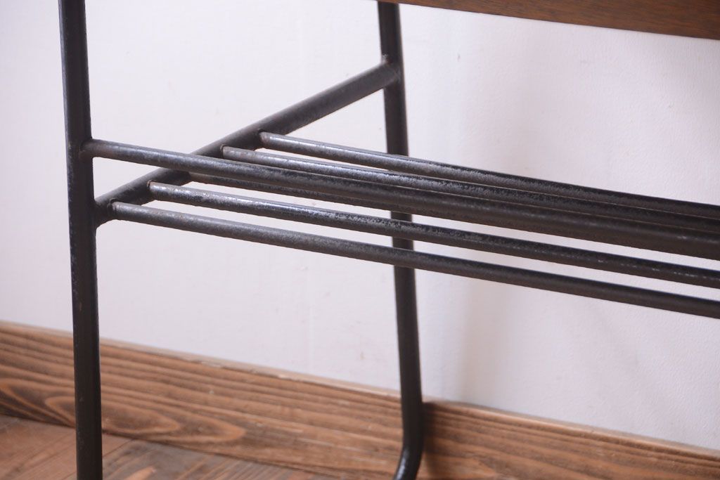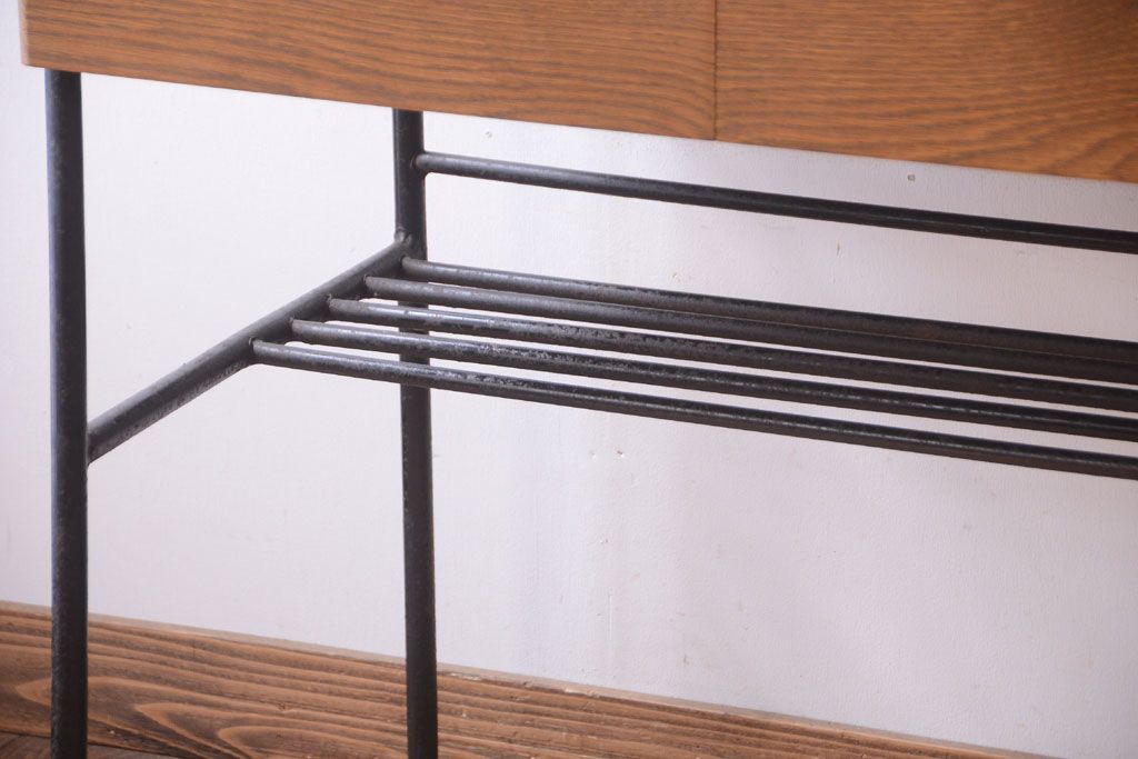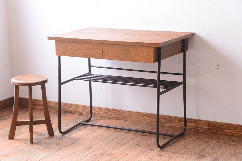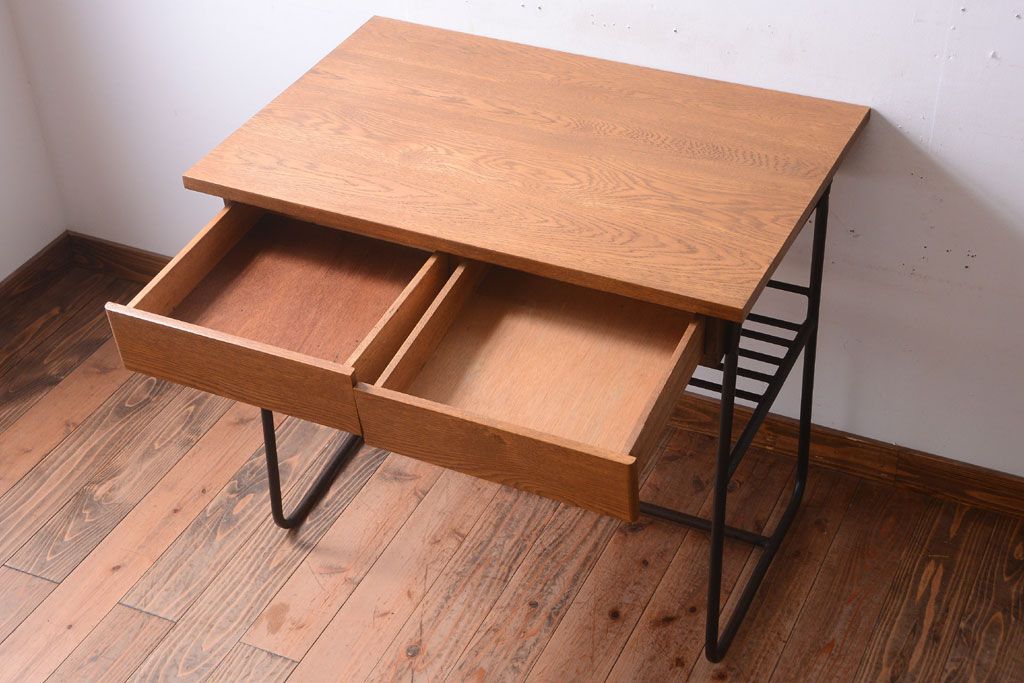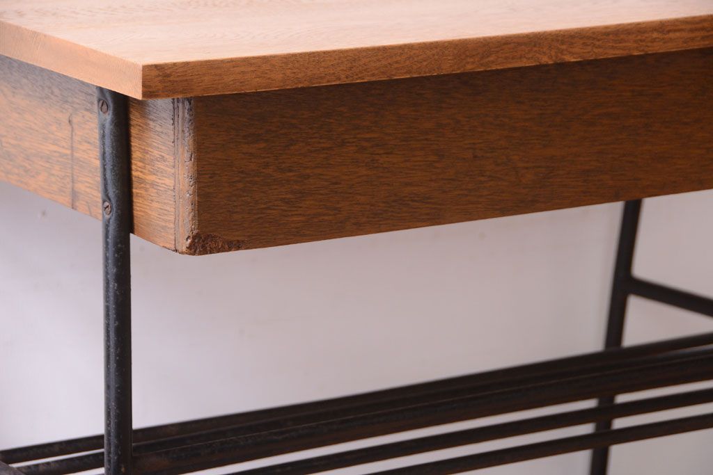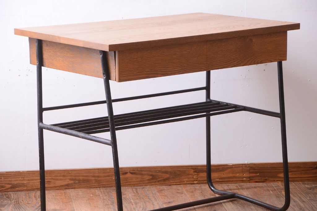 ヴィンテージ家具 ビンテージ 天板・引き出し前板オーク材の古い鉄脚テーブル(平机)