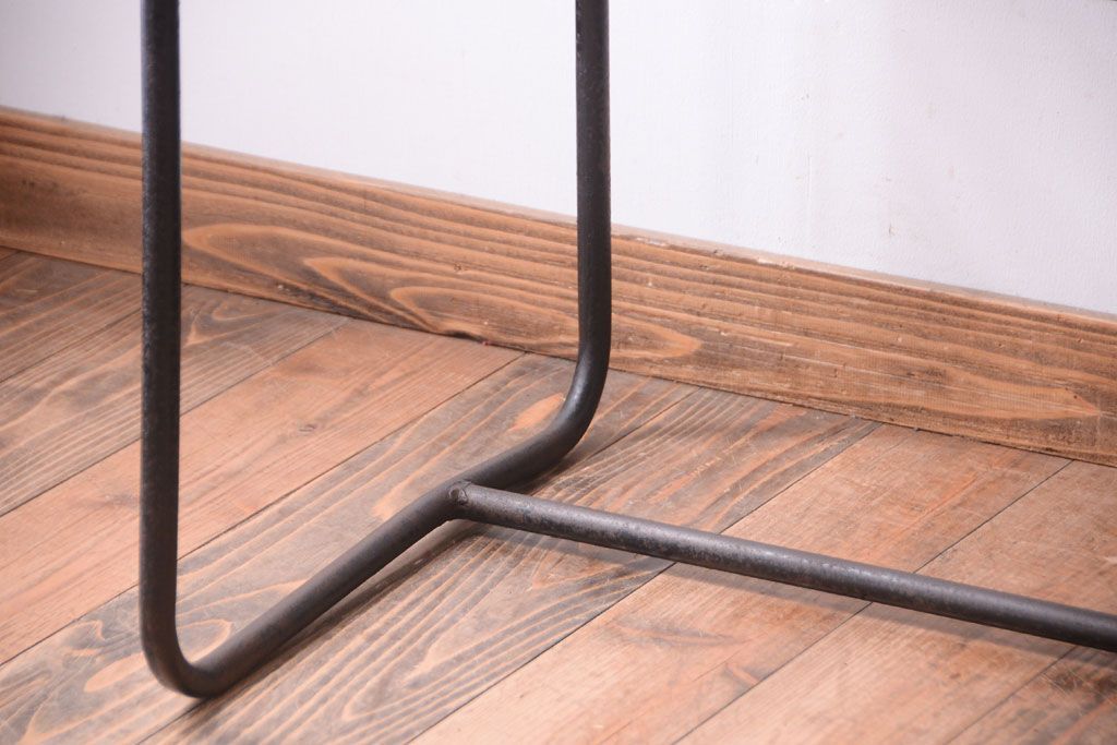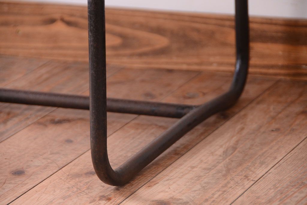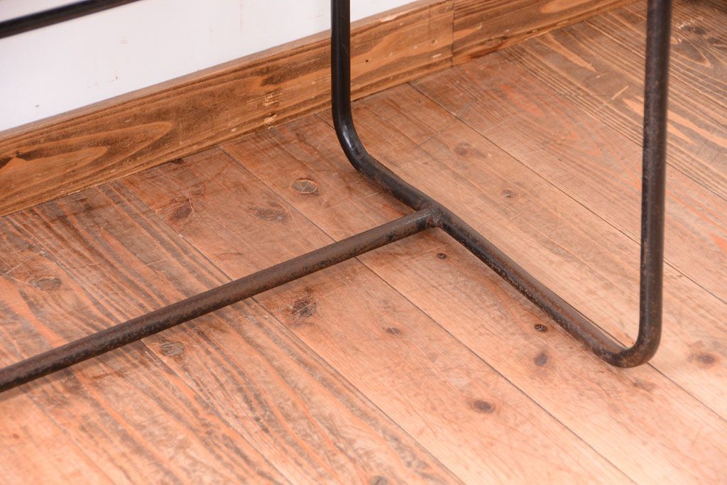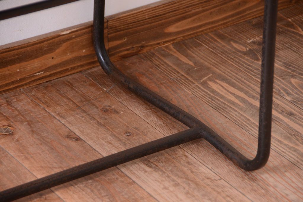 ラフジュ工房> テーブル> 鉄脚テーブル > ヴィンテージ家具 ビンテージ 天板・引き出し前板オーク材の古い鉄脚テーブル(平机)