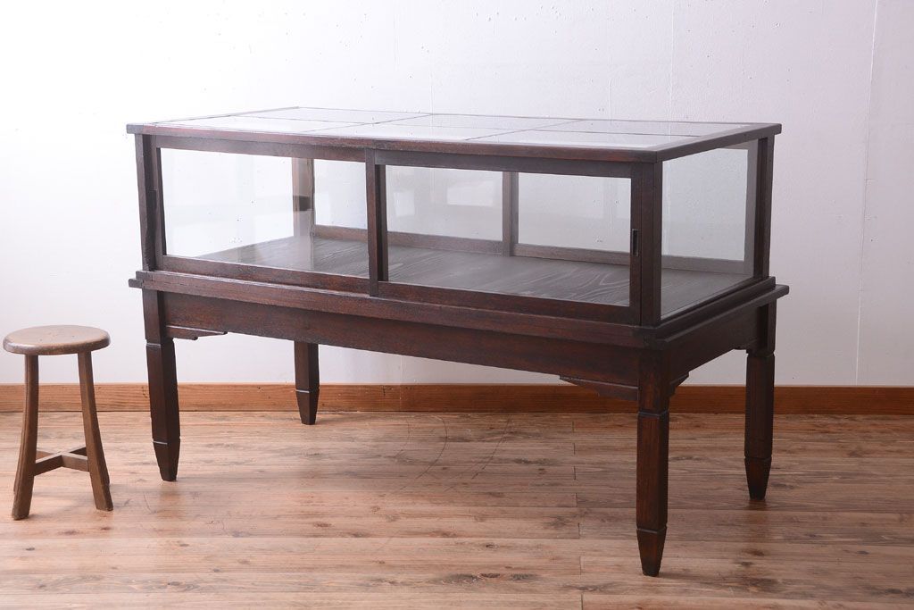ラフジュ工房> 店舗什器 > アンティーク家具 大正ロマン 脚付きのアンティーク飾りガラスケース(ショーケース)