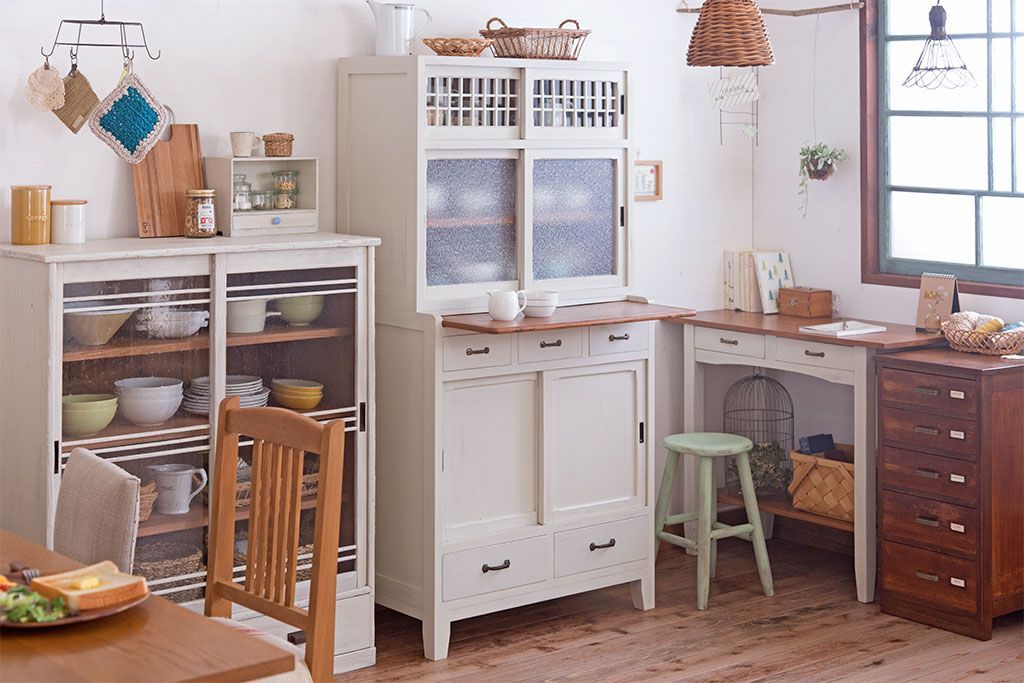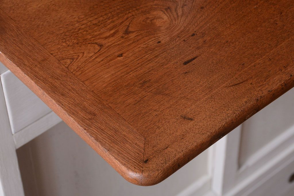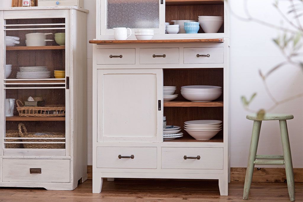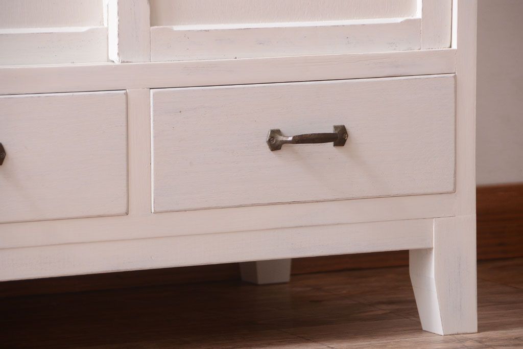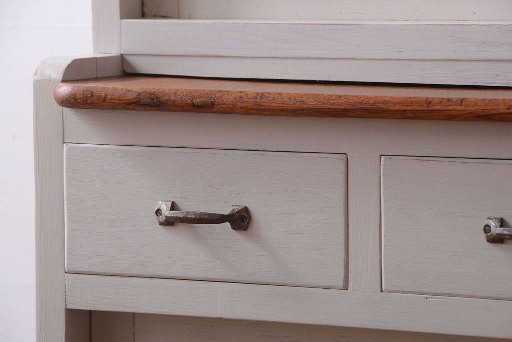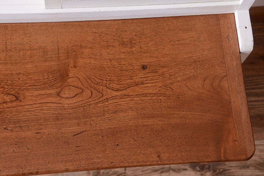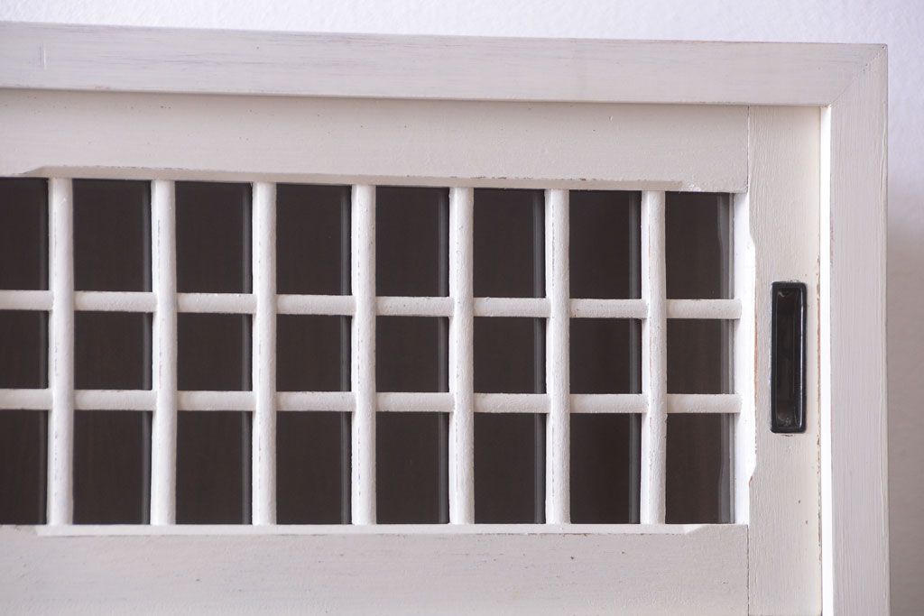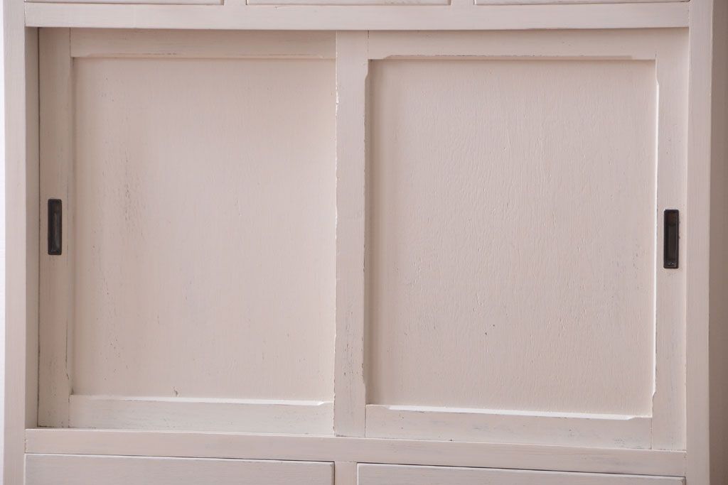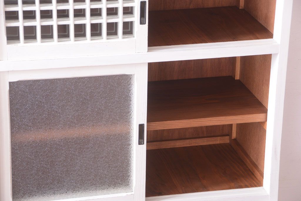 アンティーク家具 アンティークペイント ダイヤガラス入り!脚付き重ね食器棚