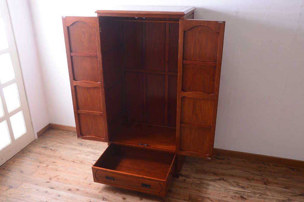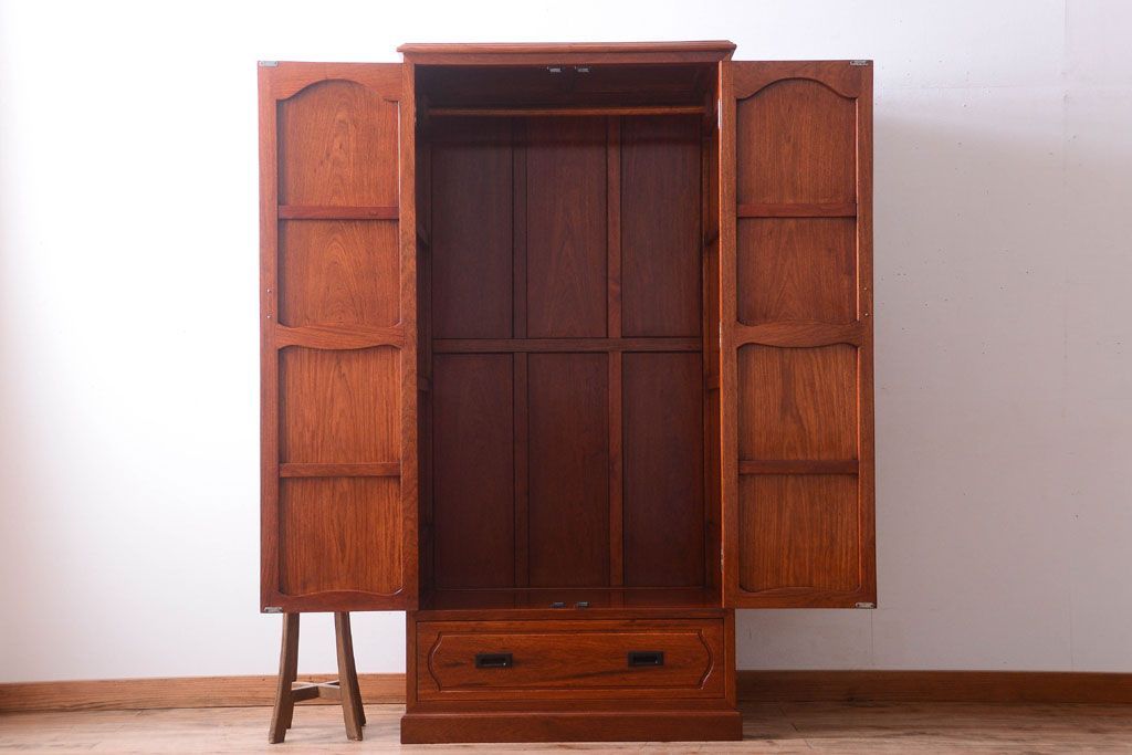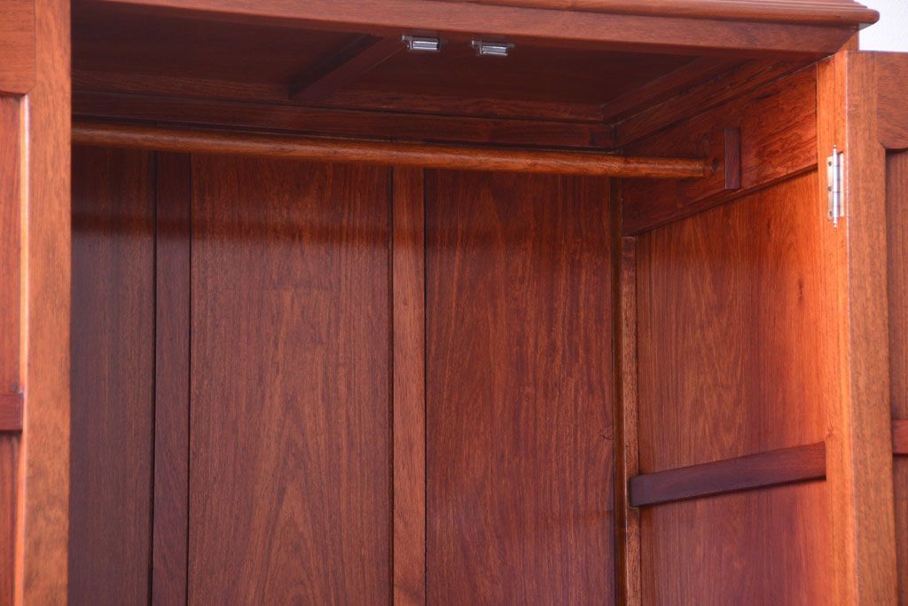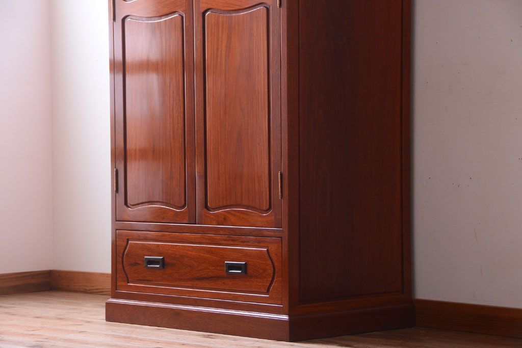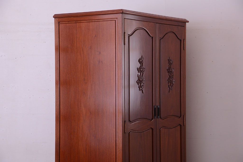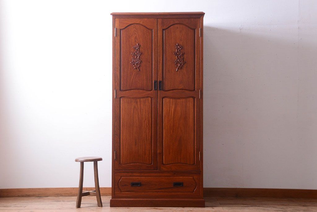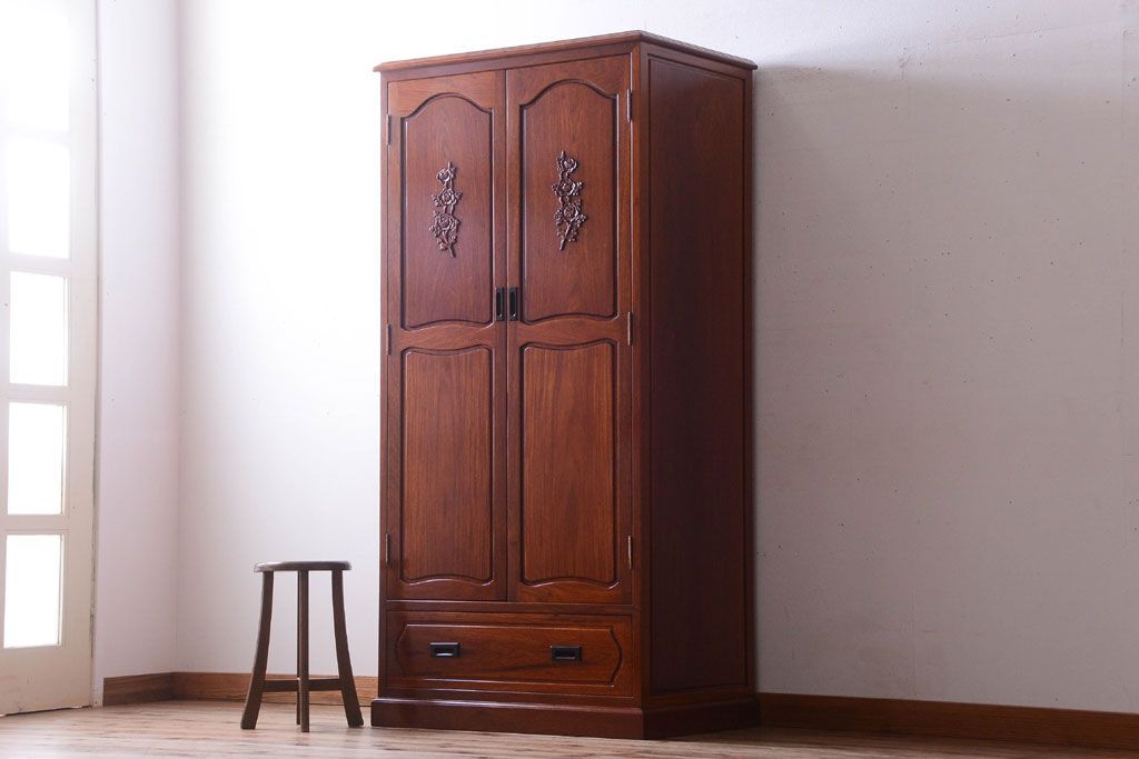 中古 高級品 彫刻が美しい唐木材のワードローブ(クローゼット)(定価約469000円)