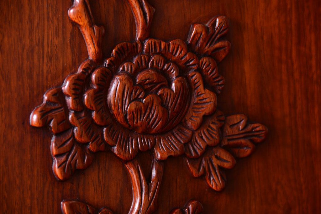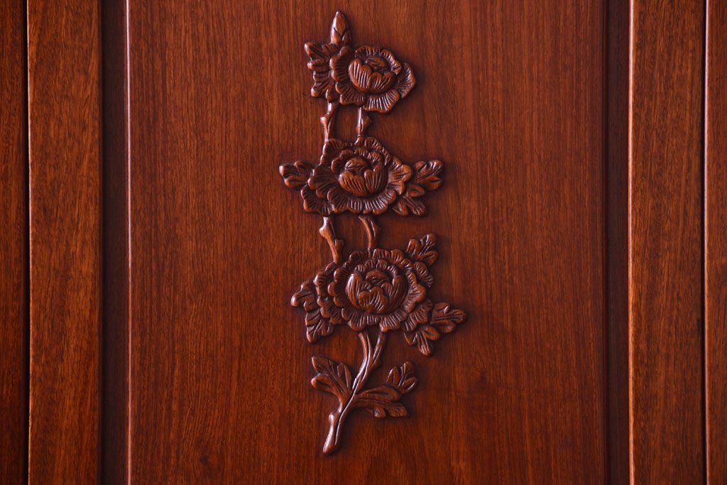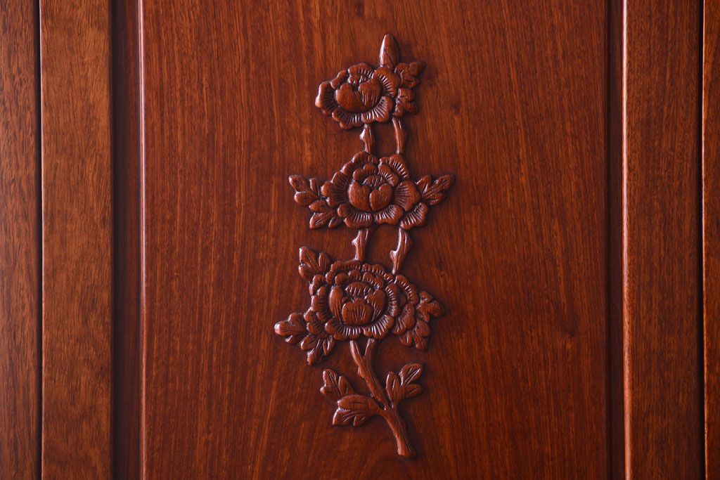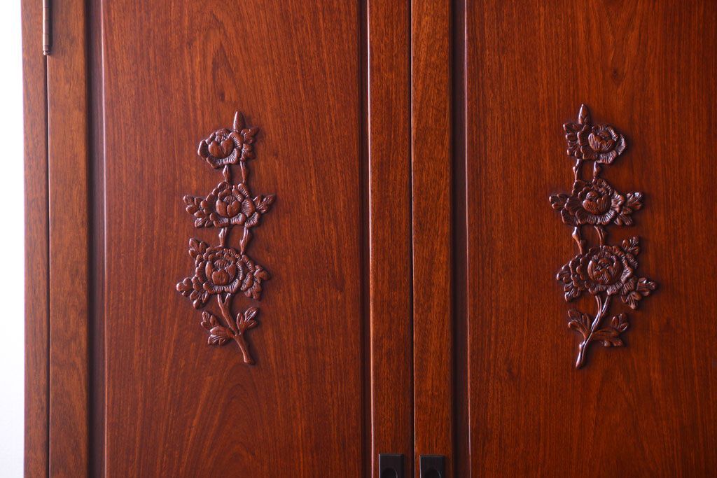 中古 高級品 彫刻が美しい唐木材のワードローブ(クローゼット)(定価約469000円)です。
