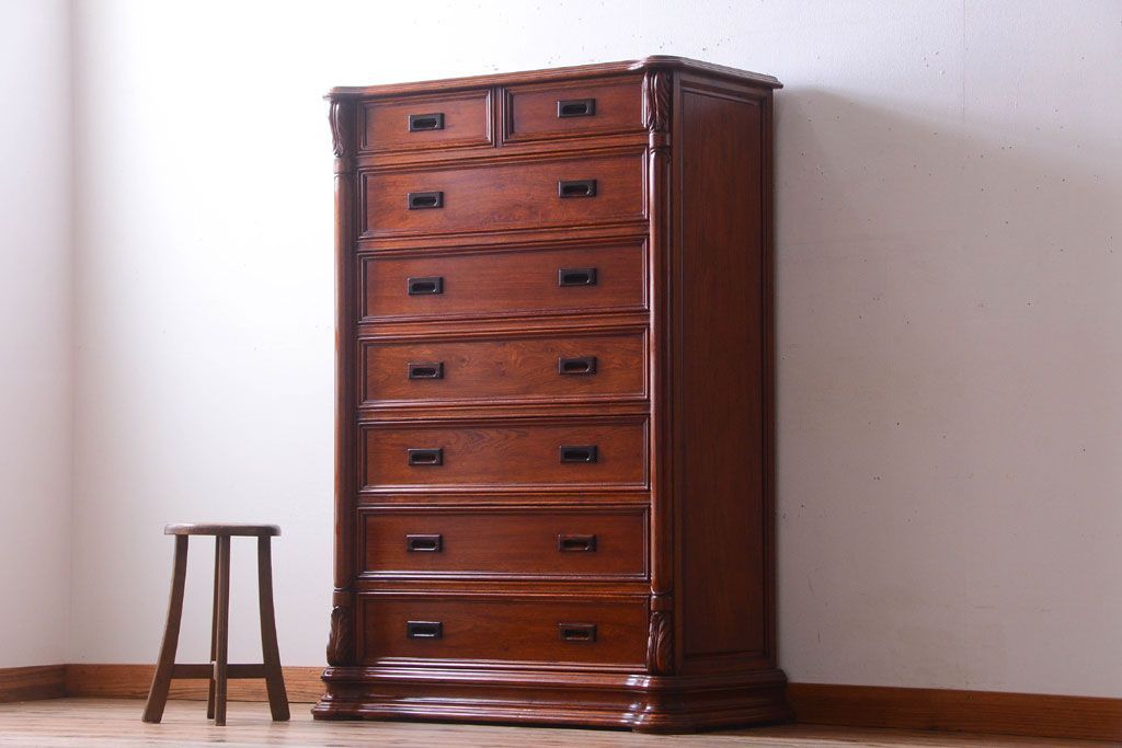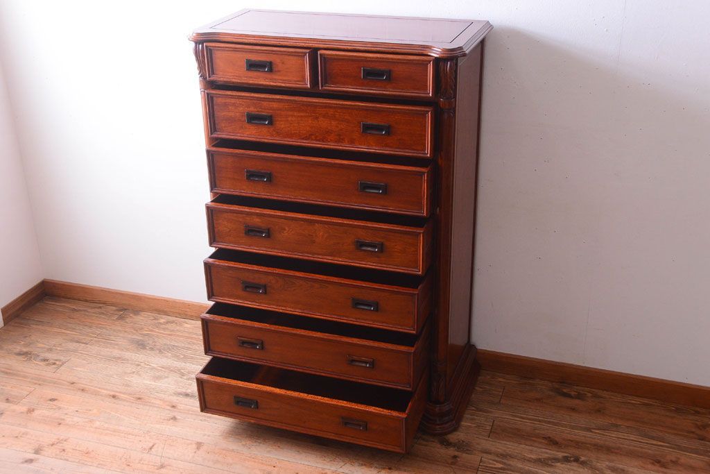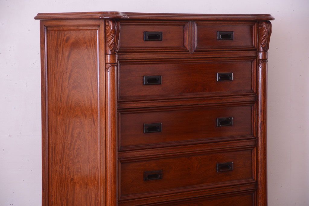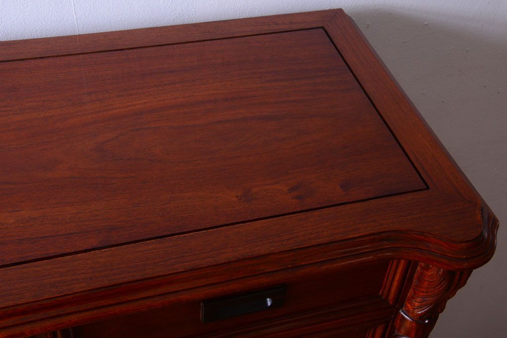 中古 高級品 彫刻が美しい唐木材のチェストです。