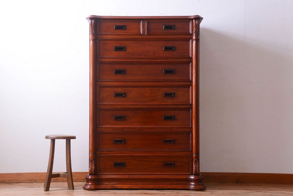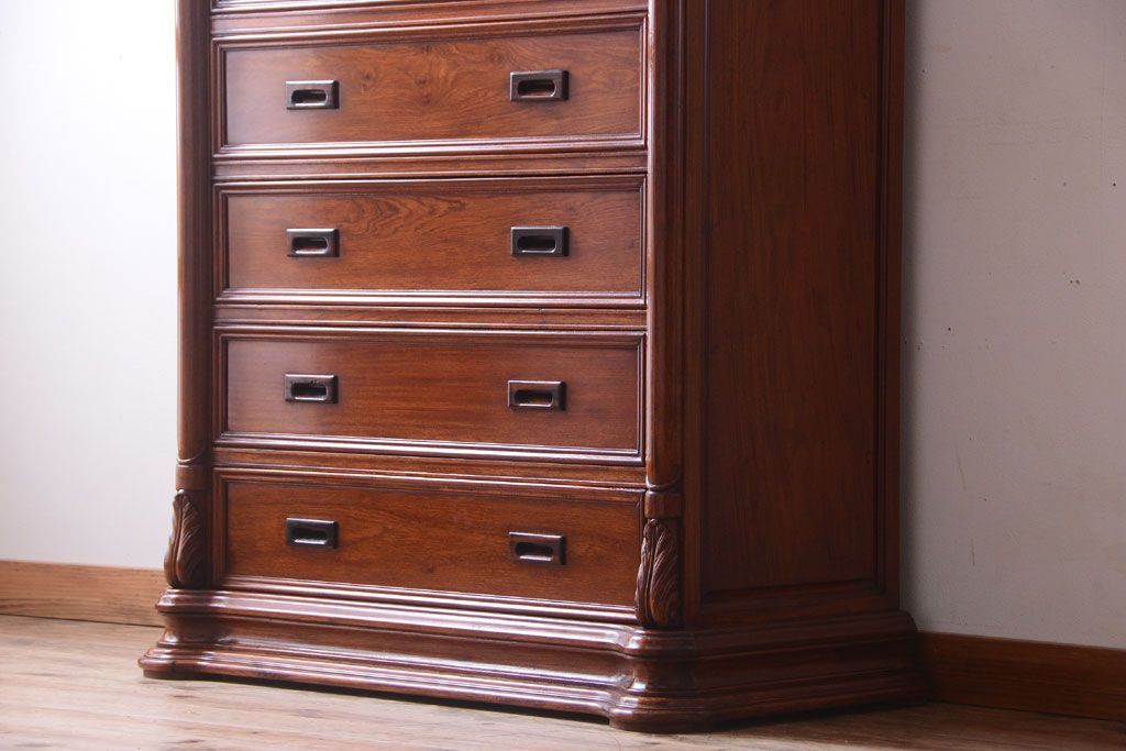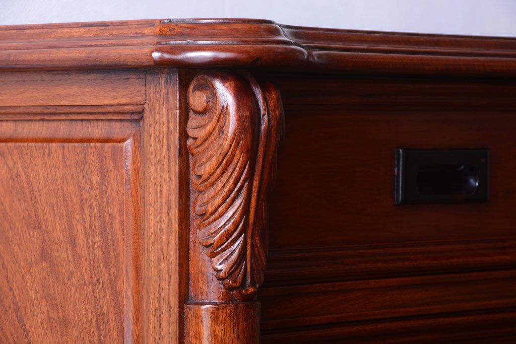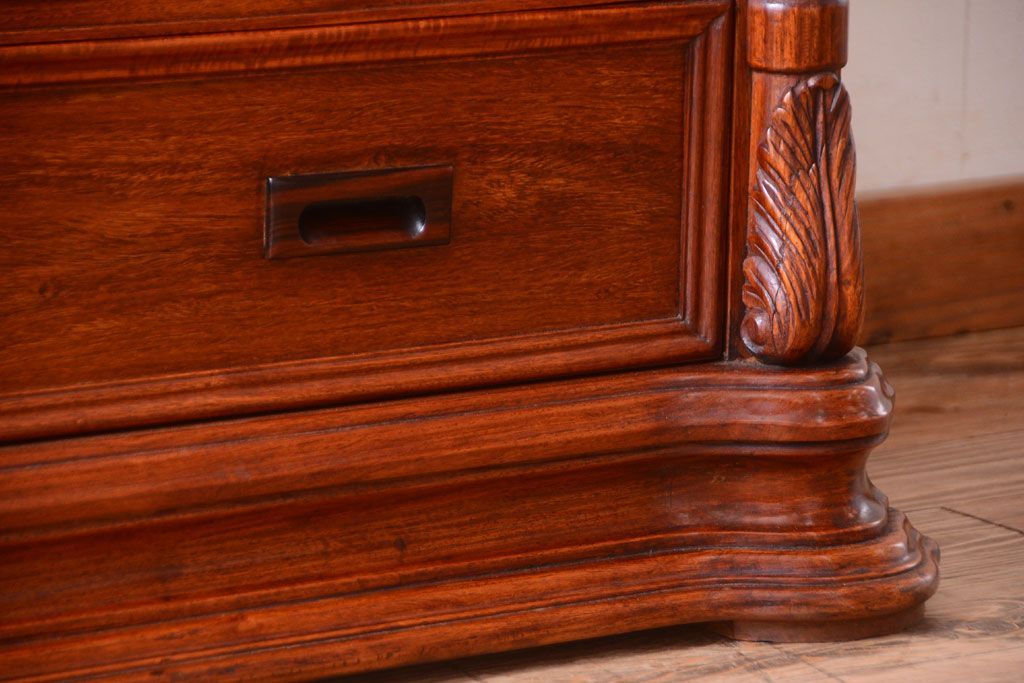 中古 高級品 彫刻が美しい唐木材のチェスト