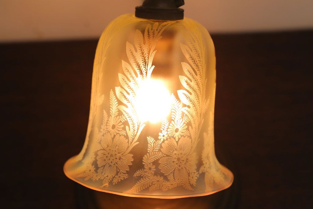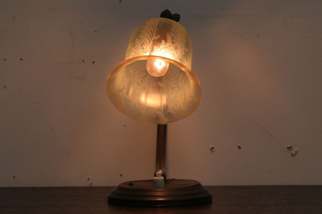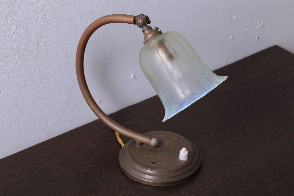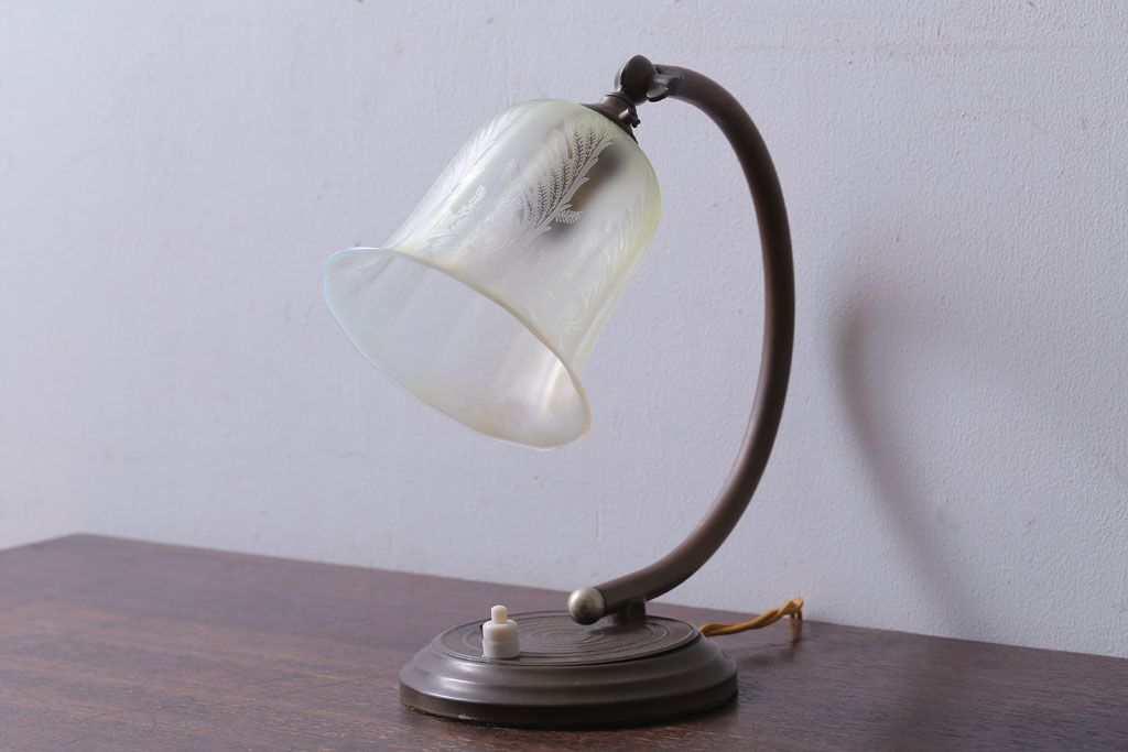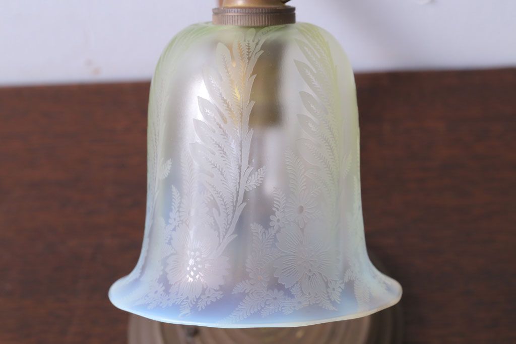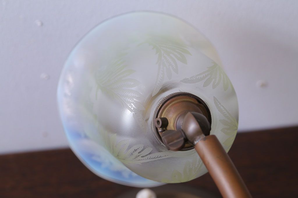 イギリスビンテージ オパールセントガラスのエッチングシェードデスクランプ(オパリンガラス)です。