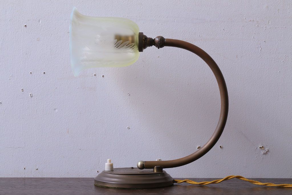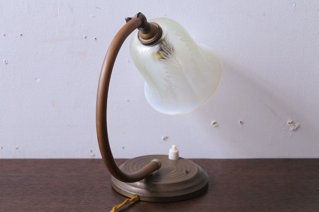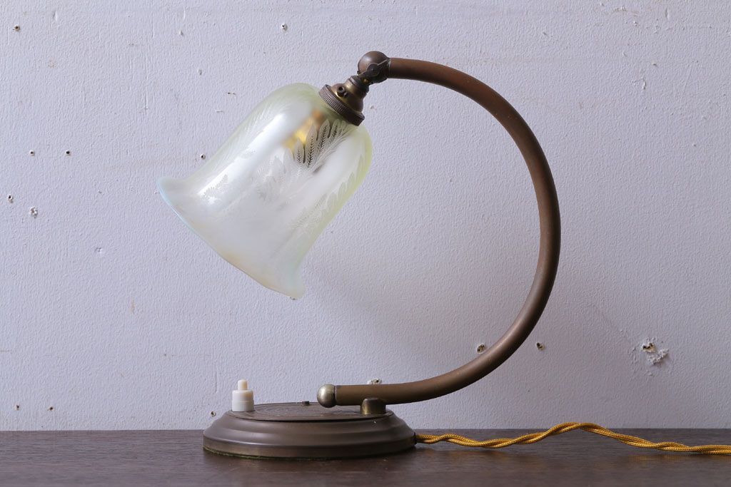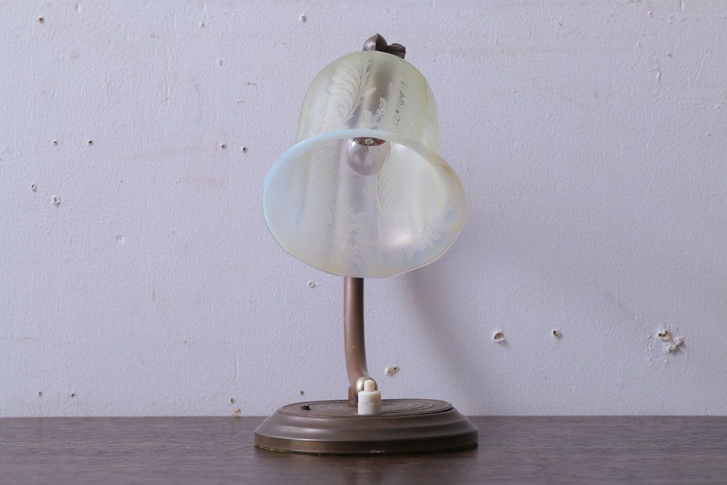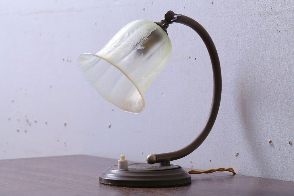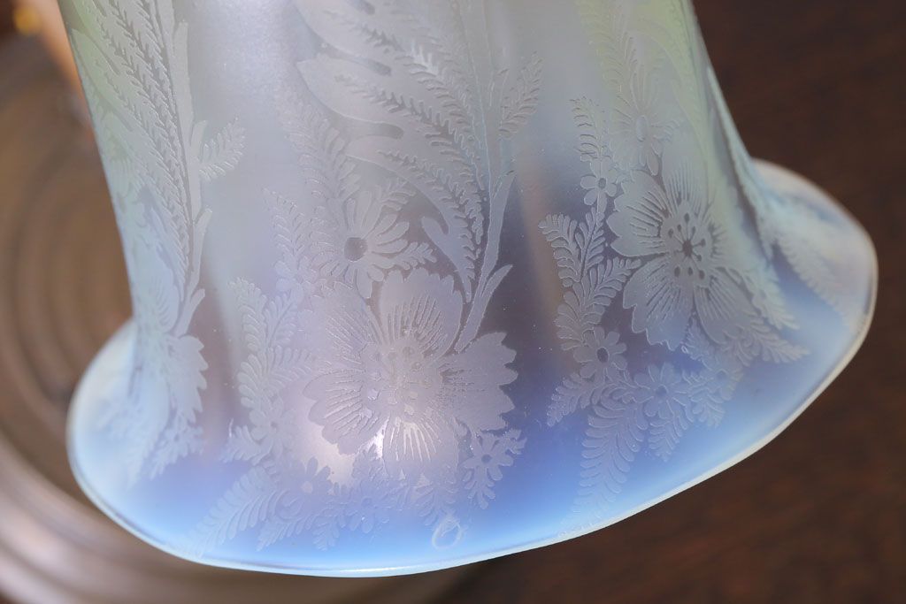 イギリスビンテージ オパールセントガラスのエッチングシェードデスクランプ(オパリンガラス)