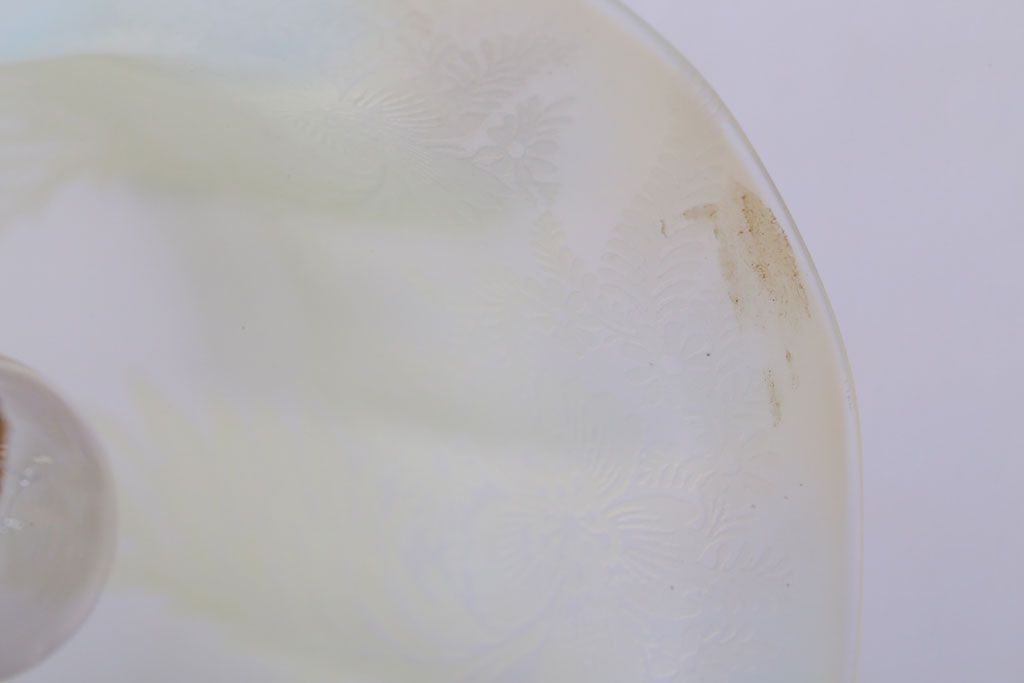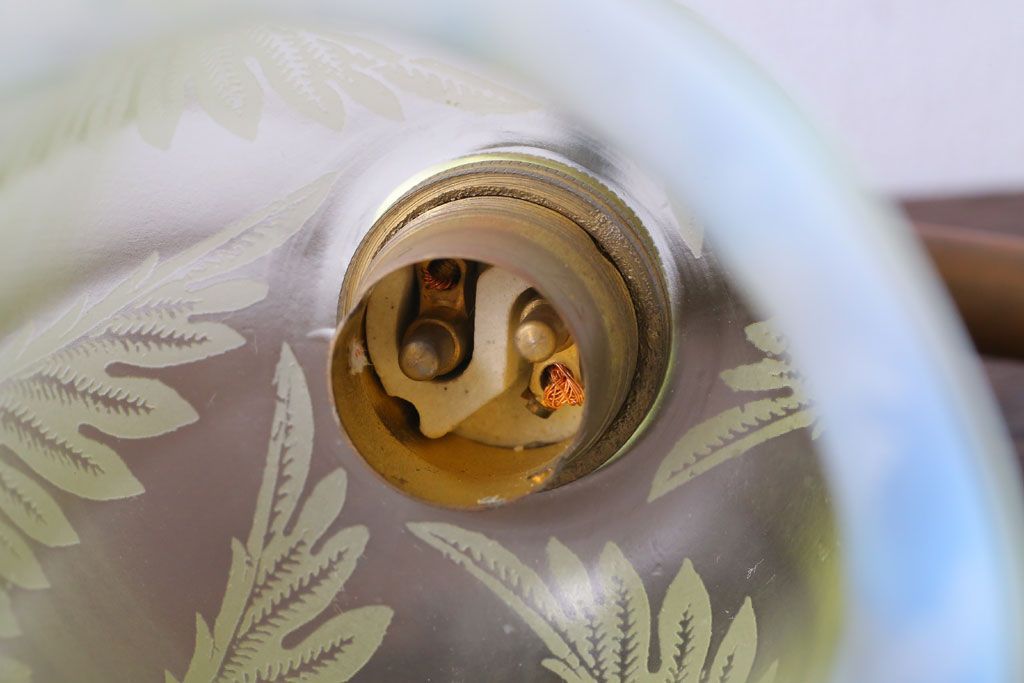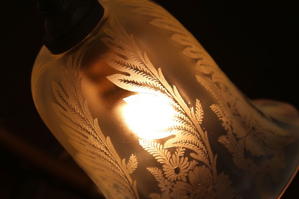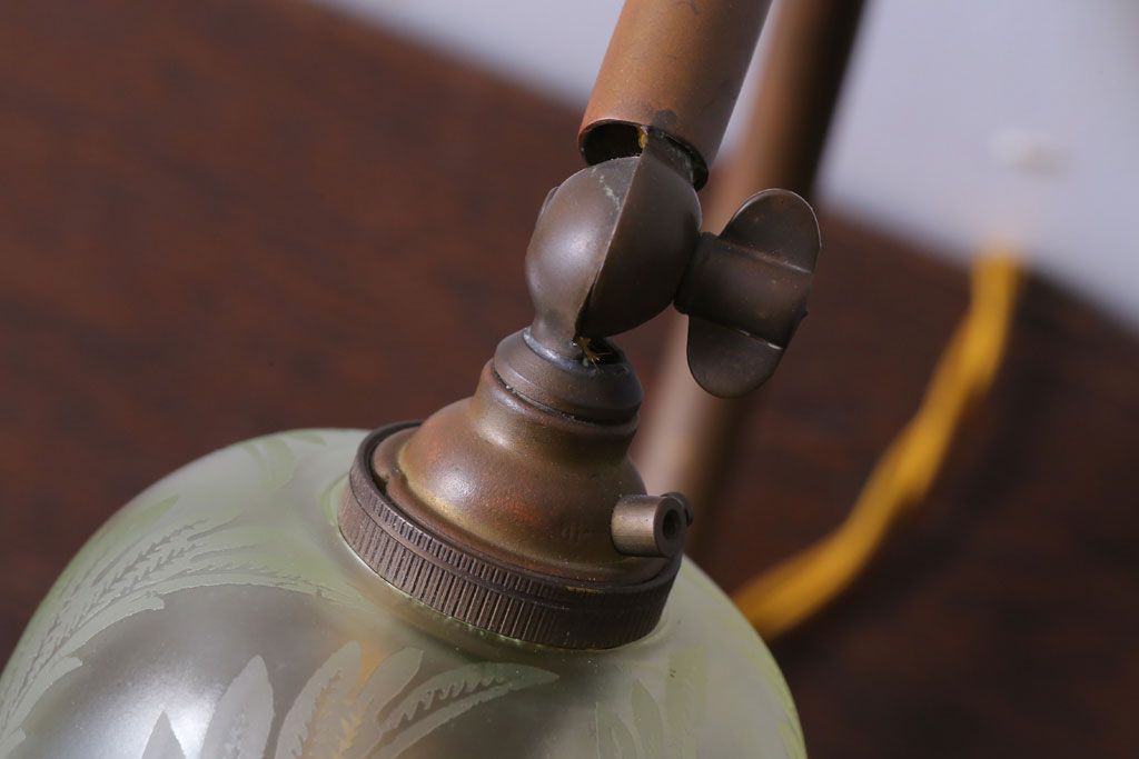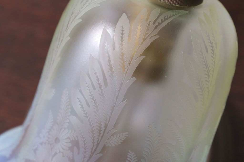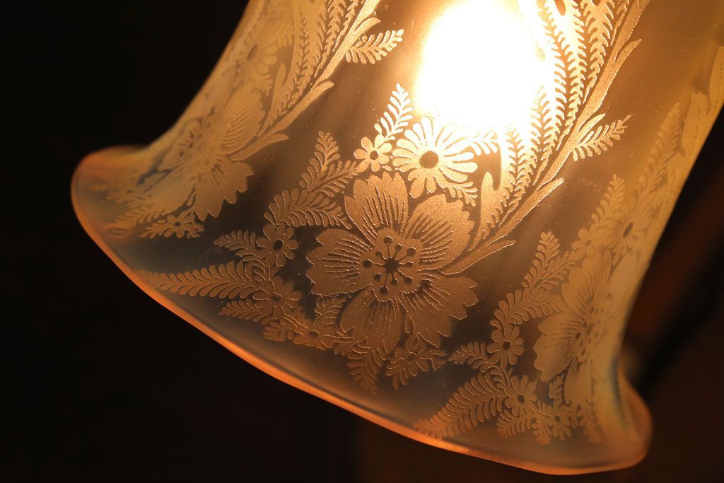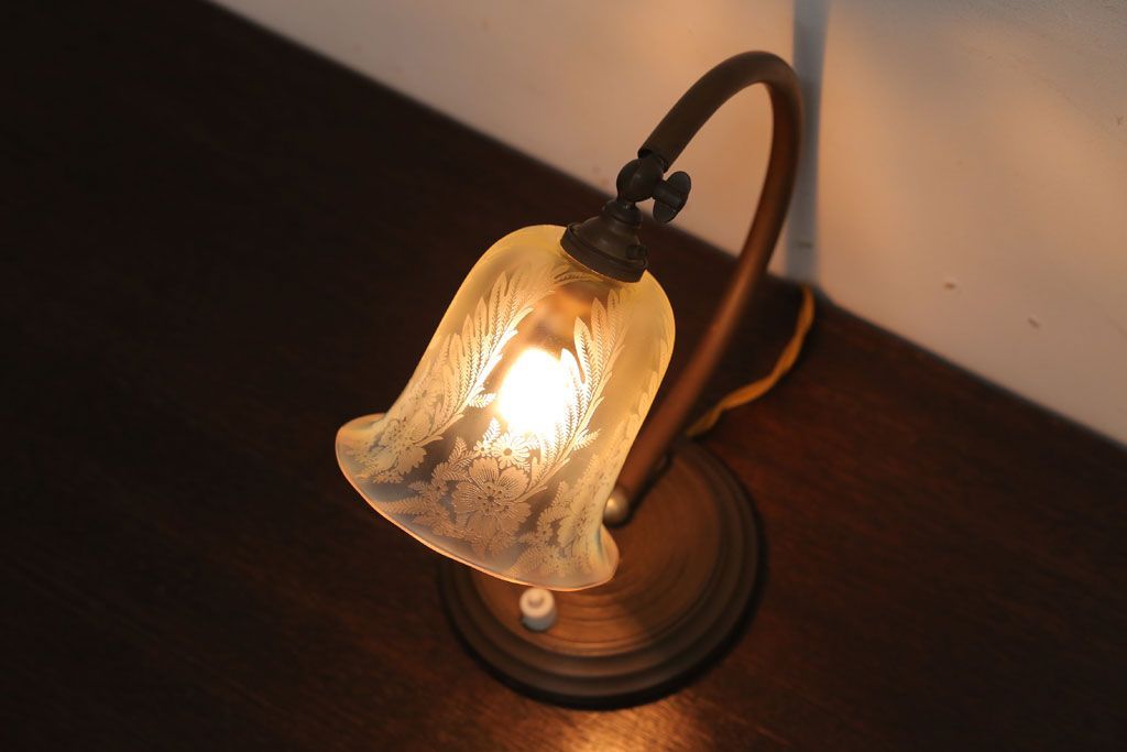 イギリスビンテージ オパールセントガラスのエッチングシェードデスクランプ(オパリンガラス)