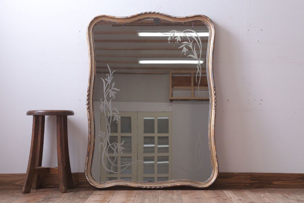 アンティーク雑貨 イギリスビンテージ 大きな壁掛けミラー(鏡)