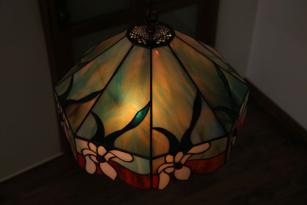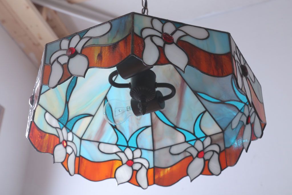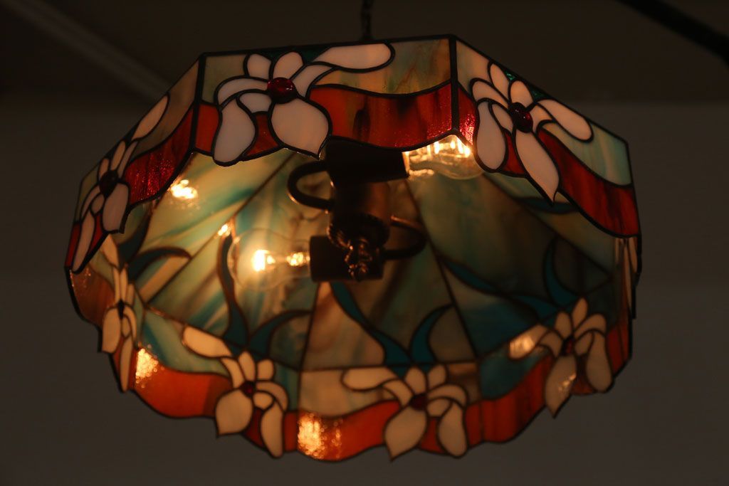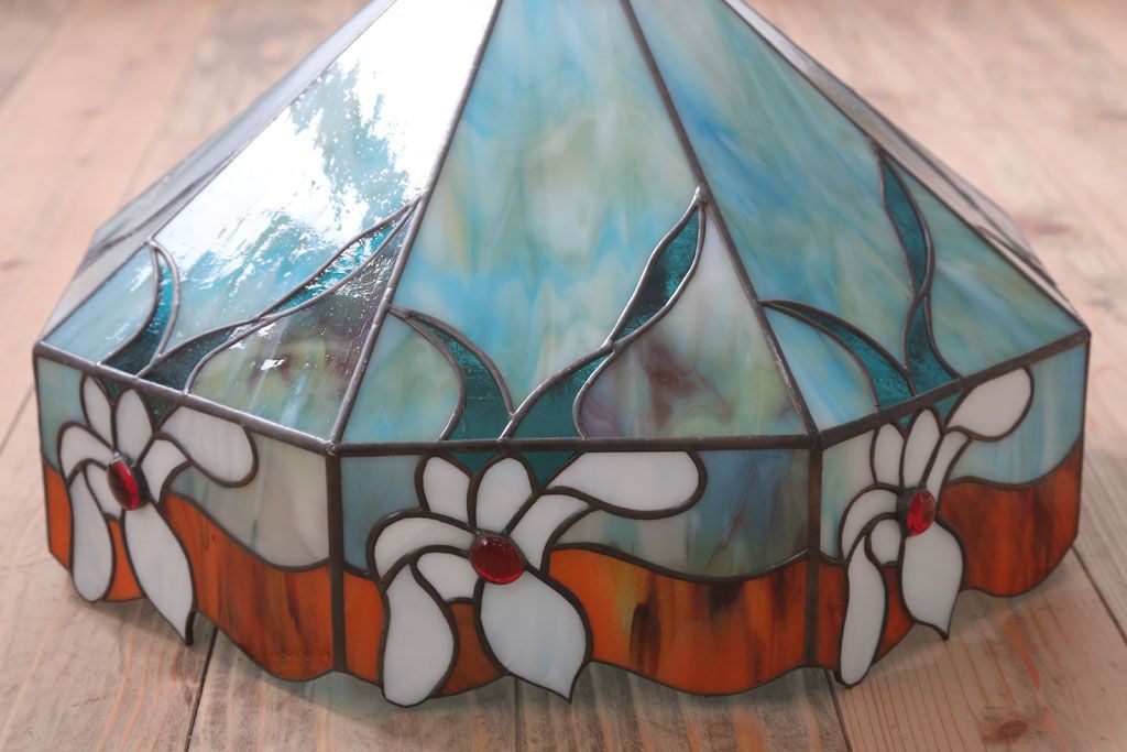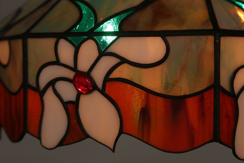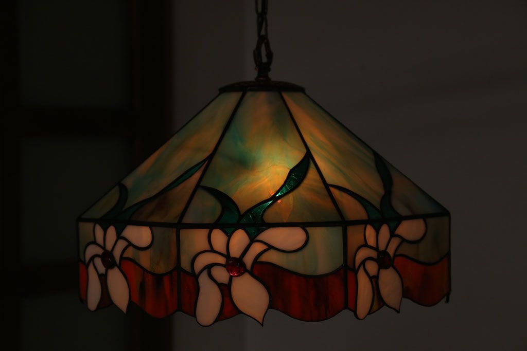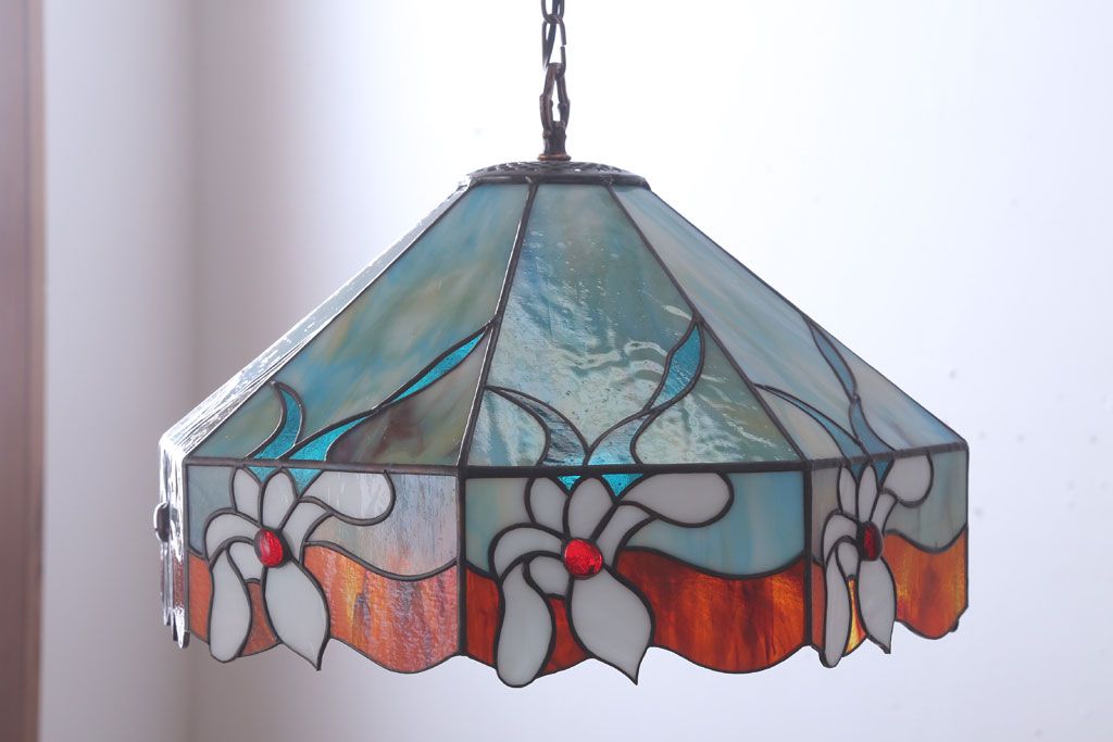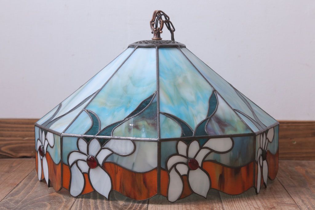 フランスビンテージ ステンドグラスシェードの上品な天井照明(ペンダントライト)