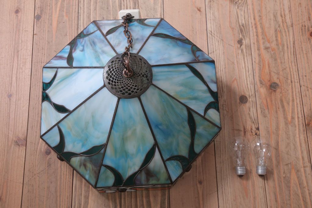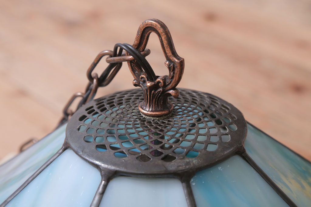 フランスビンテージ ステンドグラスシェードの上品な天井照明(ペンダントライト)です。