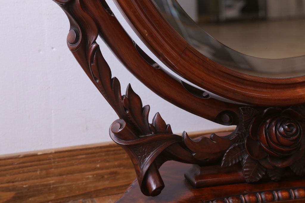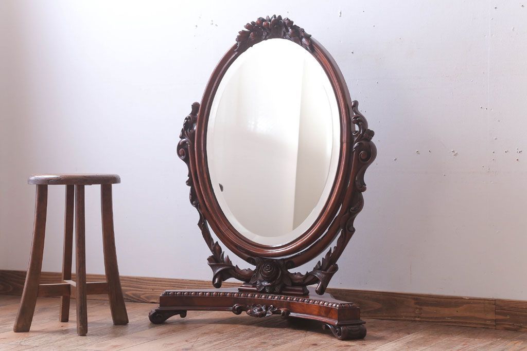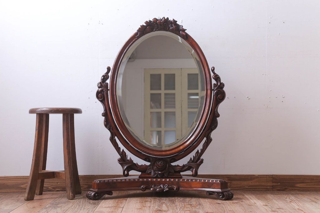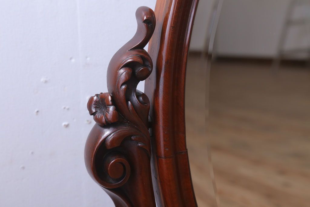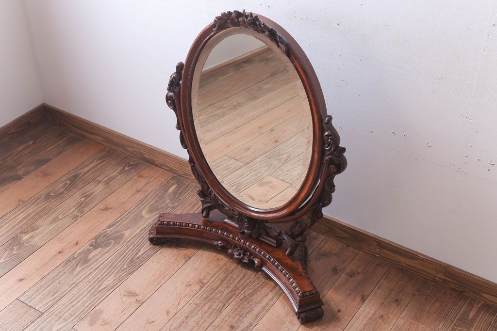 アンティーク雑貨 イギリスアンティーク 最高級!彫刻が美しいマホガニー材の置き鏡(卓上ミラー)