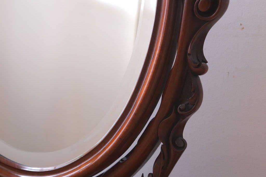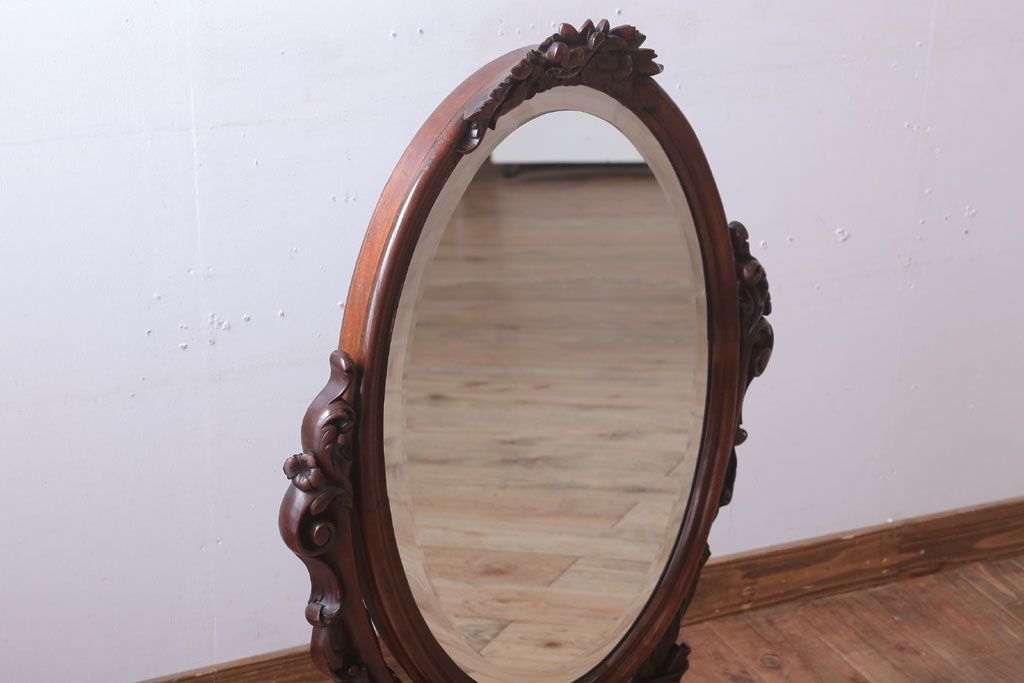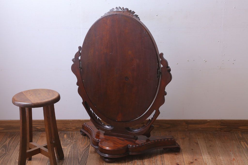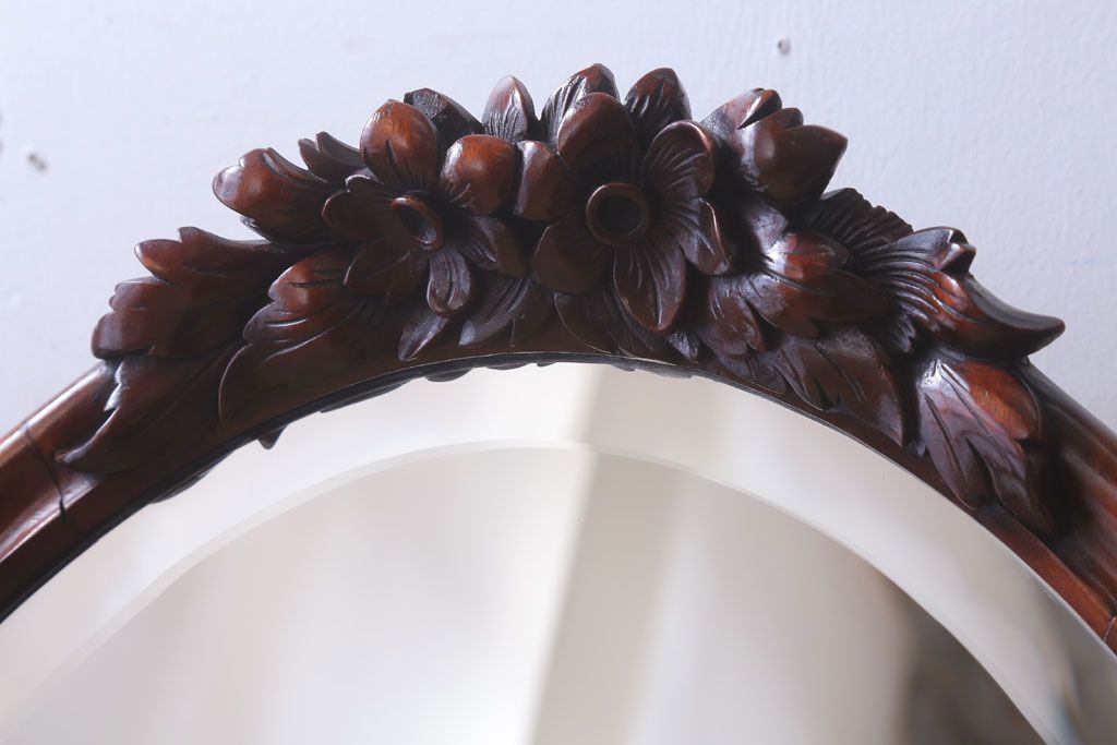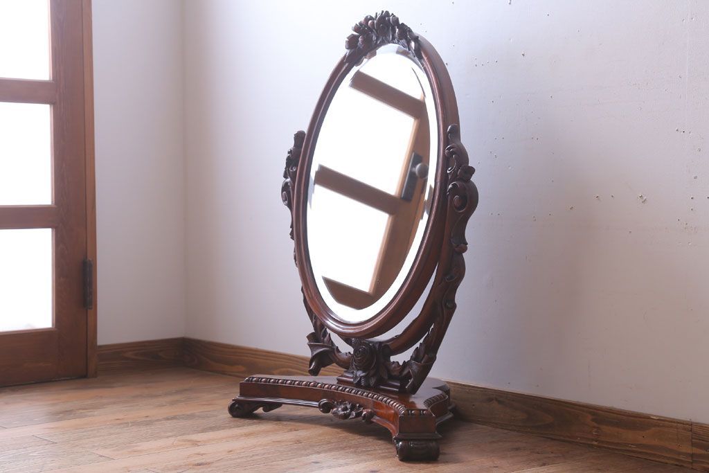 アンティーク雑貨 イギリスアンティーク 最高級!彫刻が美しいマホガニー材の置き鏡(卓上ミラー)