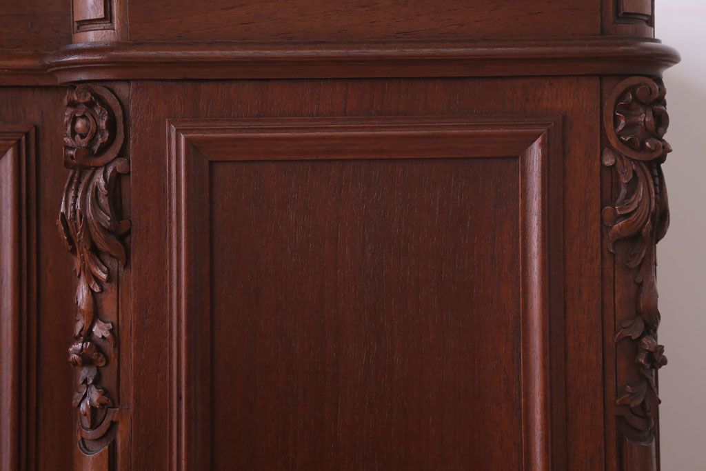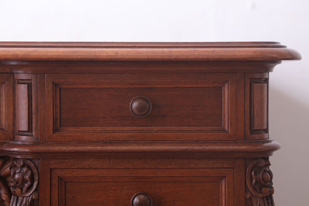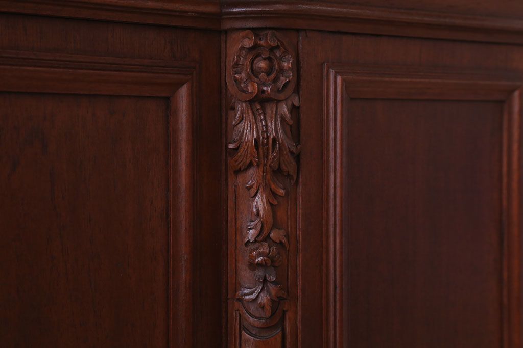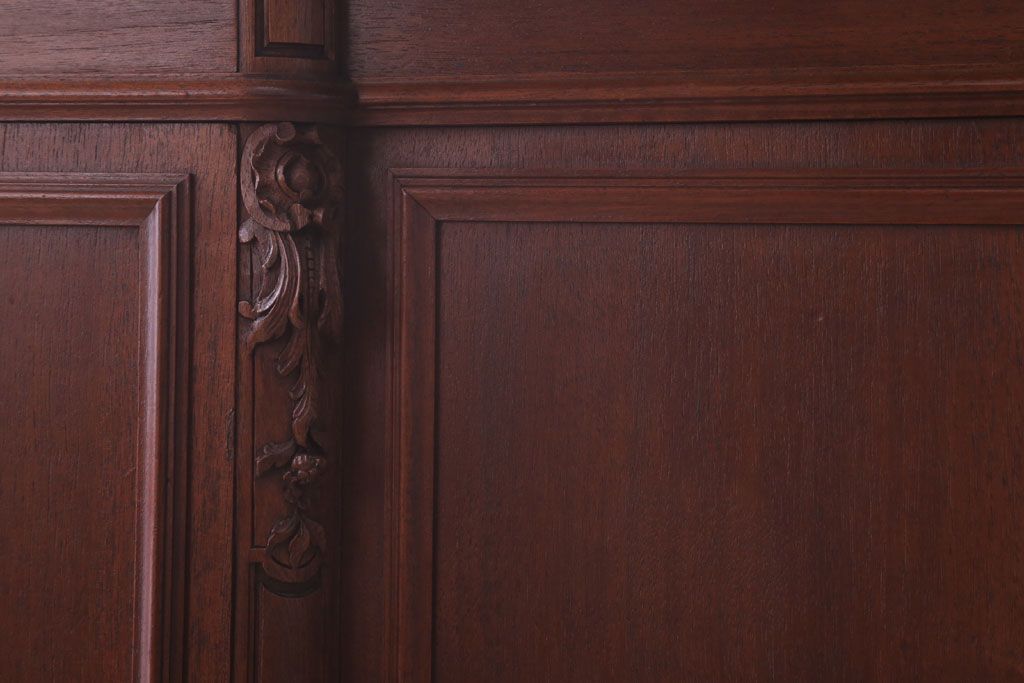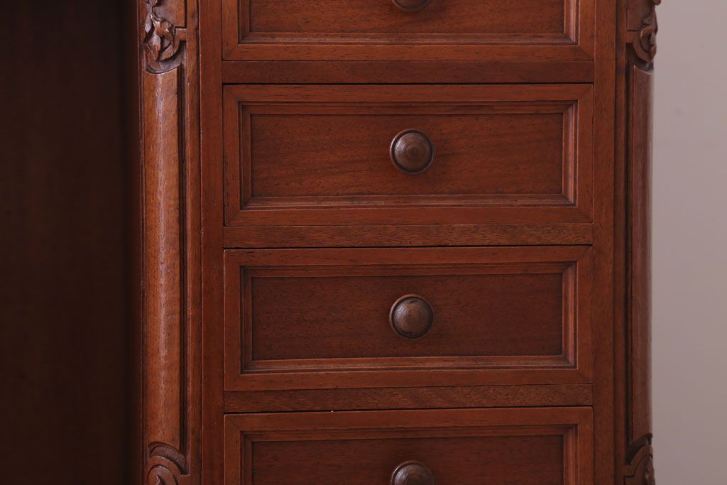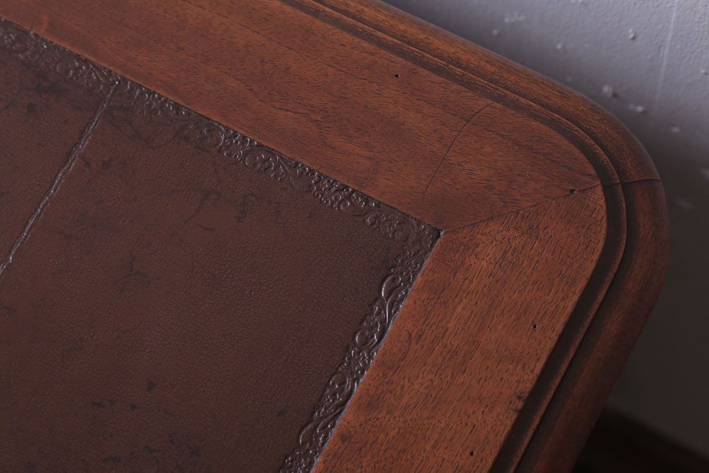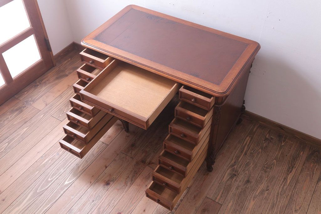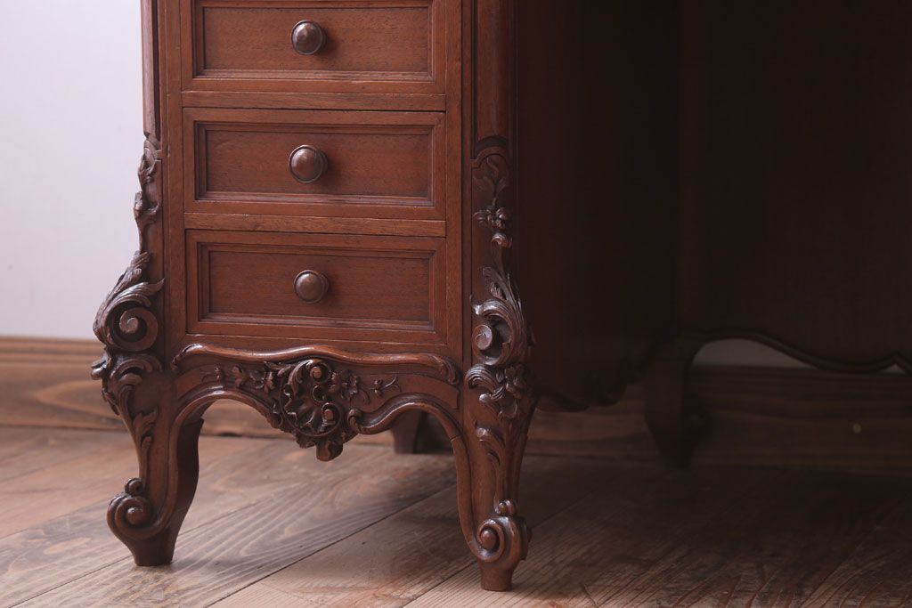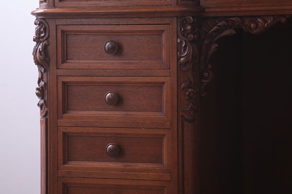 アンティーク家具 イギリスアンティーク マホガニー・オーク材製 上品な彫刻の最高級両袖デスク(両袖机)