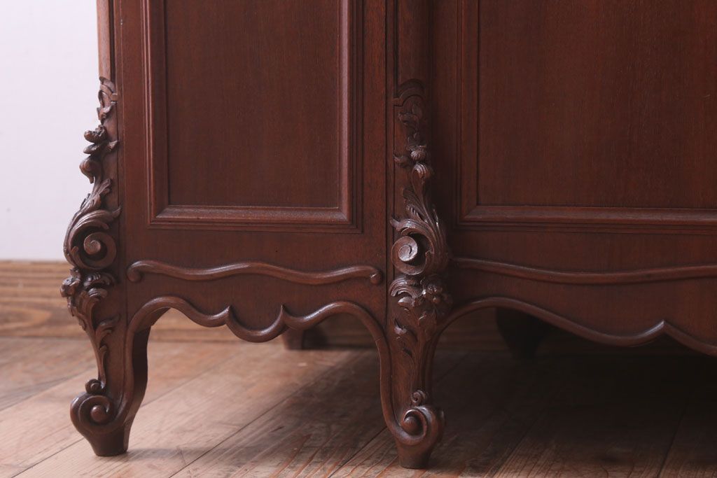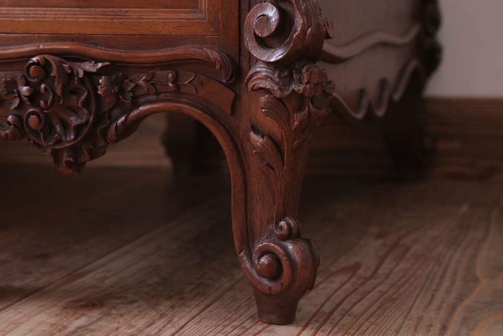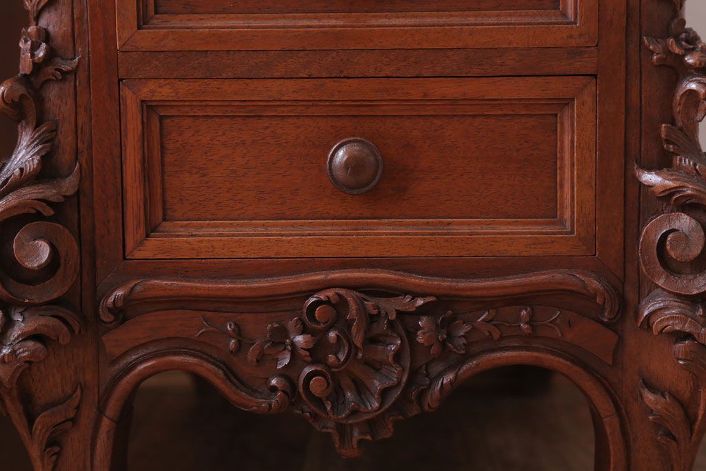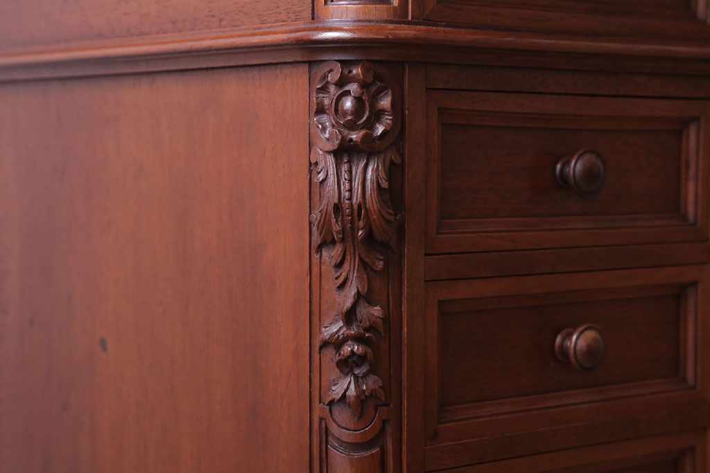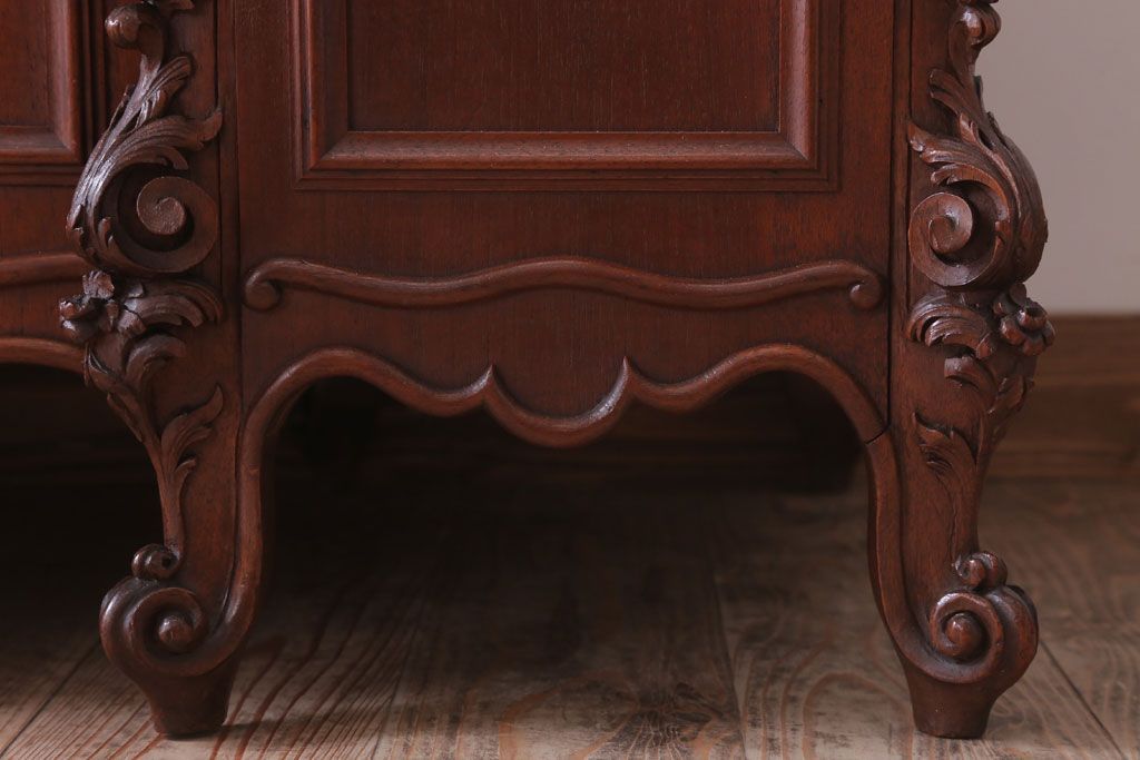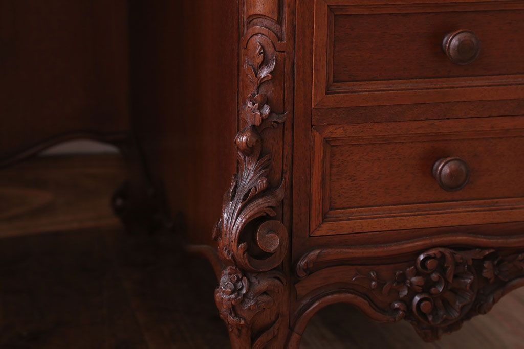 優雅な彫刻が施された、上品なデザインに職人のこだわりを感じる、