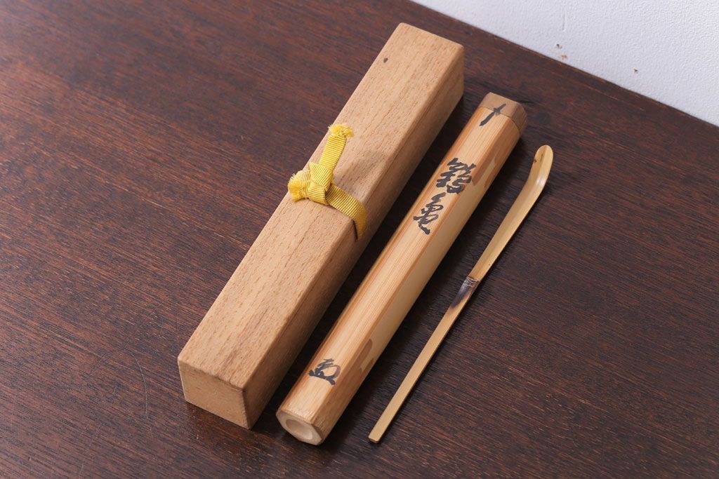 アンティーク雑貨 在銘 茶道具 茶杓 共箱 「鶴亀」 長尾宗湖造