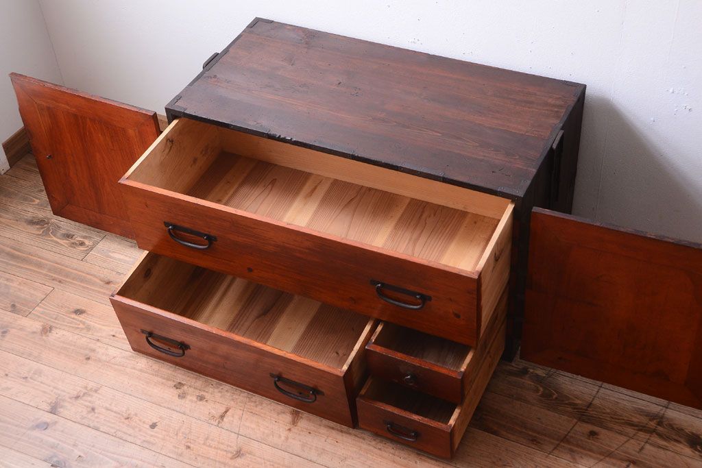 ラフジュ工房> 和箪笥 > アンティーク家具 古民具・骨董 明治期 観音箪笥ローボード(衣装箪笥・時代箪笥)