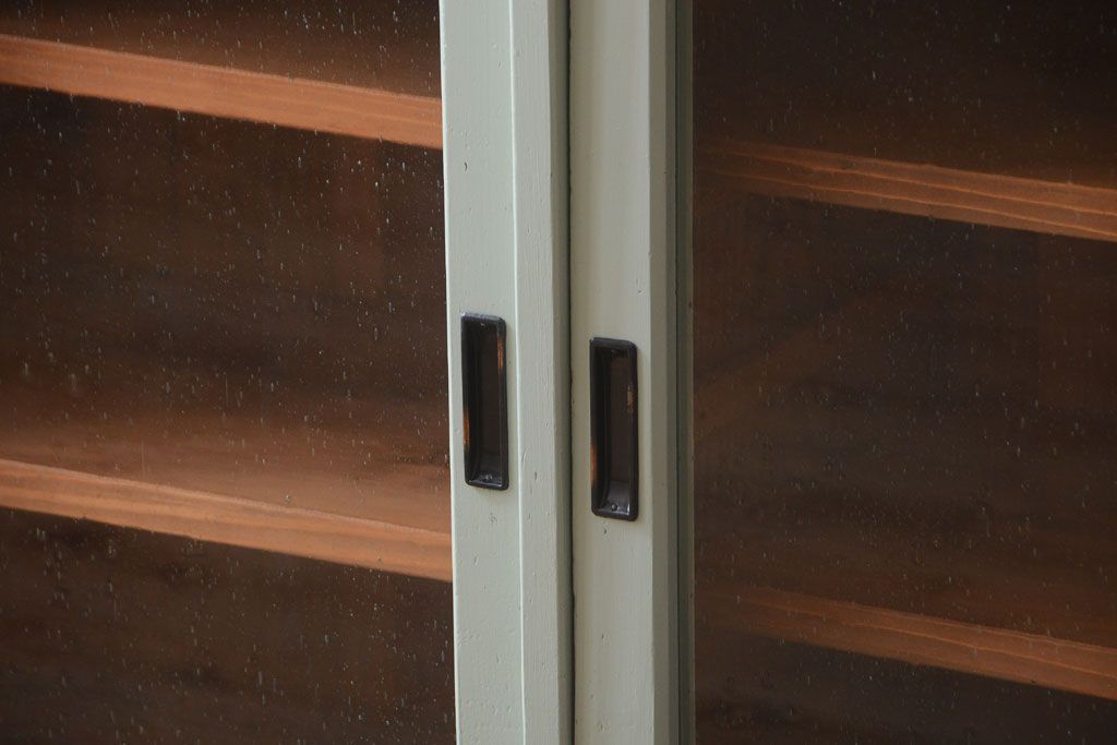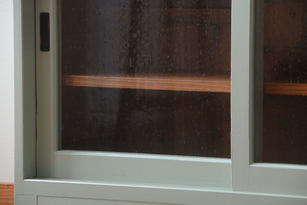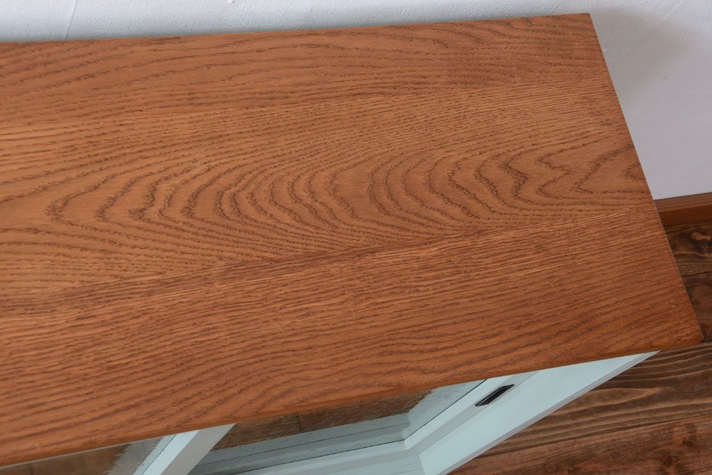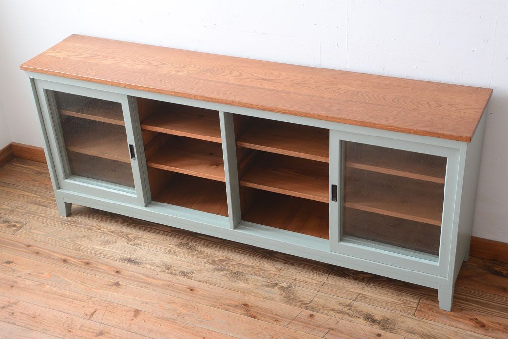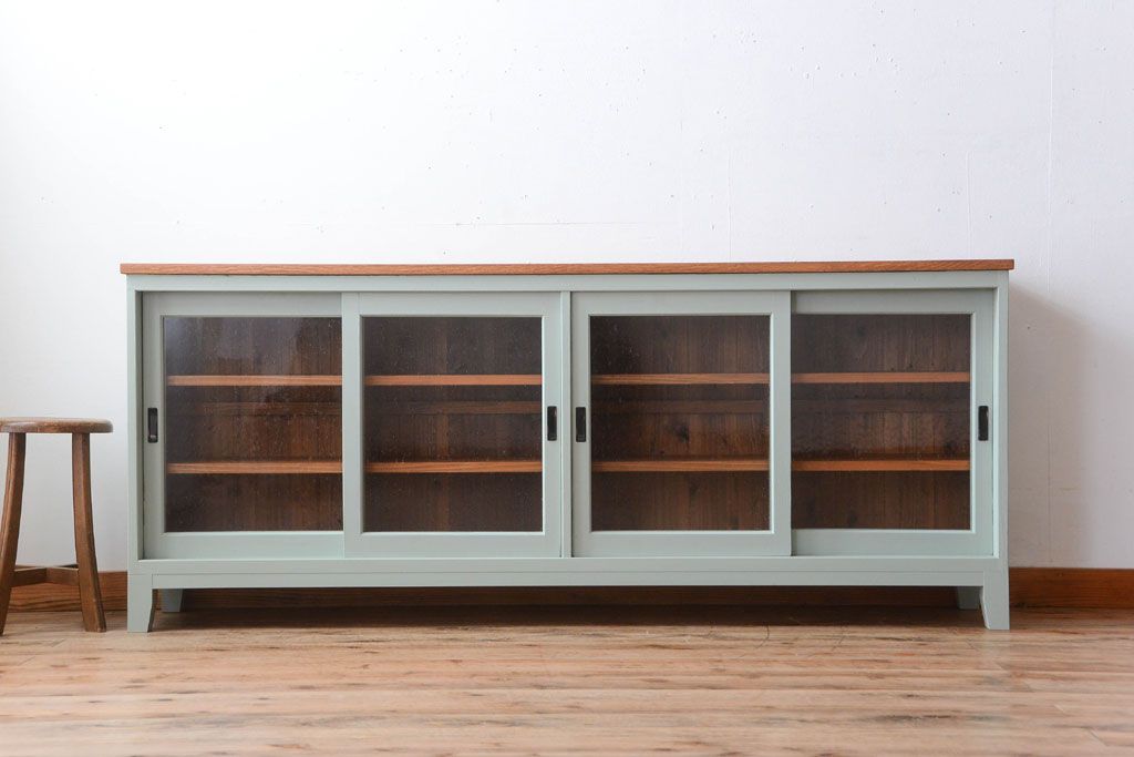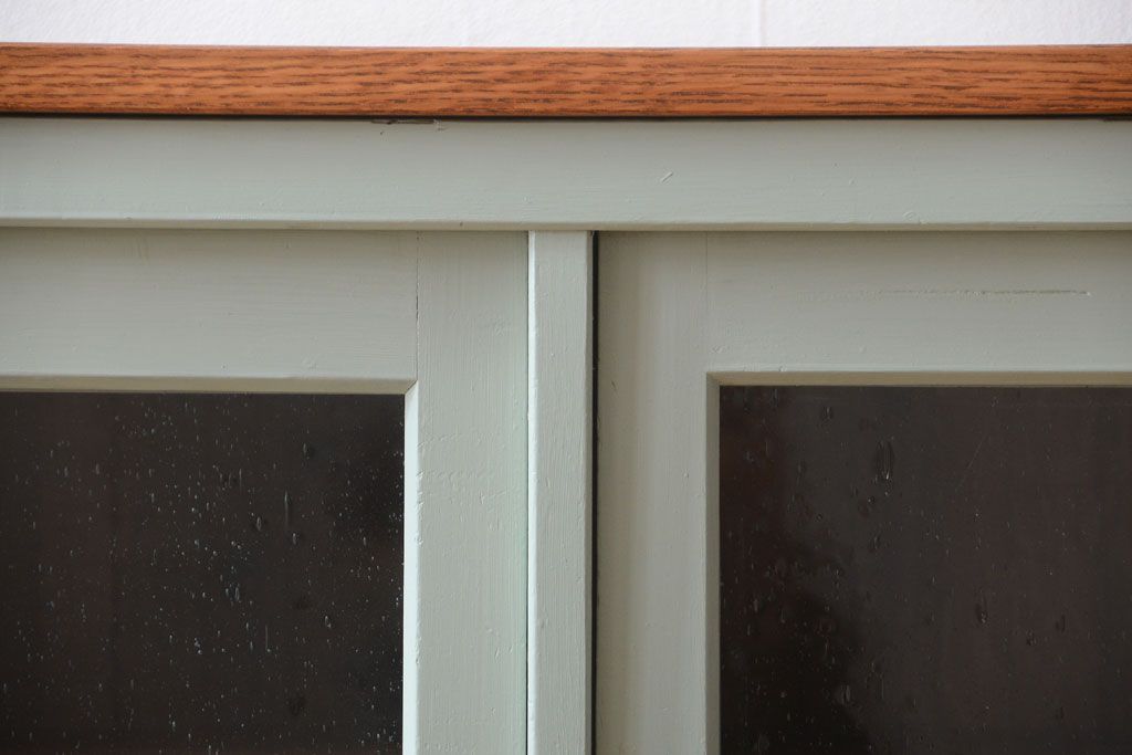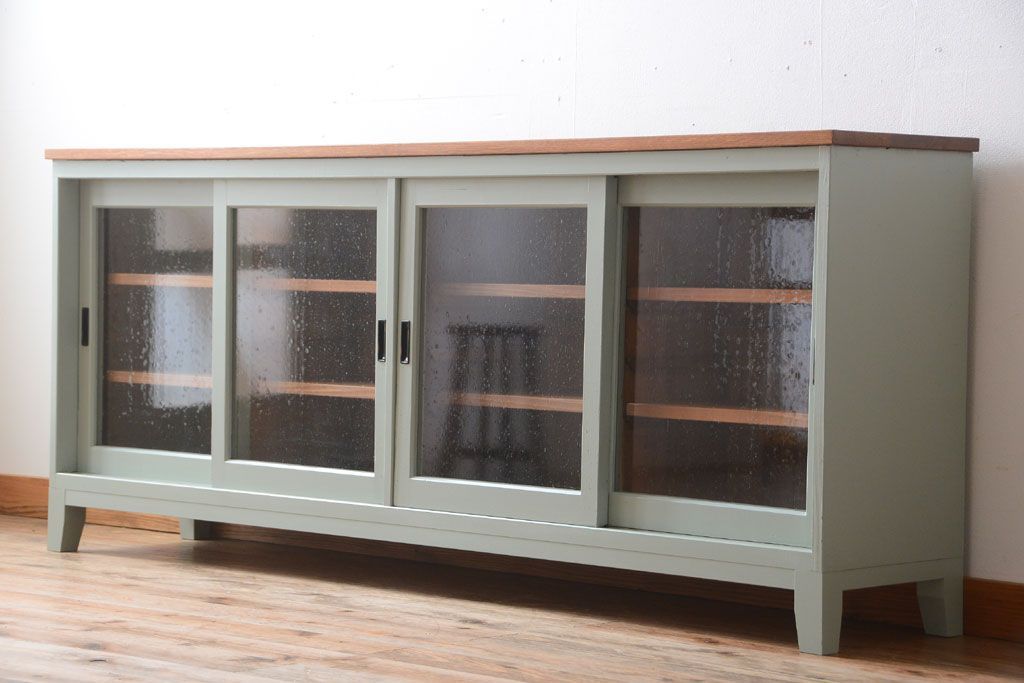 アンティーク家具 アンティークペイント 気泡ガラス入り!4枚扉のカウンターテーブル(1)