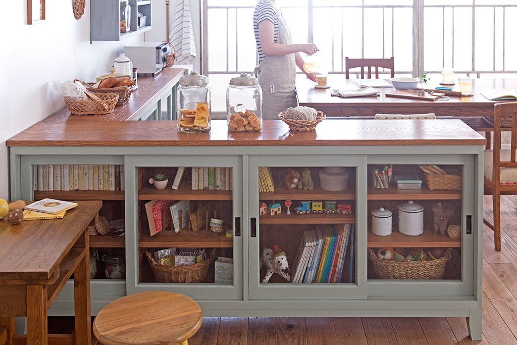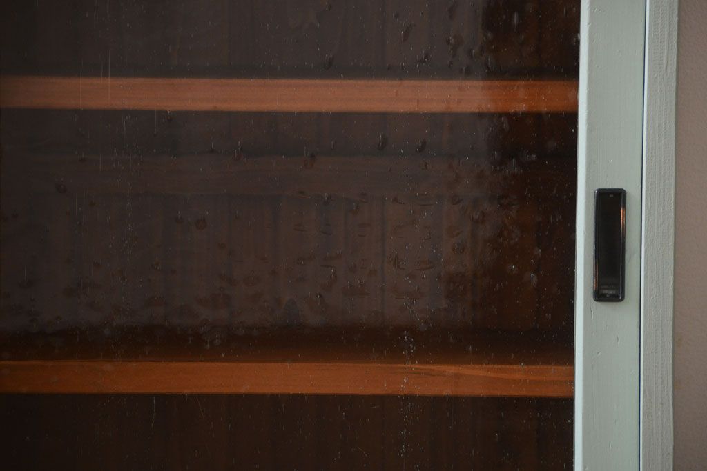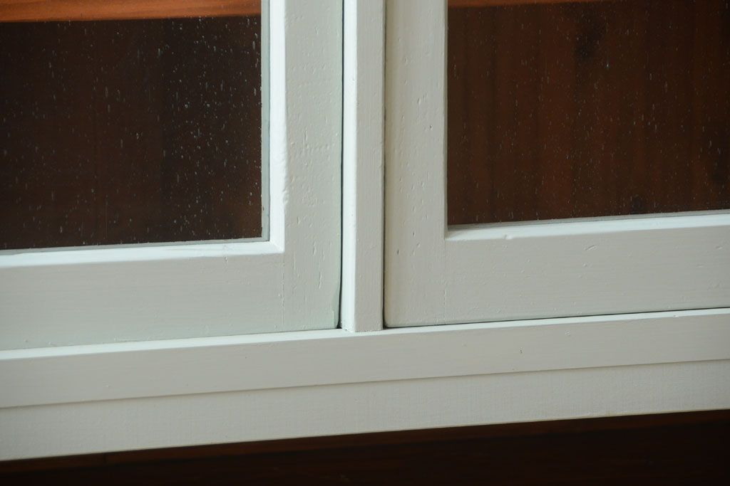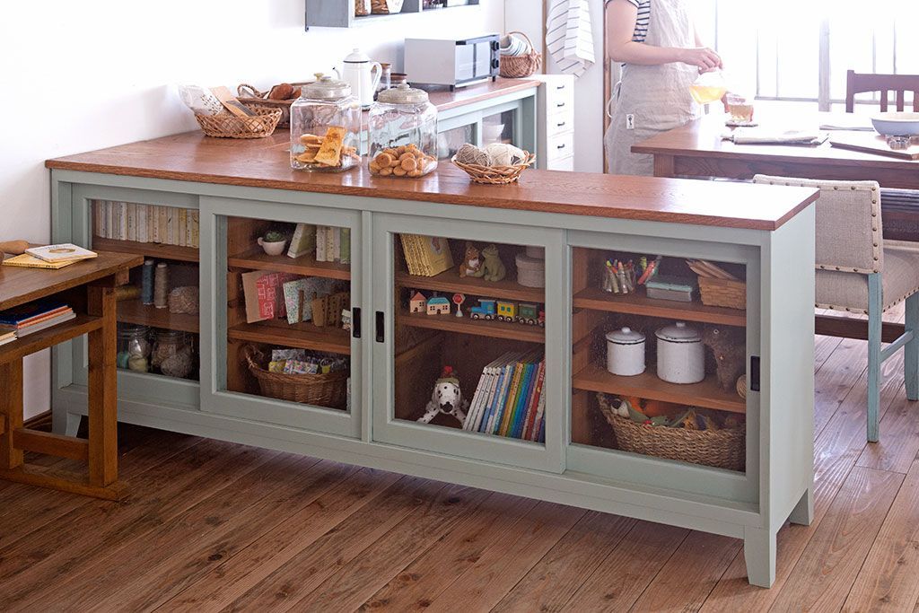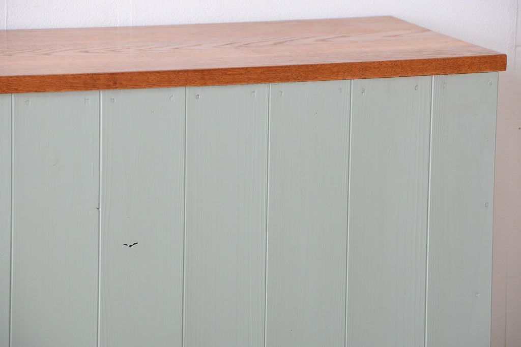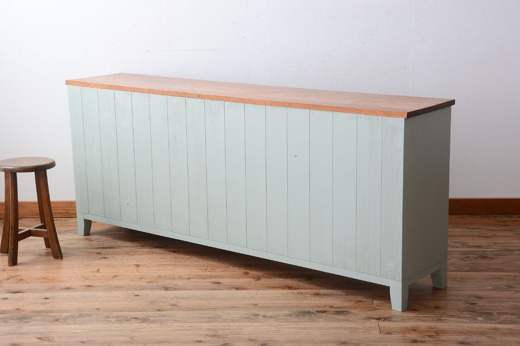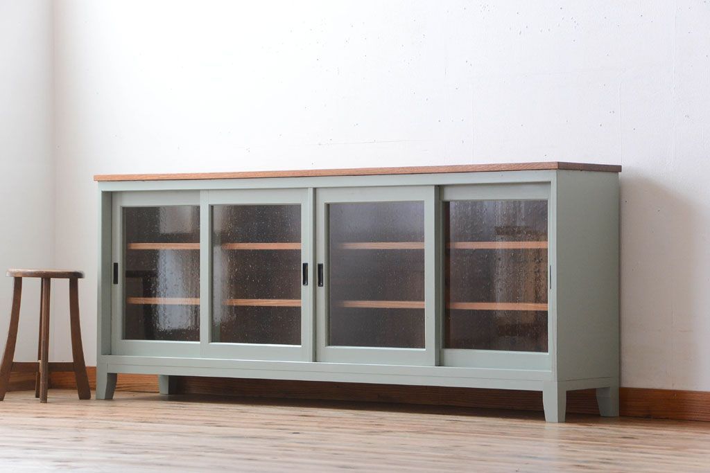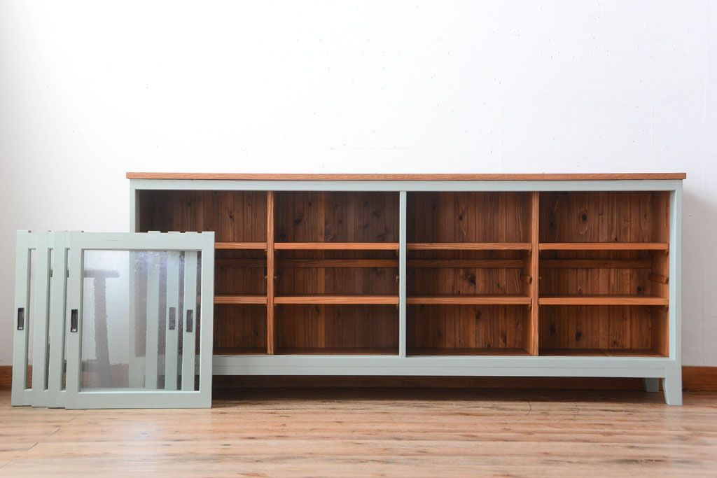アンティーク家具 アンティークペイント 気泡ガラス入り!4枚扉のカウンターテーブル(1)
