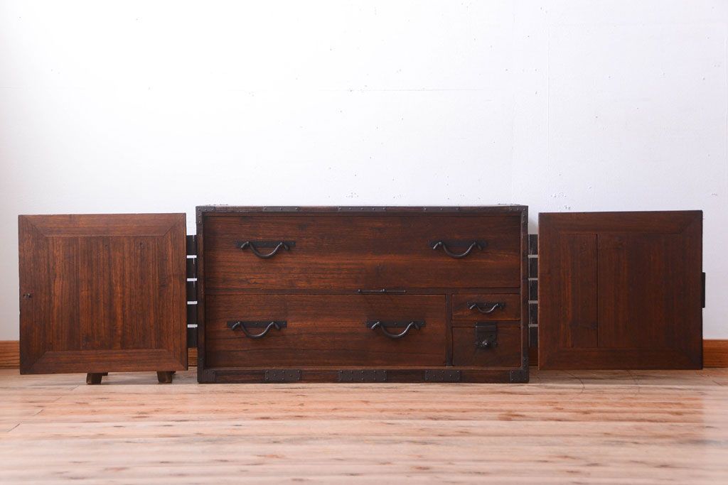 ラフジュ工房> 和箪笥 > アンティーク家具 古民具・骨董 明治期 総桐材!隠し付き観音箪笥ローボード(衣装箪笥・時代箪笥)