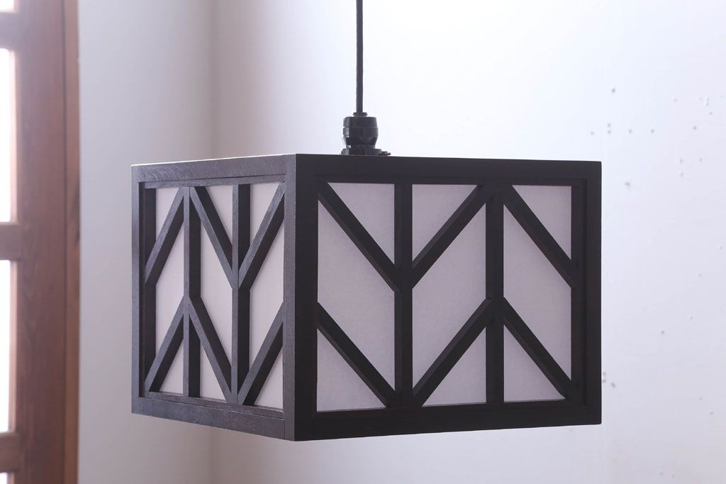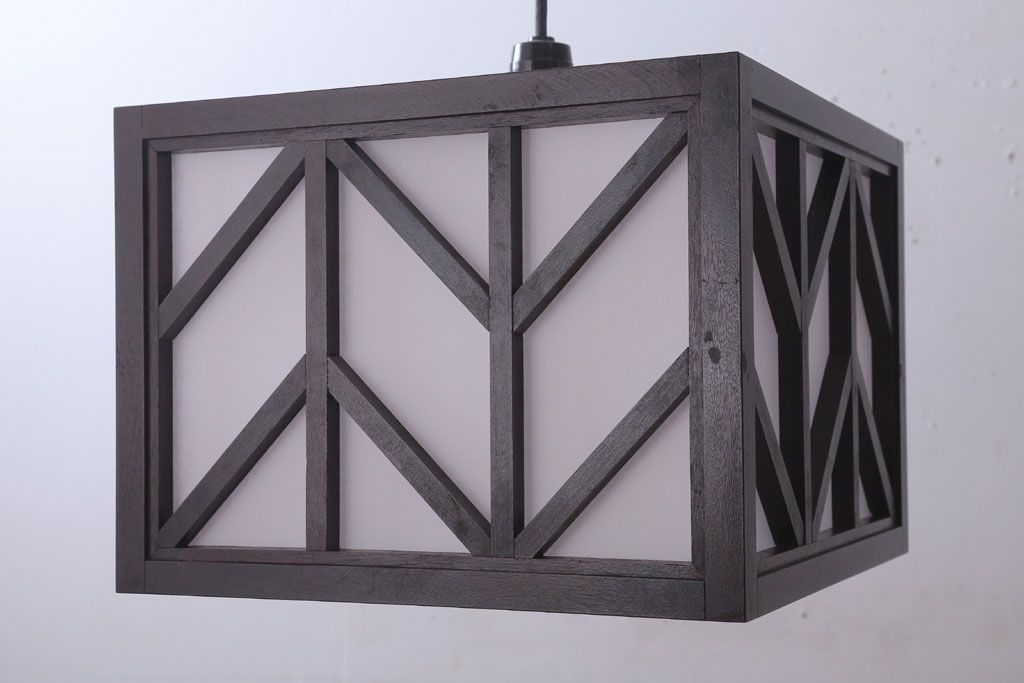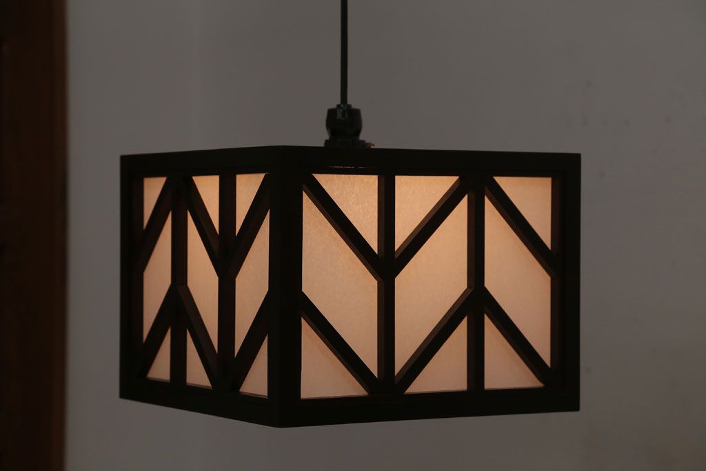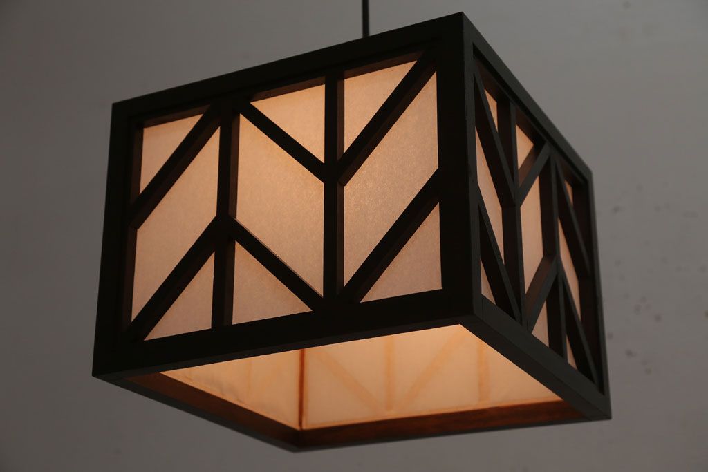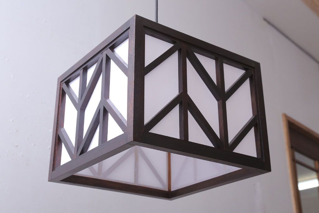 国産民芸家具ブランド、松本民芸家具の矢羽型笠天井照明です。