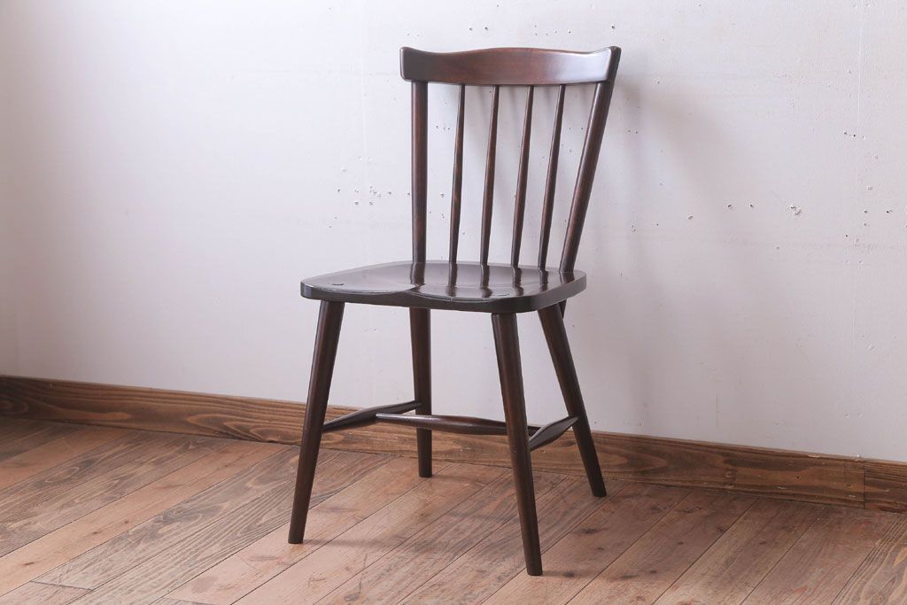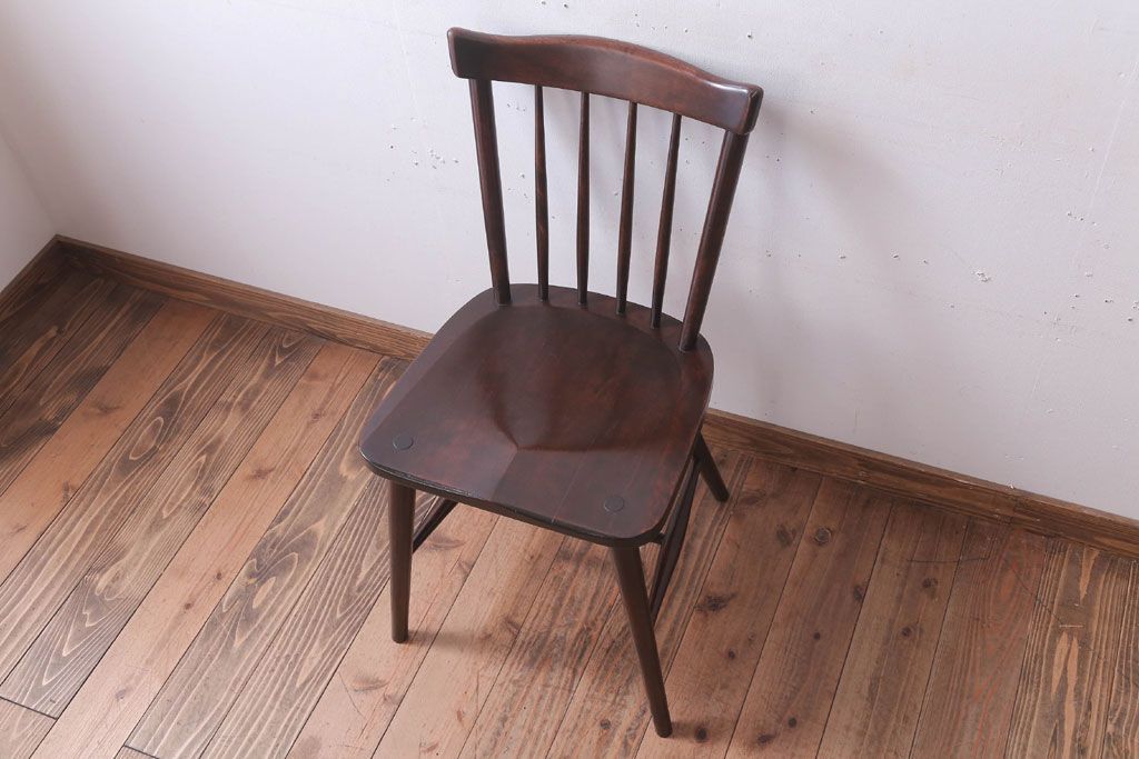 中古 北海道民芸家具 シンプルなウィンザーチェア(ダイニングチェア、ウインザーチェア)