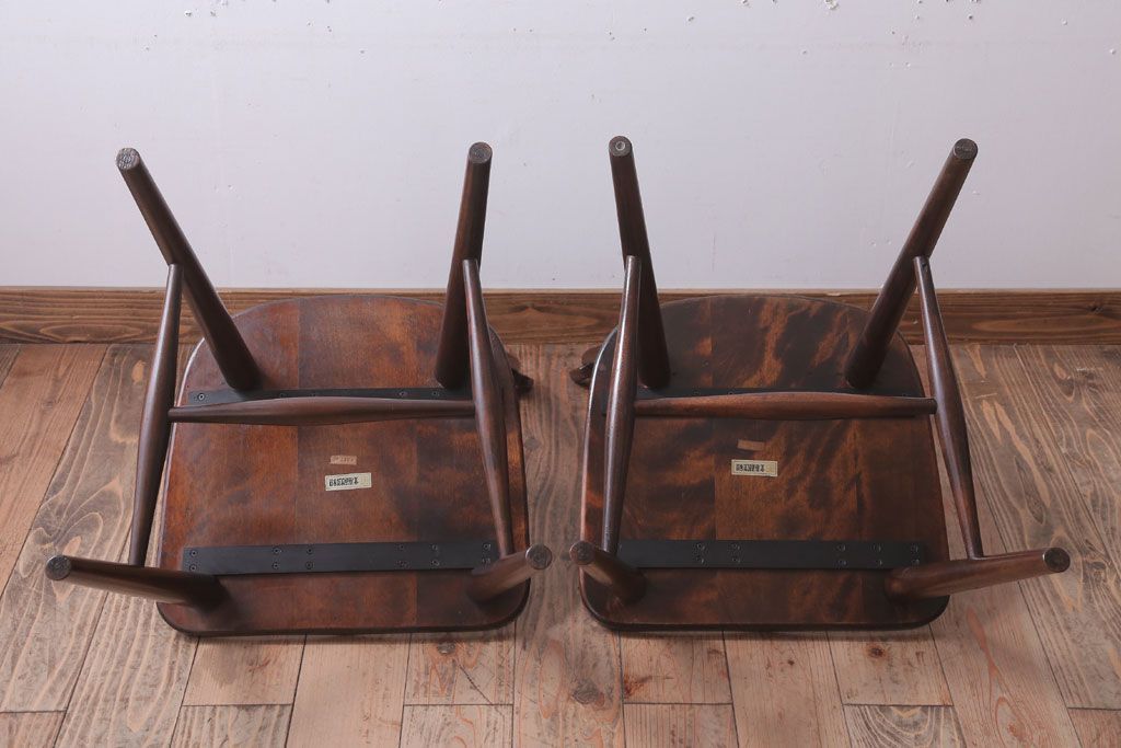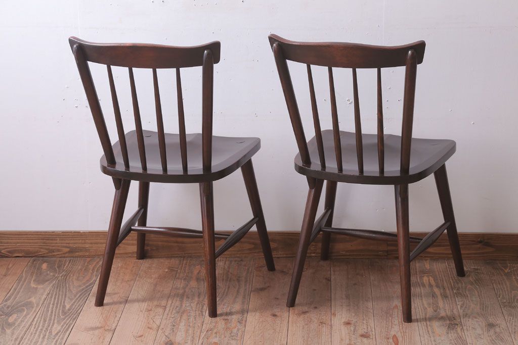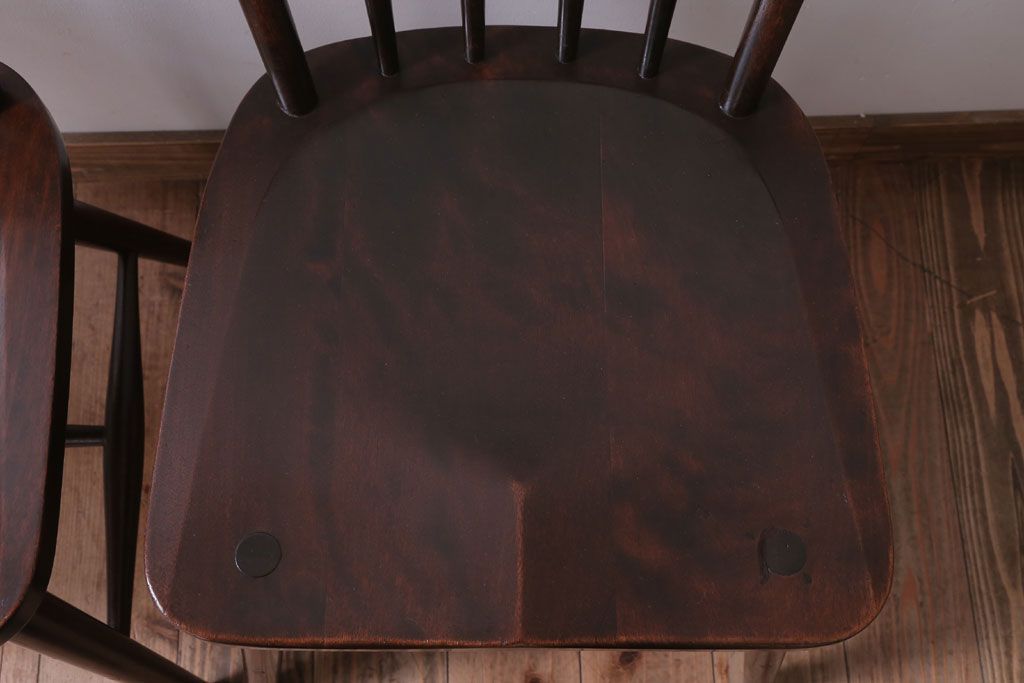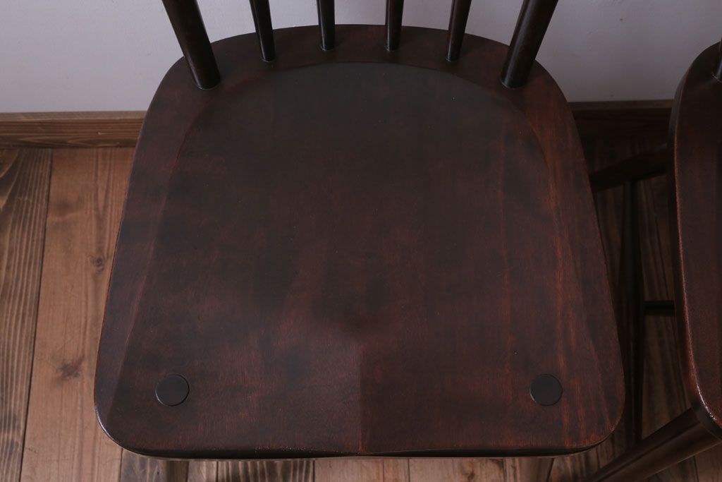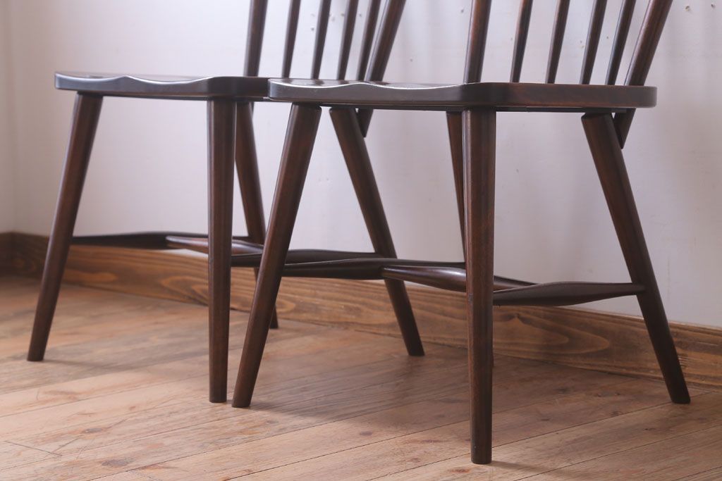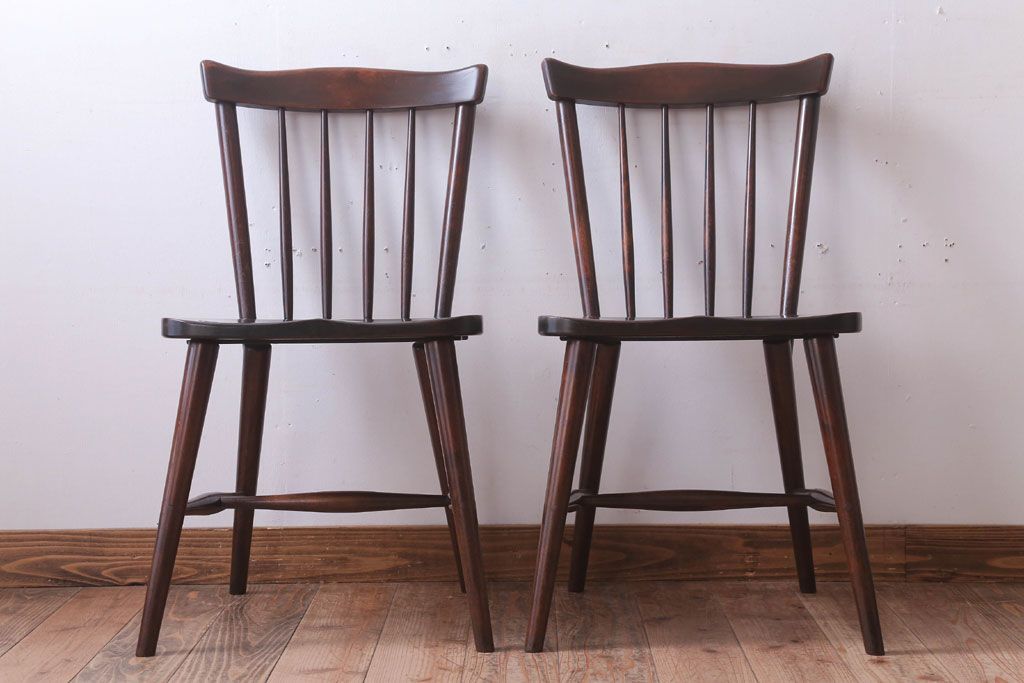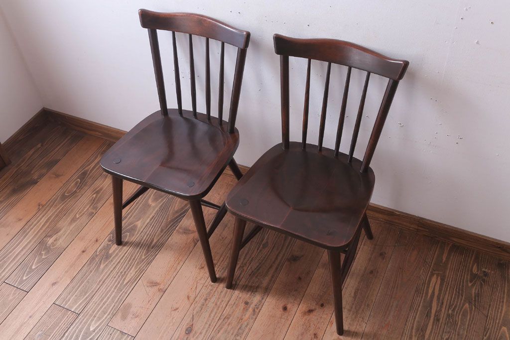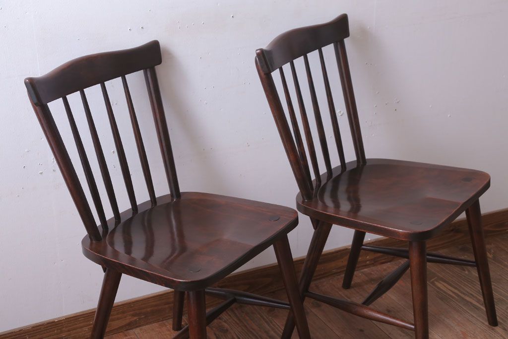 中古 北海道民芸家具 シンプルなウィンザーチェア2脚セット(ダイニングチェア、ウインザーチェア)