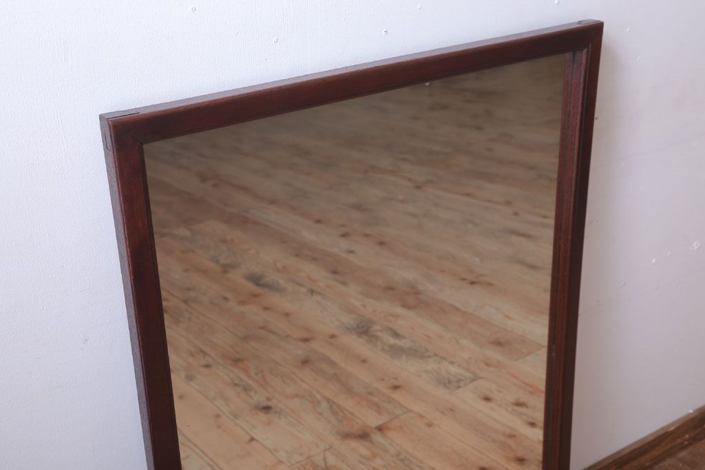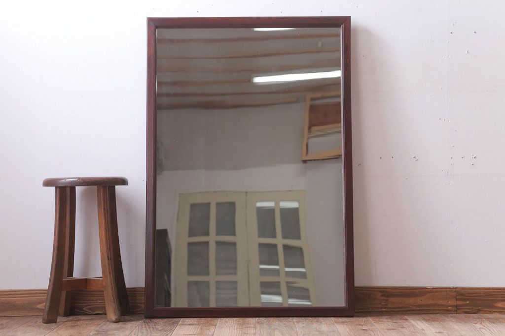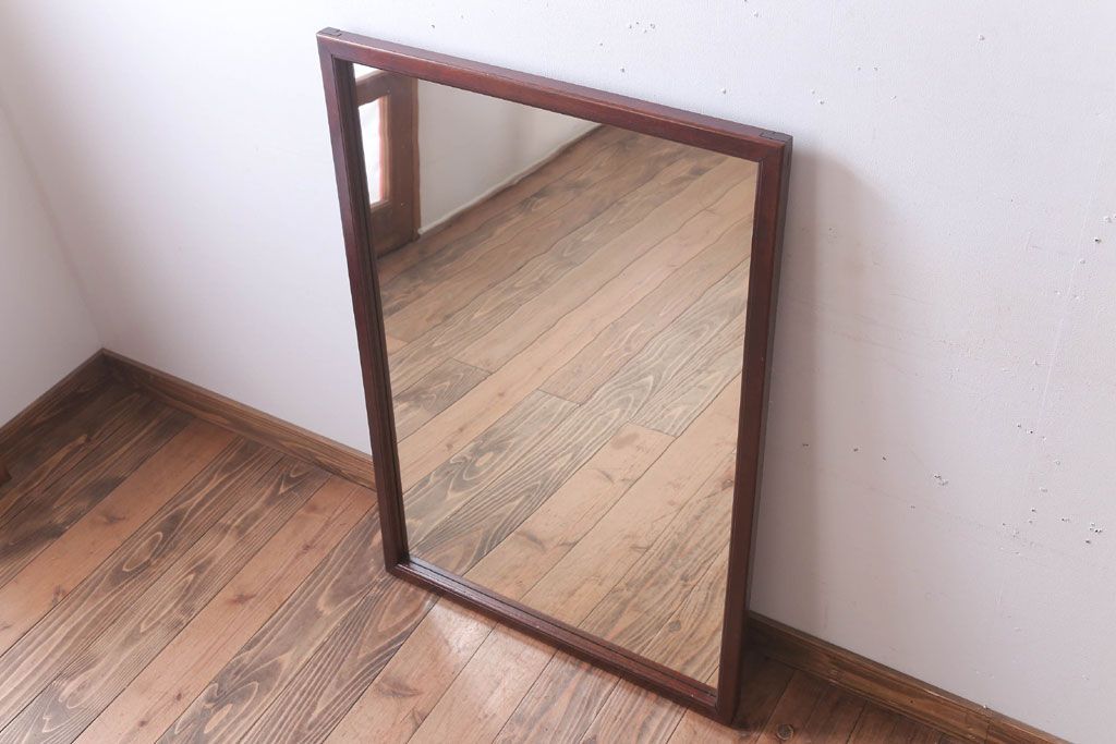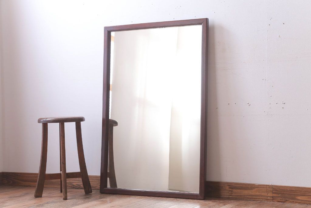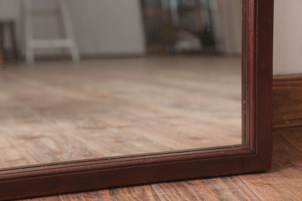 ラフジュ工房> 鏡> 姿見 > アンティーク雑貨 アンティーク 大正 古い木製フレームの歪み入りミラー(鏡・姿見)
