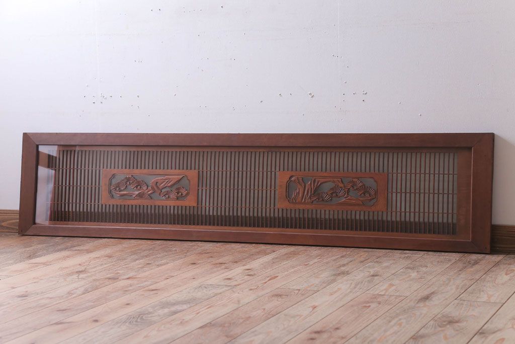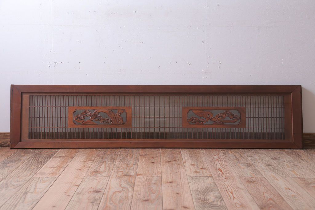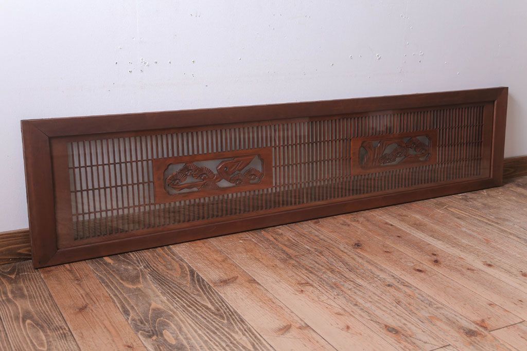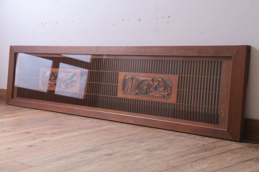 古民具・骨董 古い木の松模様ガラス書院欄間(明かり取り)