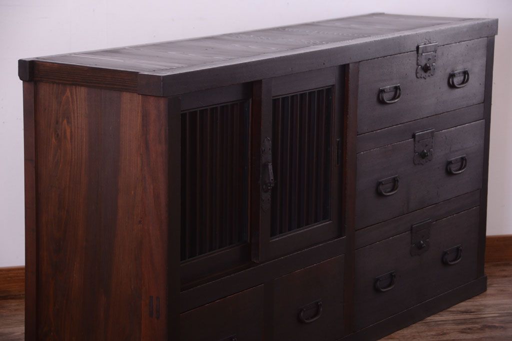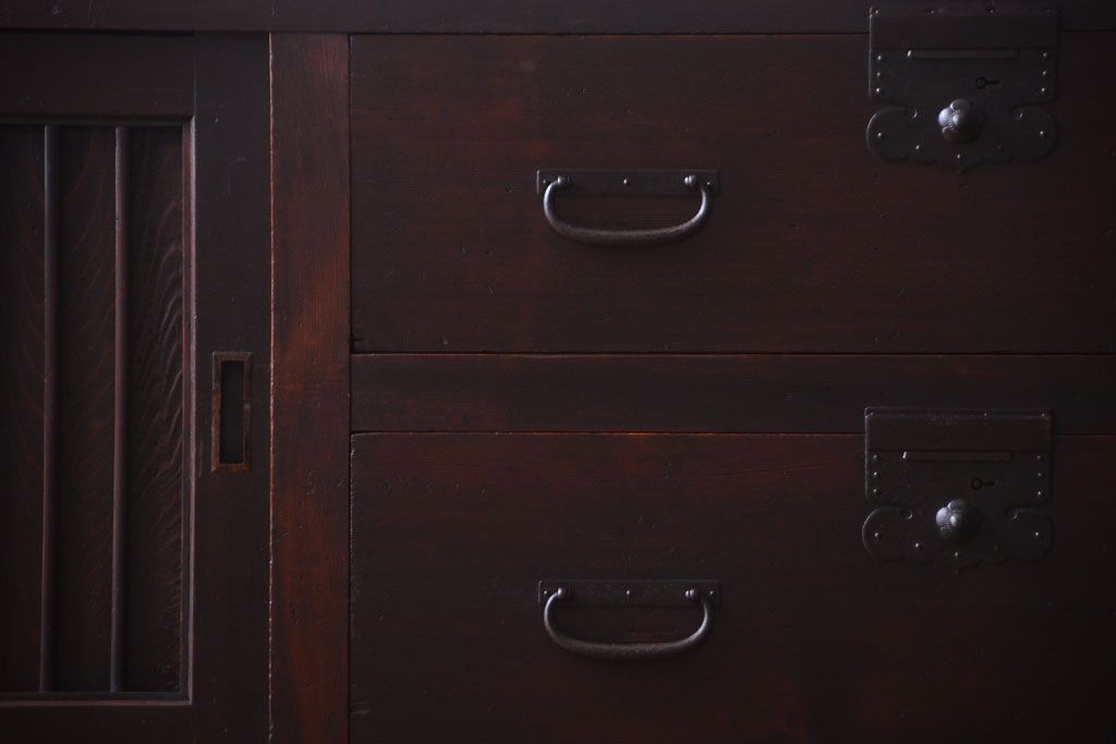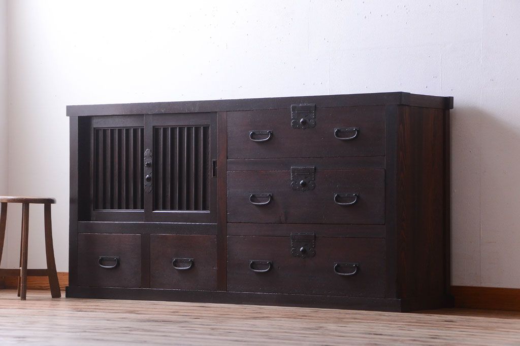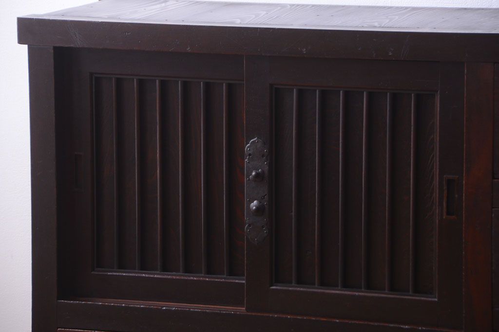 和箪笥 > アンティーク家具 古民具・骨董 明治期 和モダンスタイル!収納箪笥ローボード(水屋箪笥、テレビ台、キャビネット、収納棚)(2)